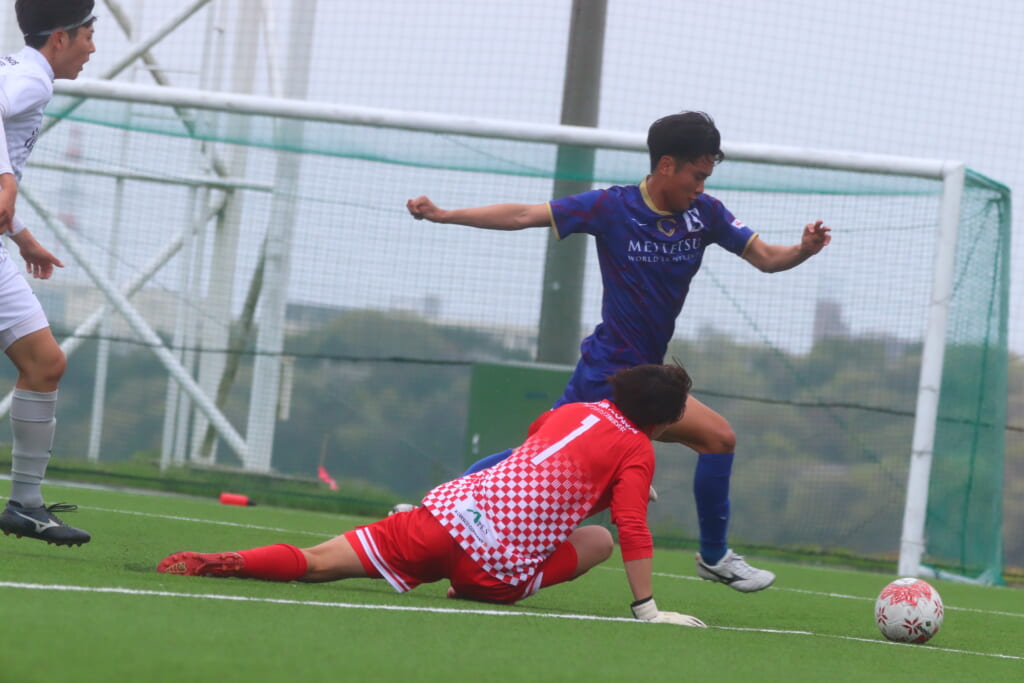 そのパスに篠田がエリア右へ持ち込んでいきますが、中部大も1対1で粘り強さを見せ、カット。
