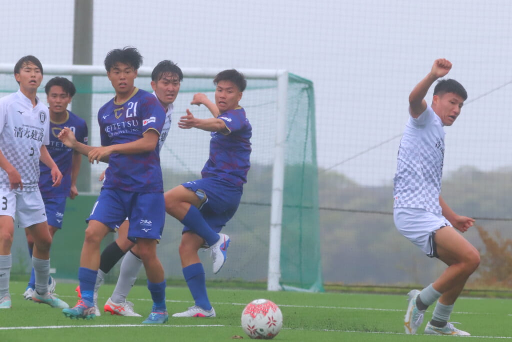 さらに中京大は、右サイドで元木や西森悠斗、高澤がかかわってボールをつないでいく時間をつくり、44分には、スローインの流れから小林がエリア外正面へ。