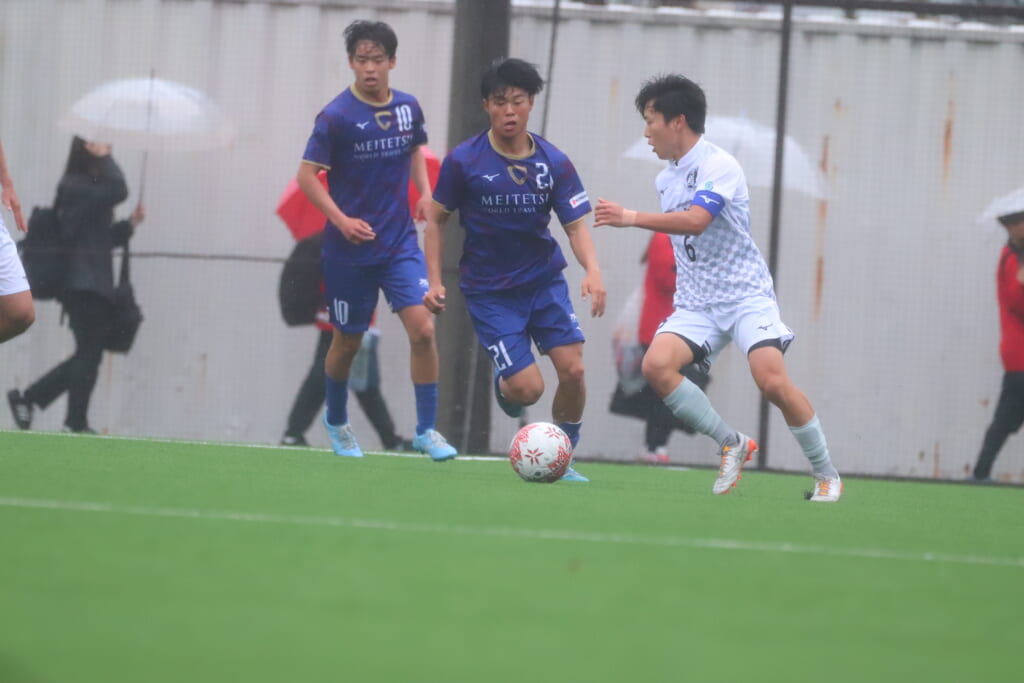いったんは中部大がボールをものにしたところ、厳しい寄せを見せ、奪い返していくと10分には、右サイドでカット。