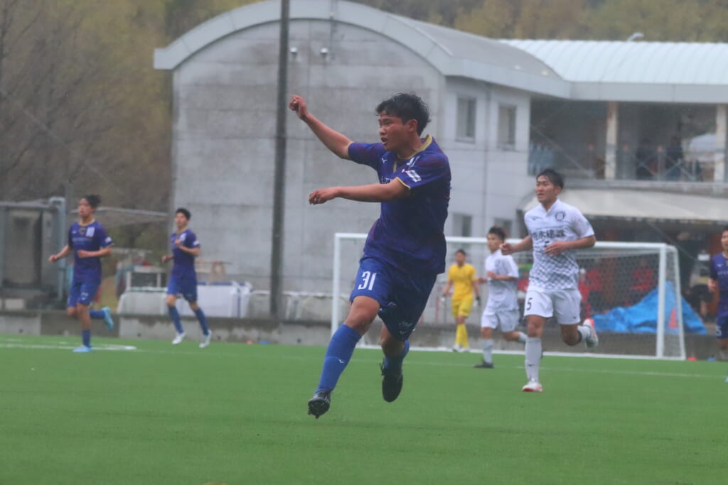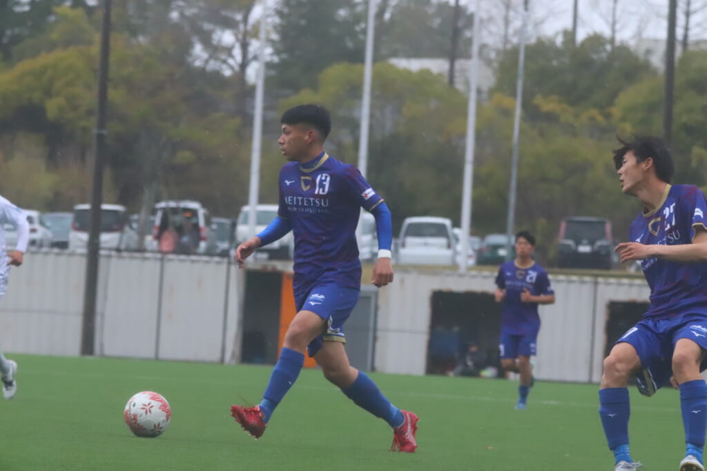 3月の愛知学生サッカー選手権大会で中京大のトップチームでのデビューを果たしている齊名は東海学生サッカーリーグ1部初先発初出場。