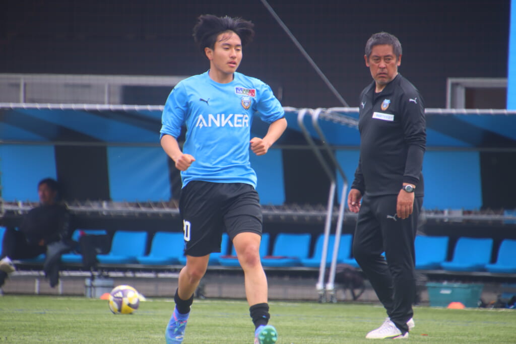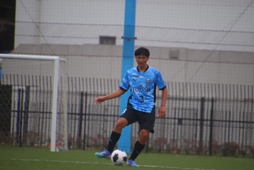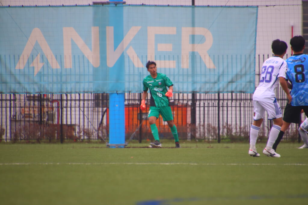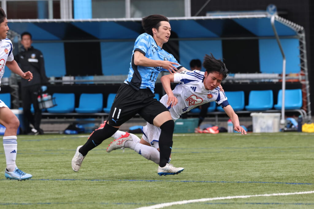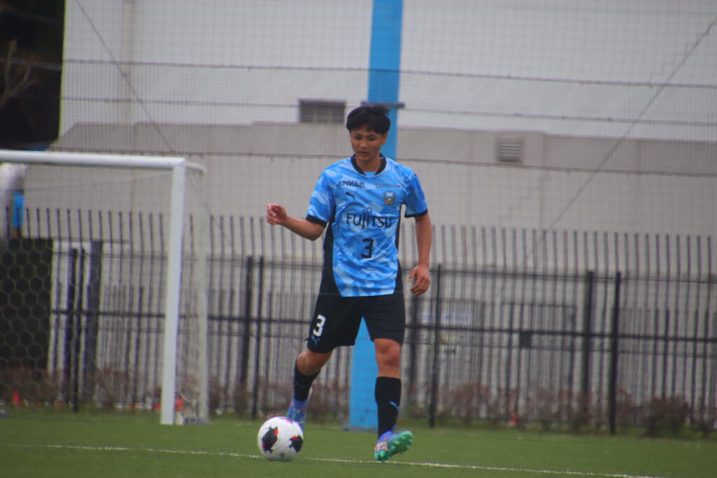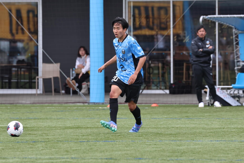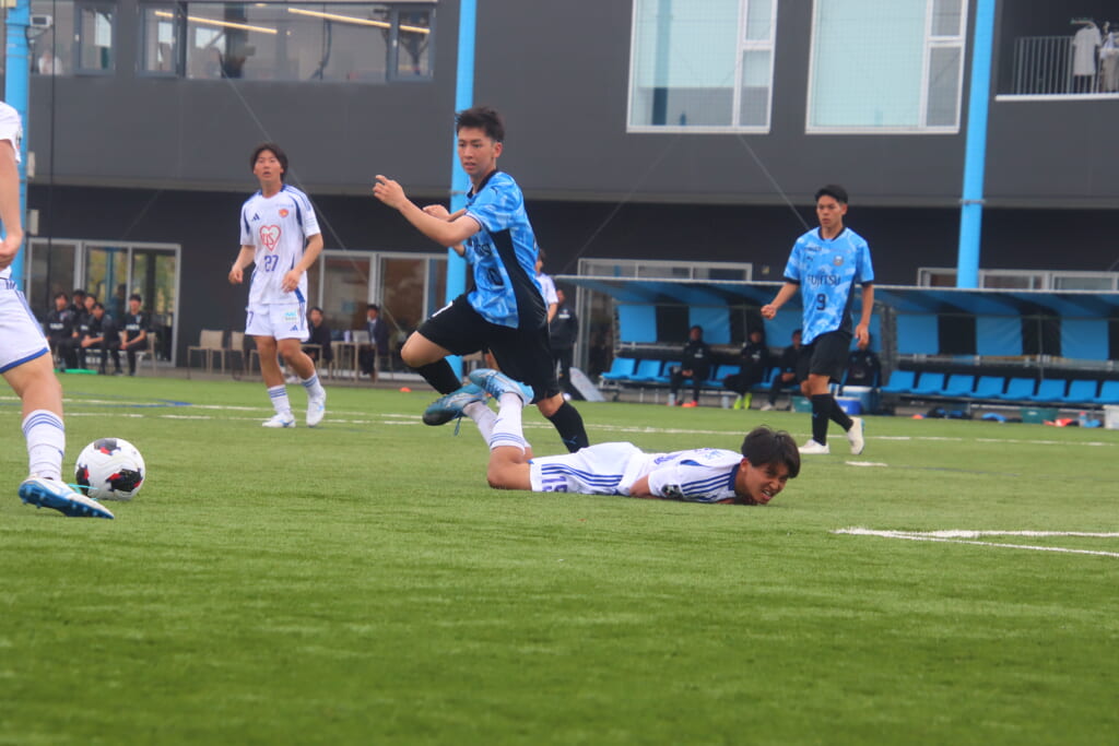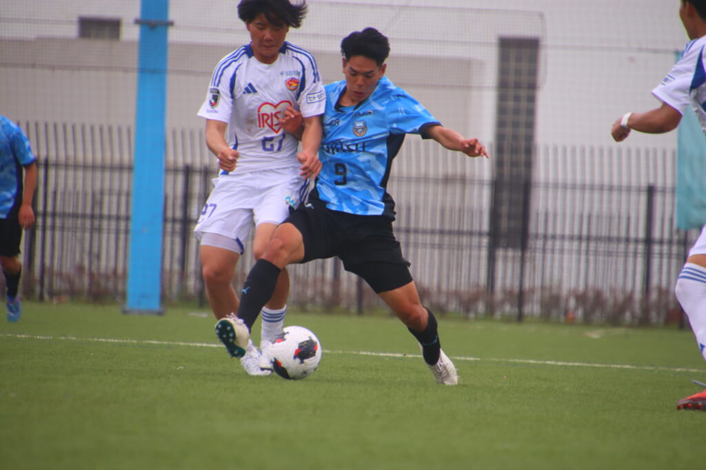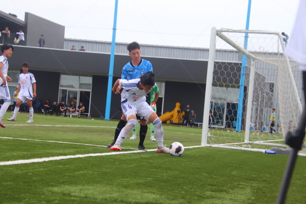 すると2分には、フロンターレ、今廣から左サイド、山川へ。山川から受けた木村が少し前に持ち出し、いったん中央に預け、高い位置へ持ち込み、クロスを上げるとボールはクロスバーを直撃。こぼれ球を拾った木下がエリア内、シュート。しかし、鑓水が体を張り、ブロック。