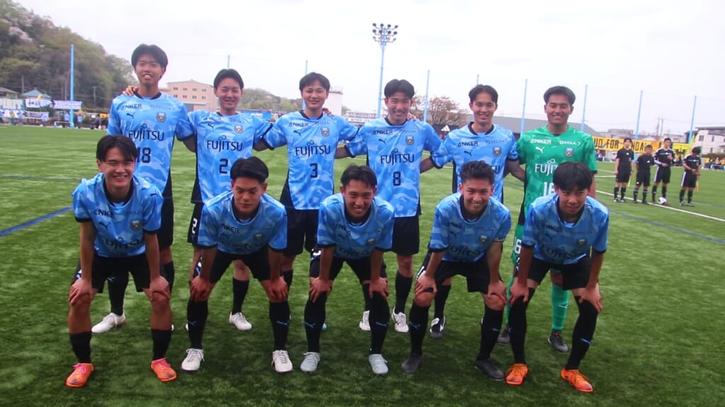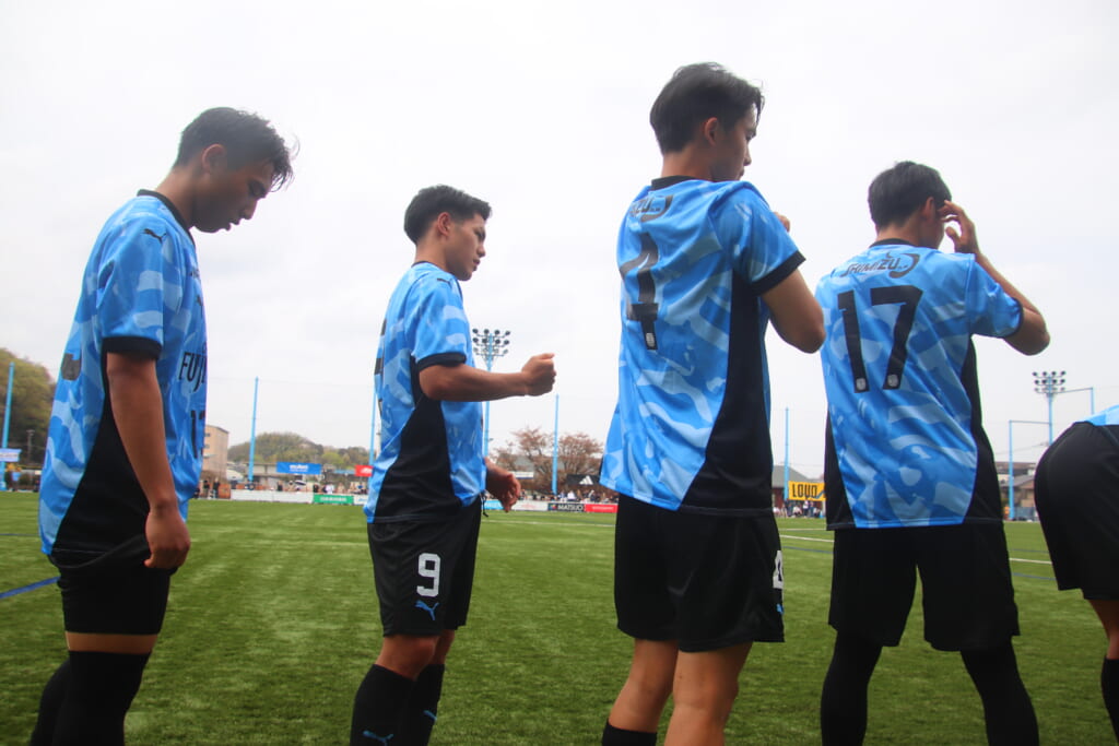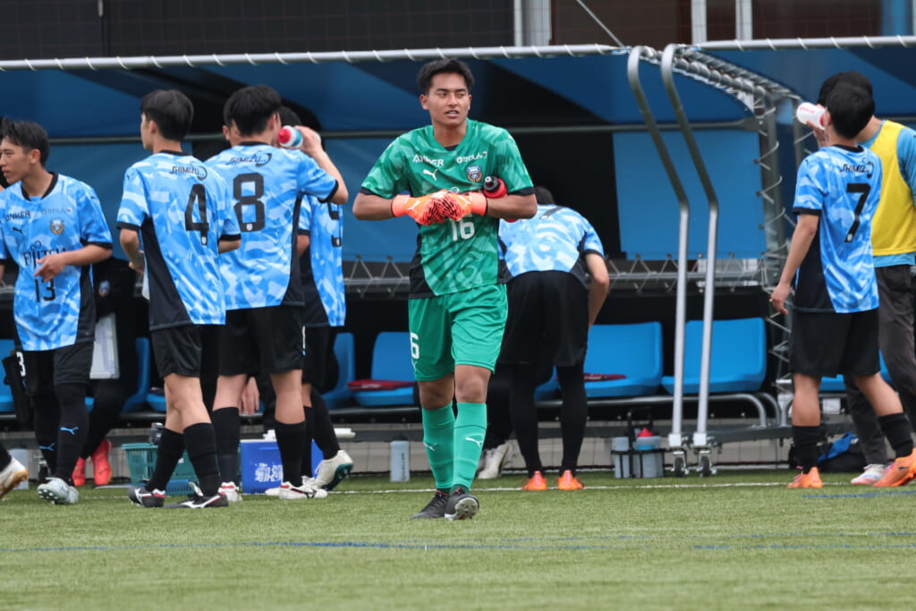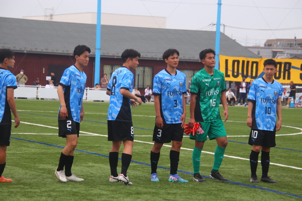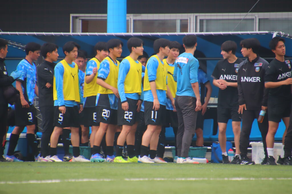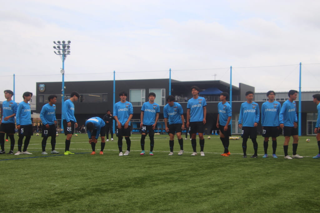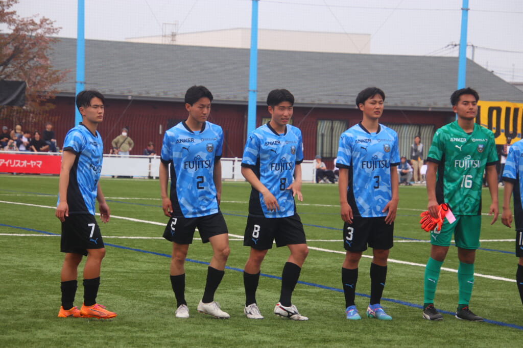 フロンターレの先発:16岡本栞汰 7小川翔太 18笹倉拓真 3藤田明日翔 2山川陽平 4今廣遥碧 8小川尋斗 10木下勝正(c) 17木村風斗 13三上瑛大 9川村求