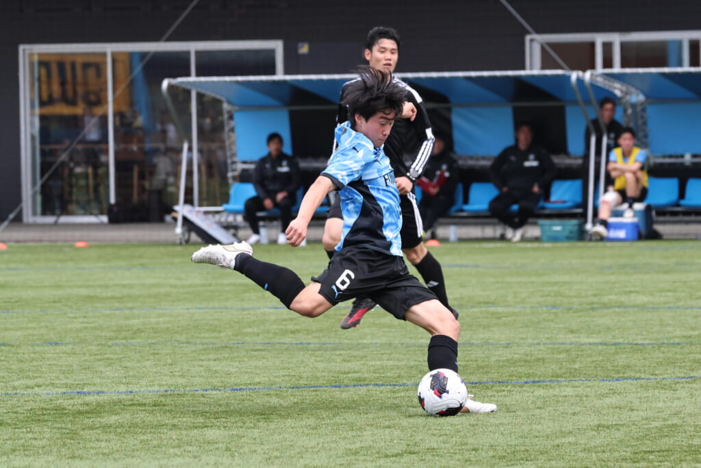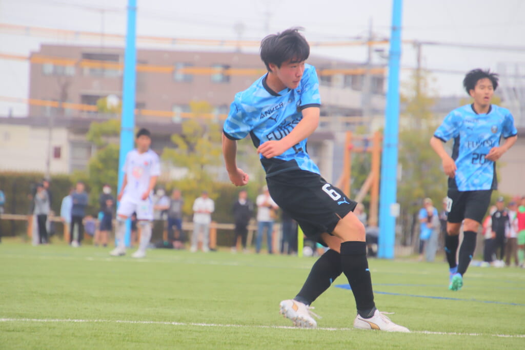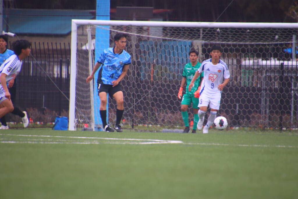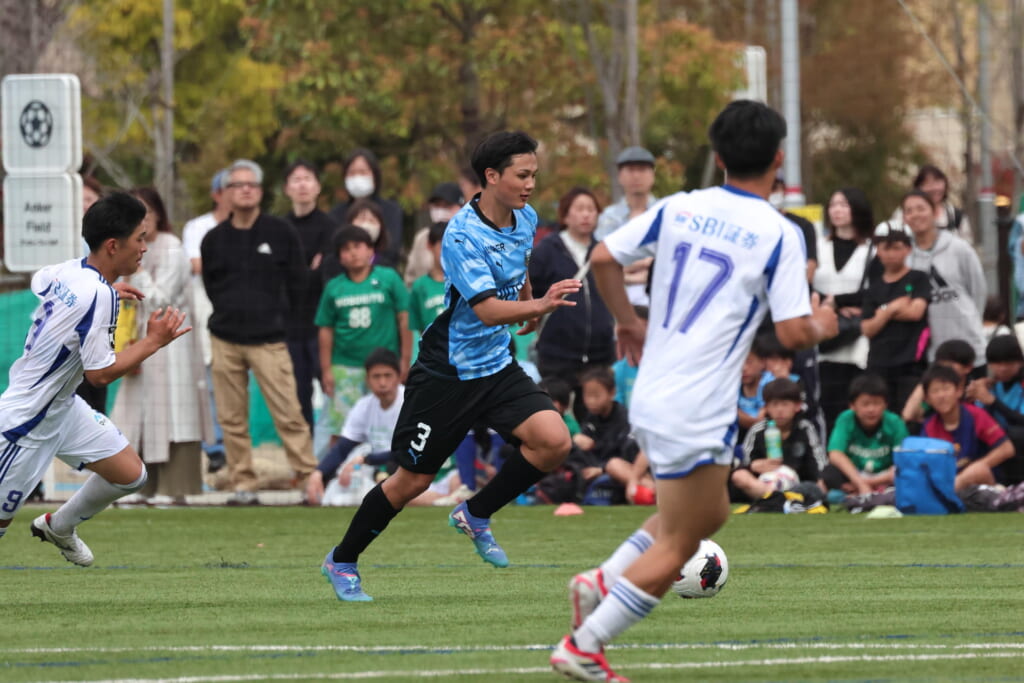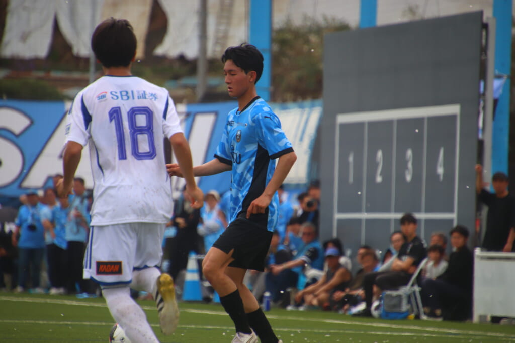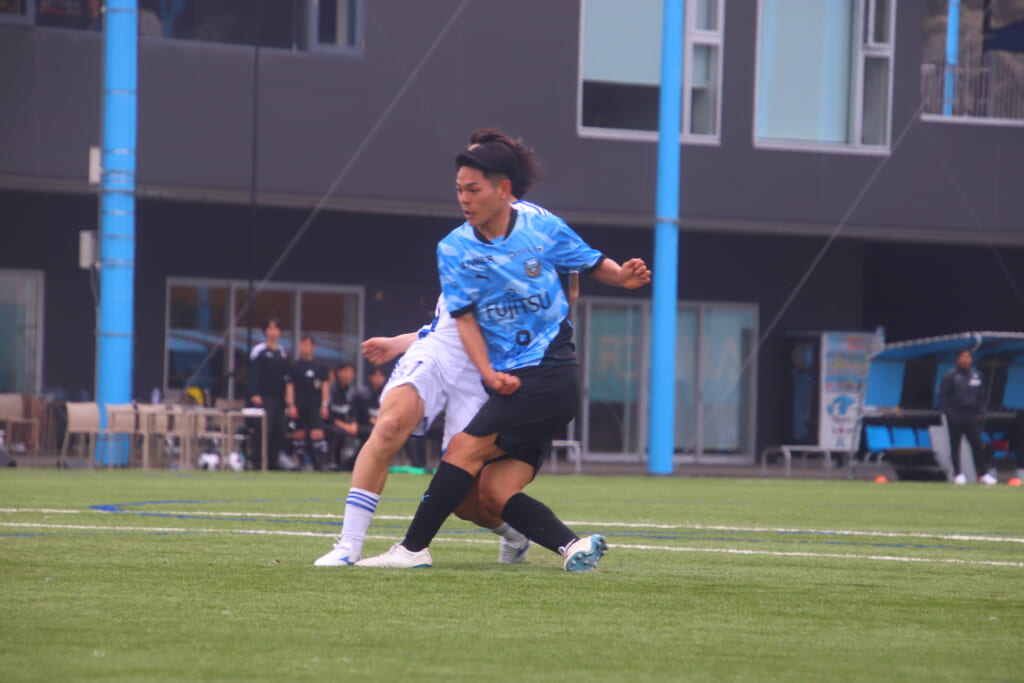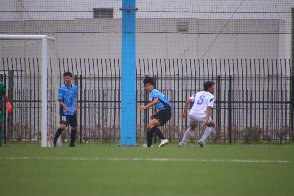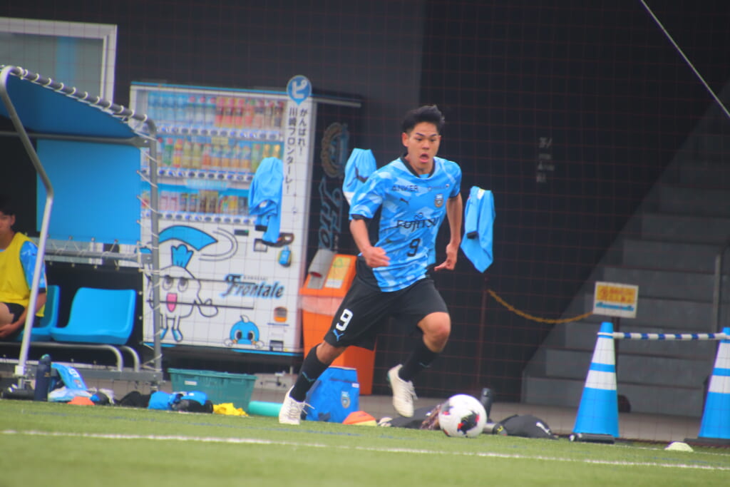 9分には、フロンターレ、小川尋斗から左サイド、山川へ。山川から受けた木村が中央へ持ち出し、そのパスに小川翔太がエリア右へ。