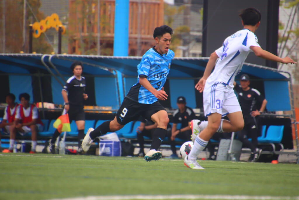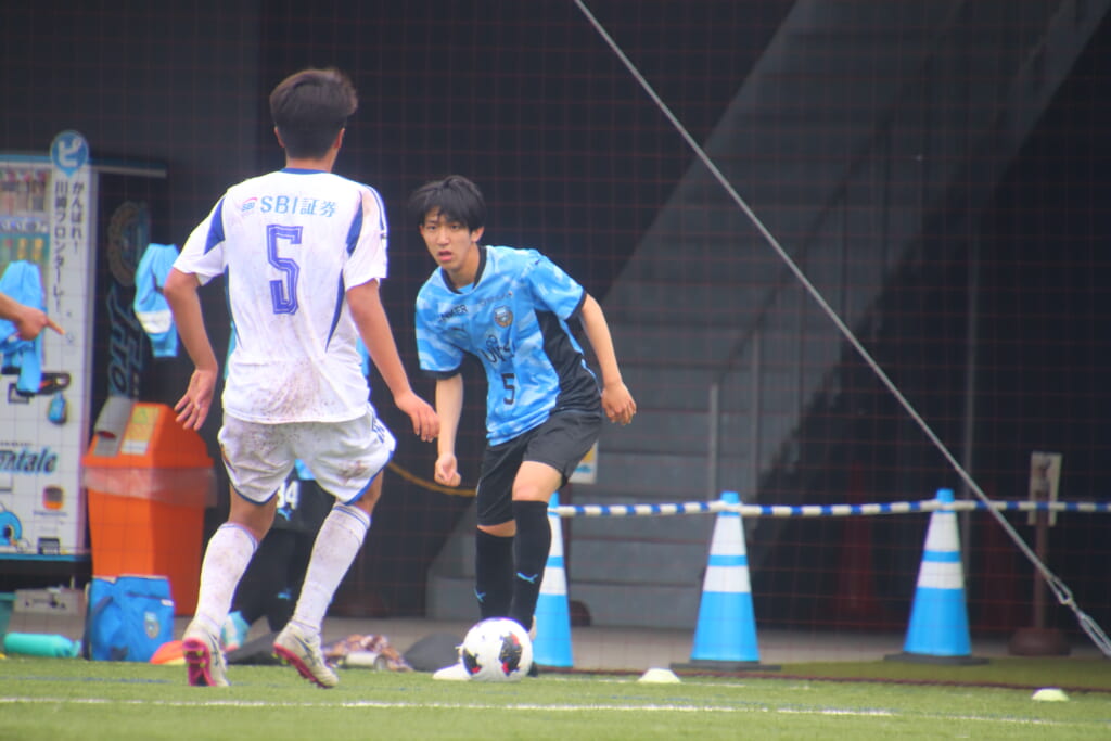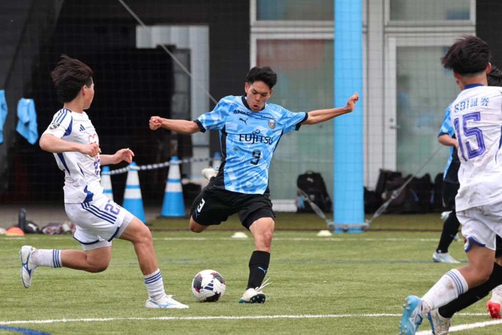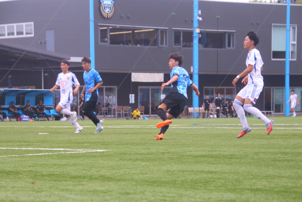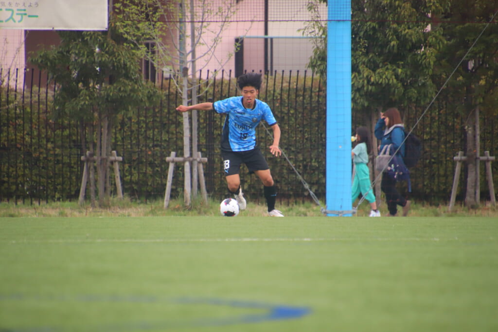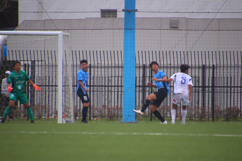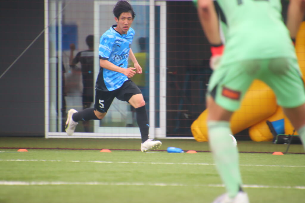 9分には、フロンターレ、小川尋斗から左サイド、山川へ。山川から受けた木村が中央へ持ち出し、そのパスに小川翔太がエリア右へ。