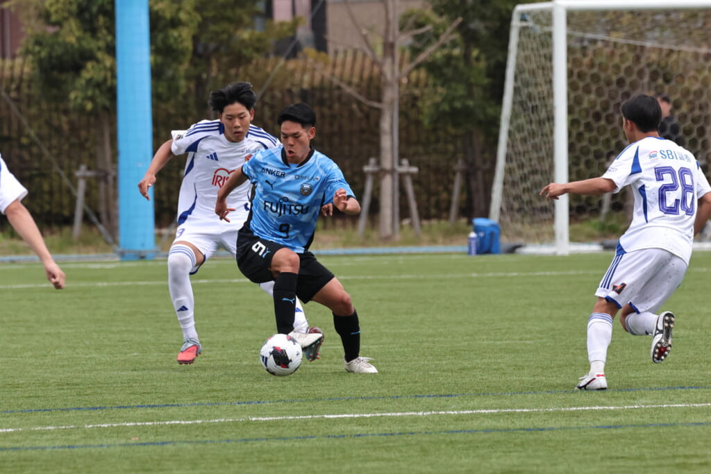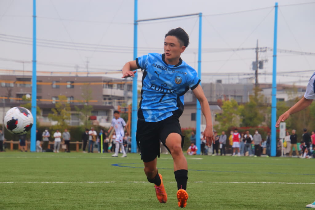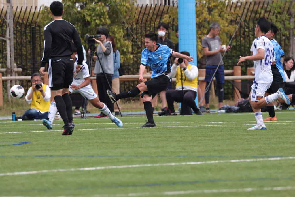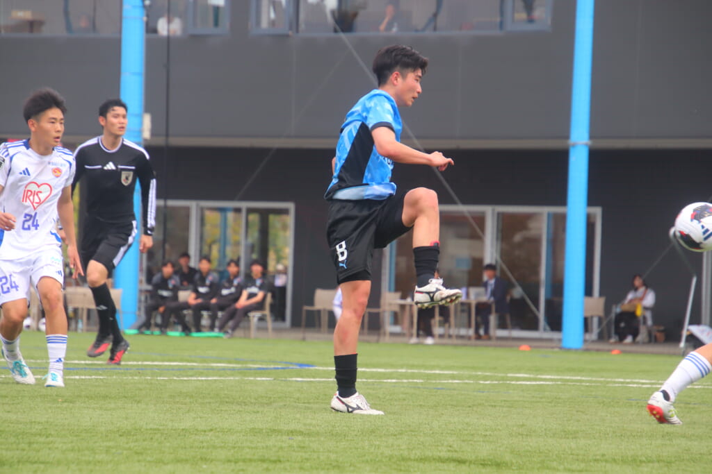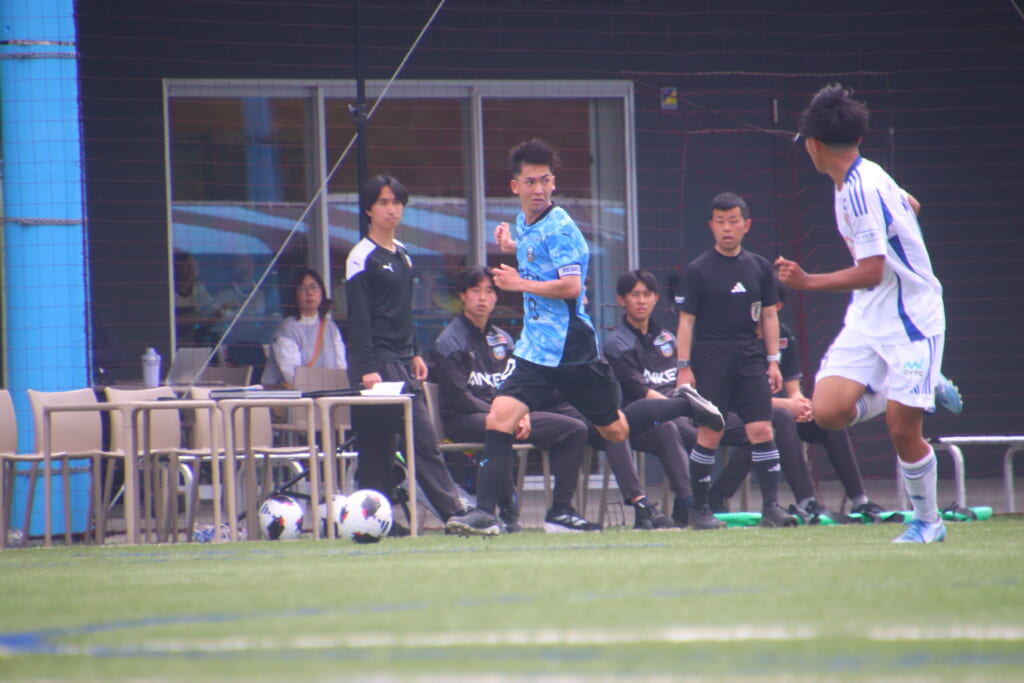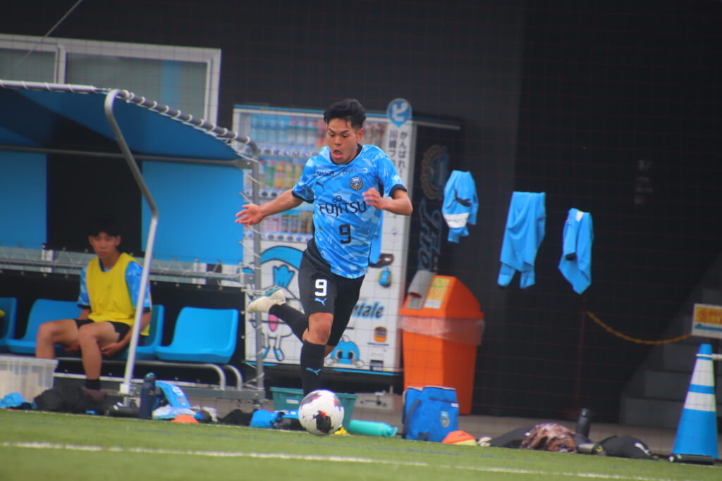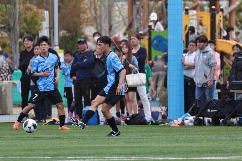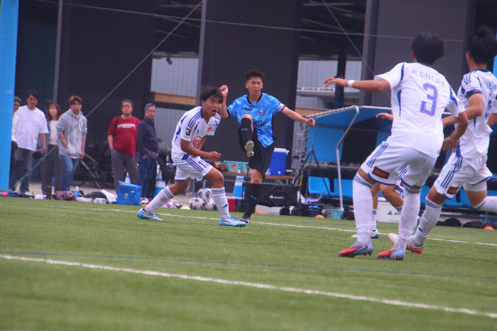 9分には、フロンターレ、小川尋斗から左サイド、山川へ。山川から受けた木村が中央へ持ち出し、そのパスに小川翔太がエリア右へ。