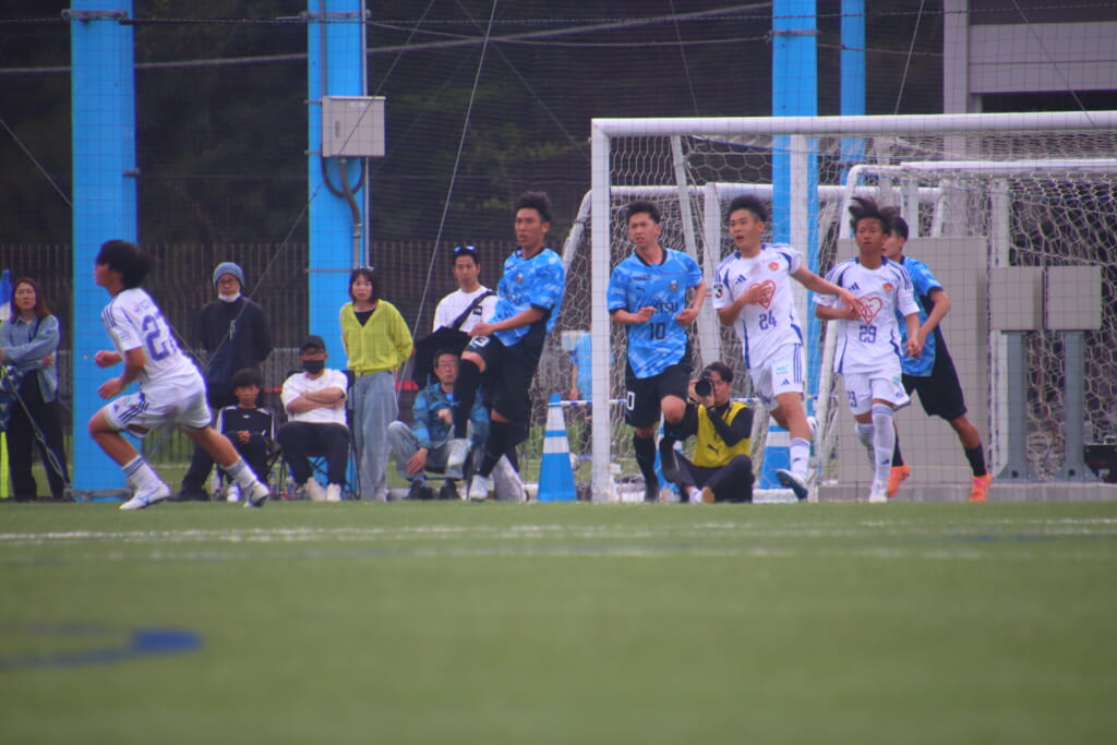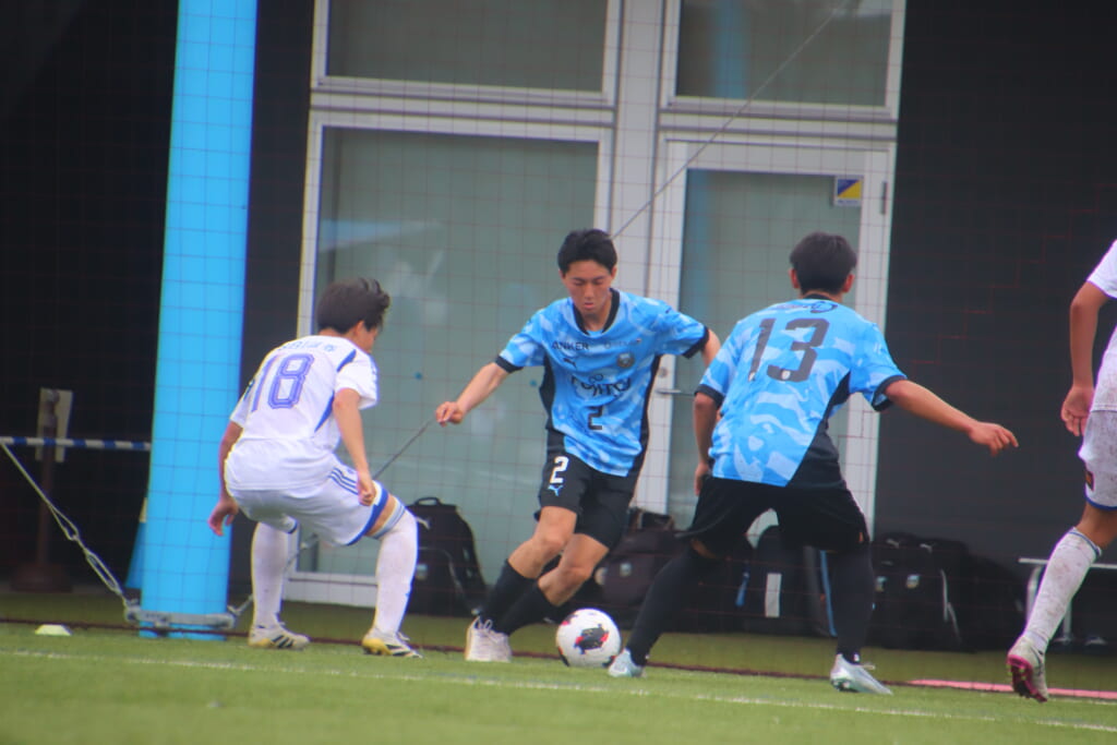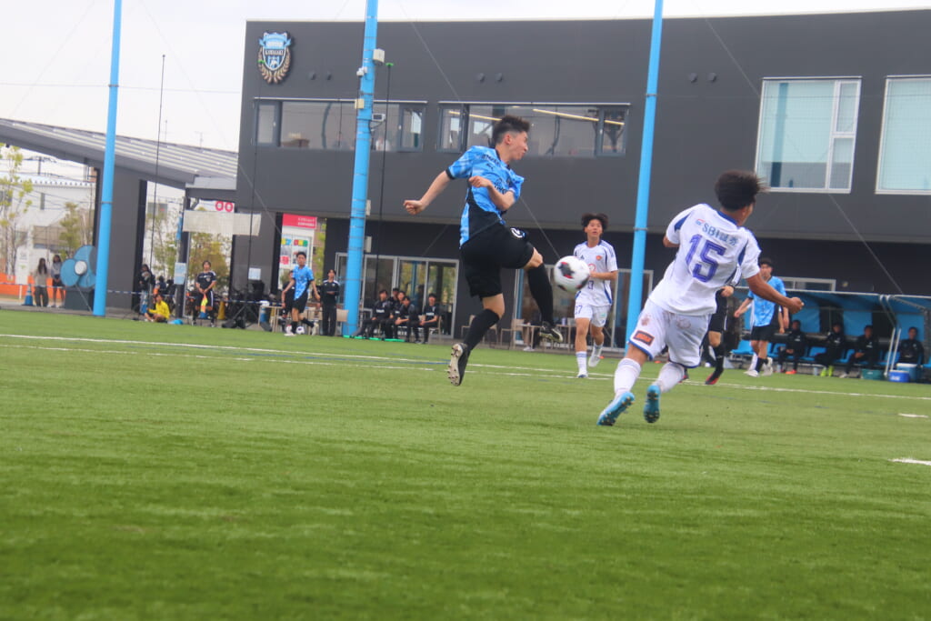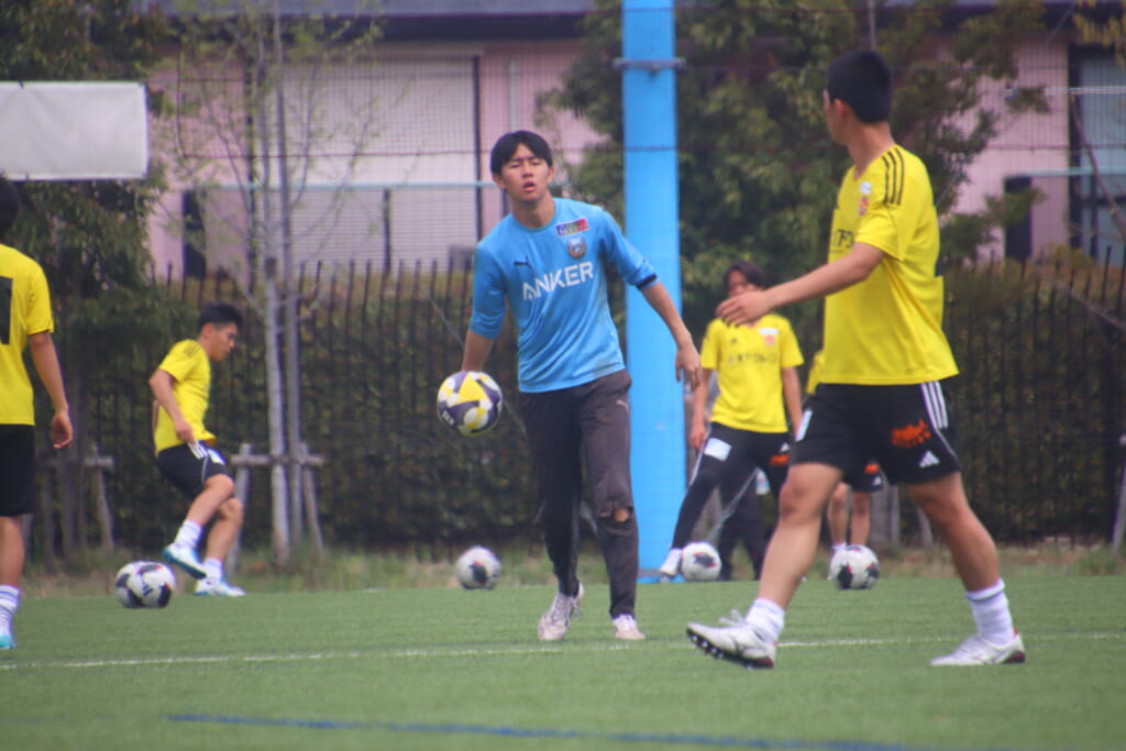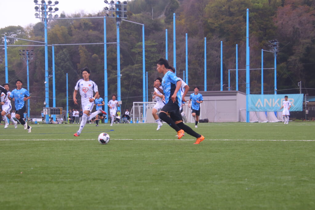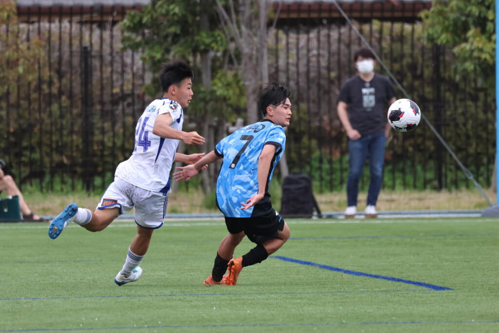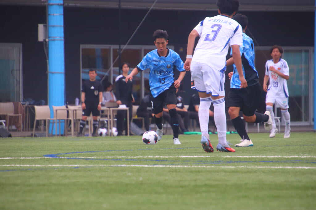 9分には、フロンターレ、小川尋斗から左サイド、山川へ。山川から受けた木村が中央へ持ち出し、そのパスに小川翔太がエリア右へ。