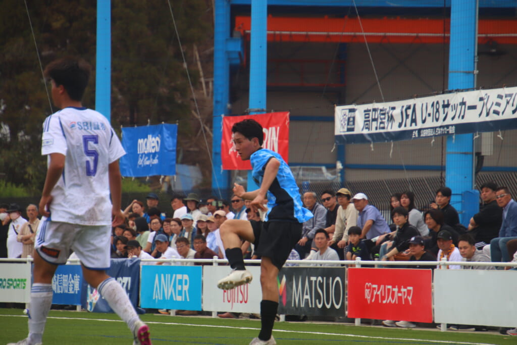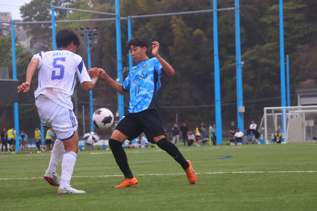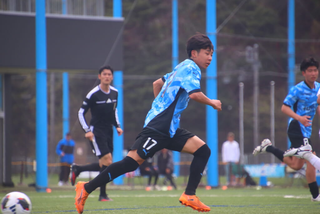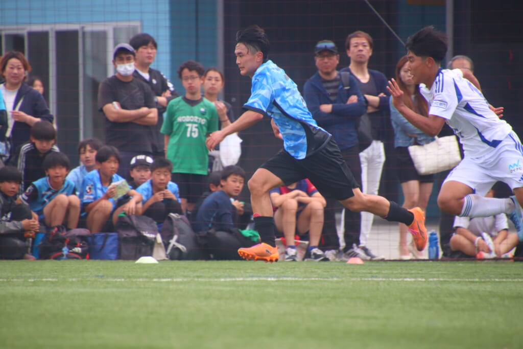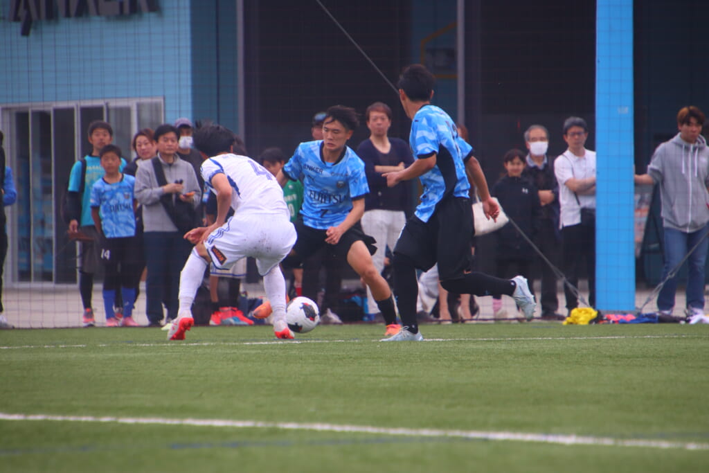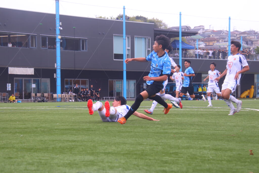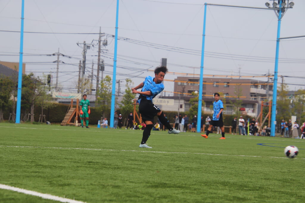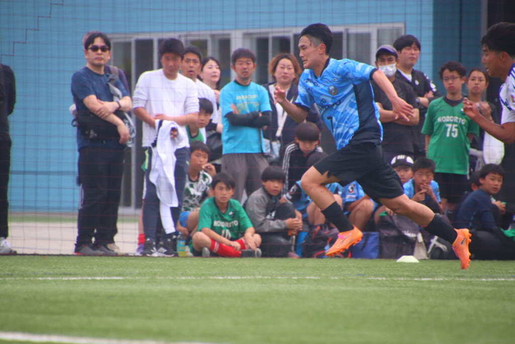 9分には、フロンターレ、小川尋斗から左サイド、山川へ。山川から受けた木村が中央へ持ち出し、そのパスに小川翔太がエリア右へ。