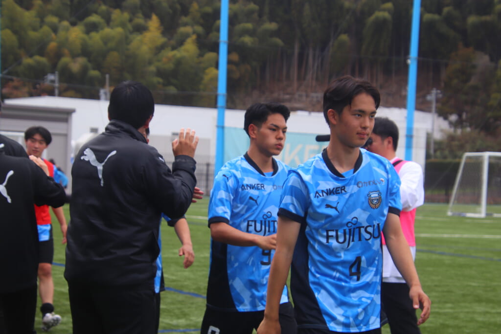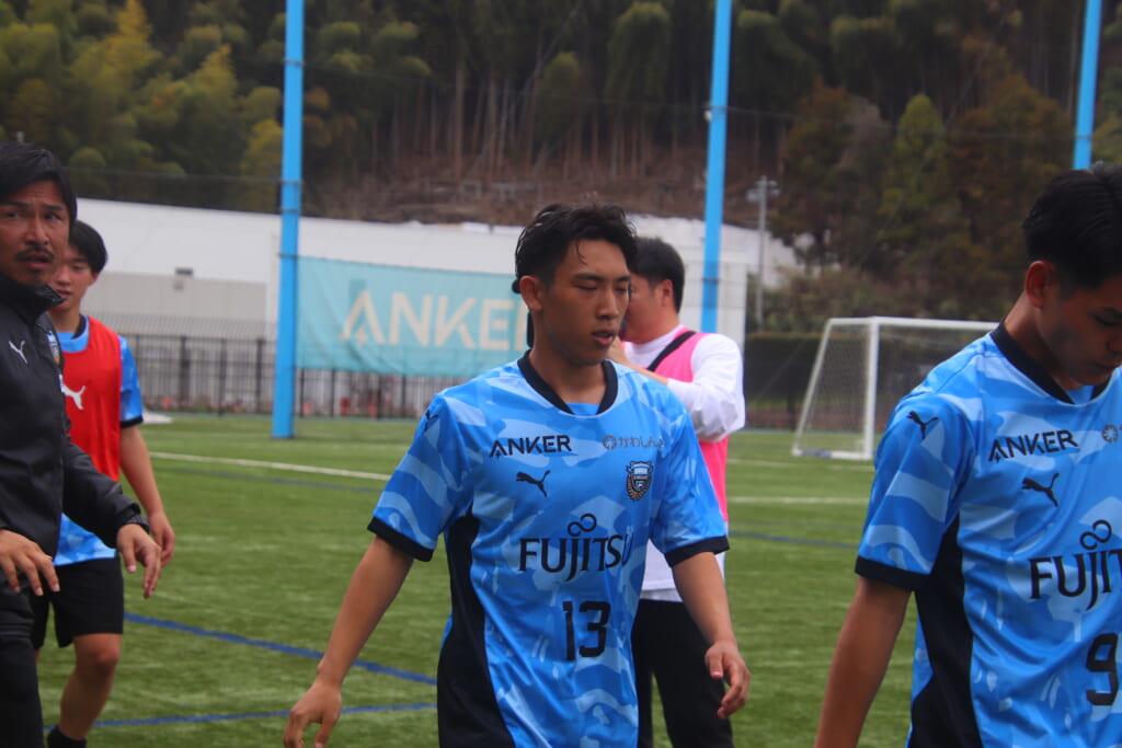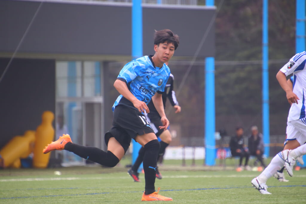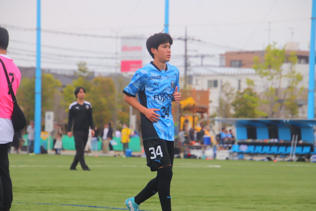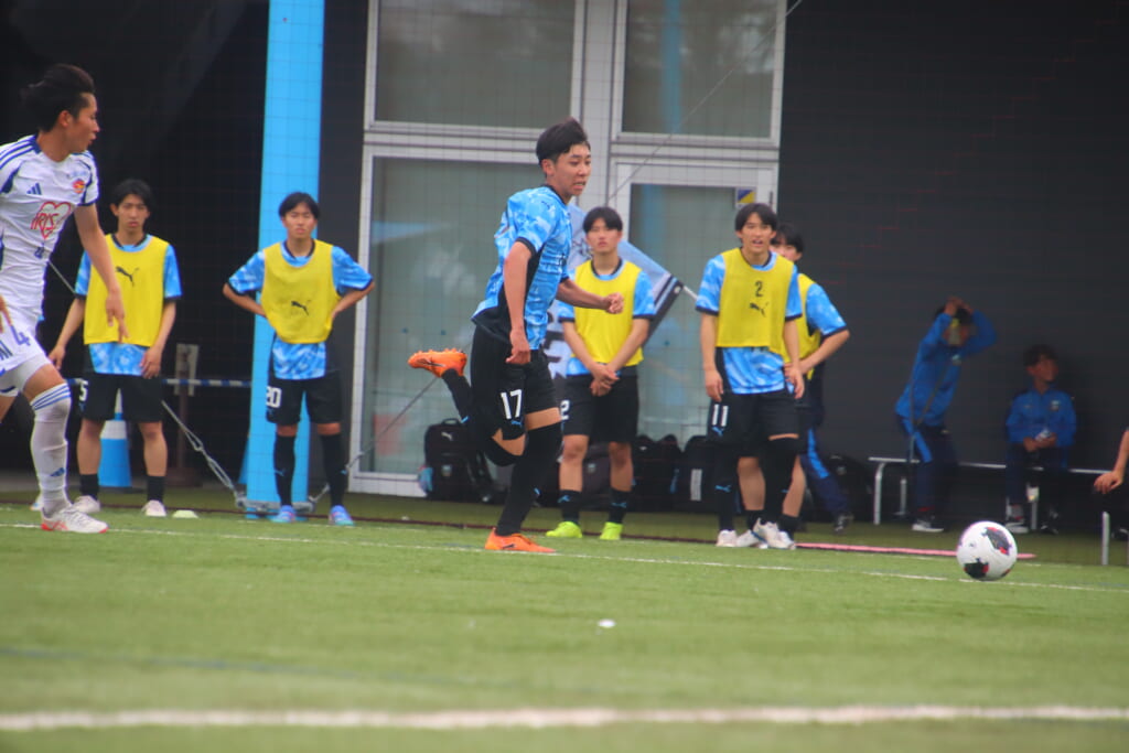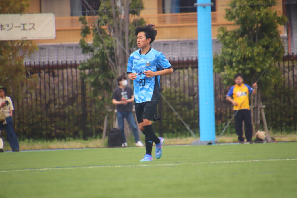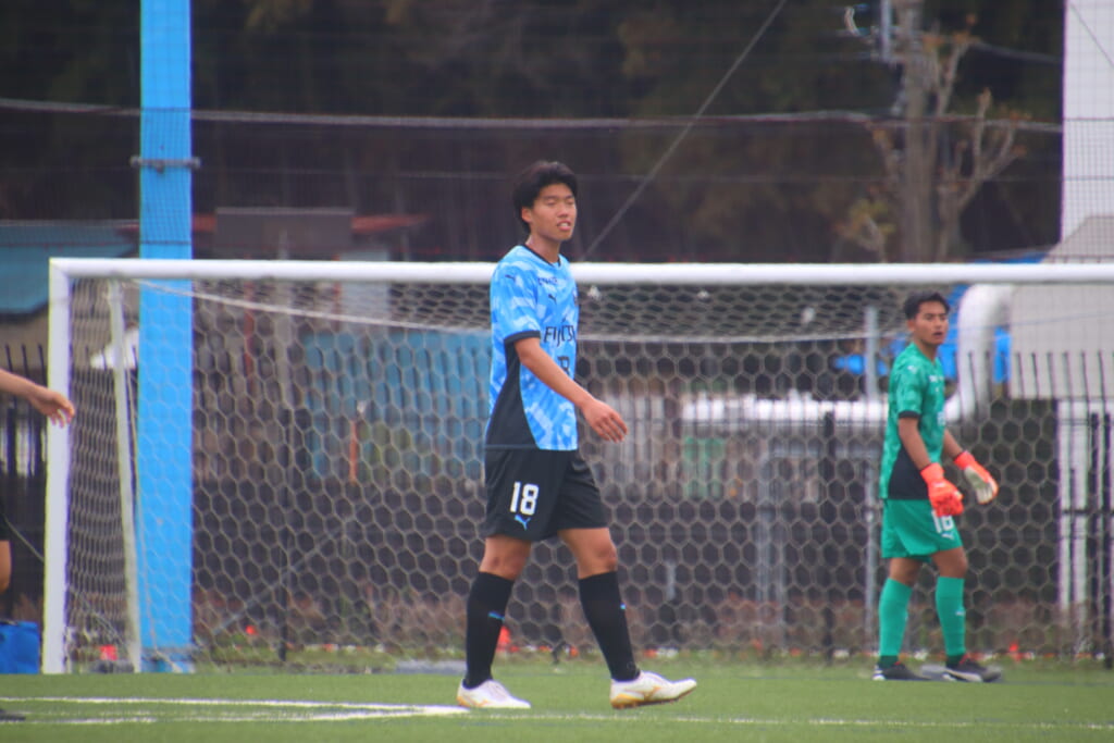 フロンターレは10分、木村に代わり3年生の11廣瀬寧生が入り前線へ。三上が左MFに。