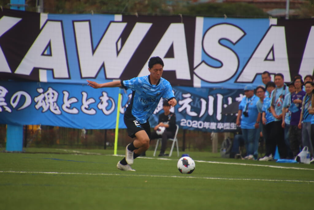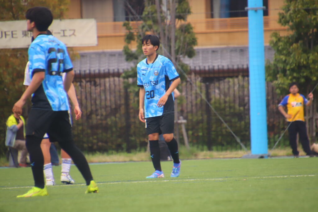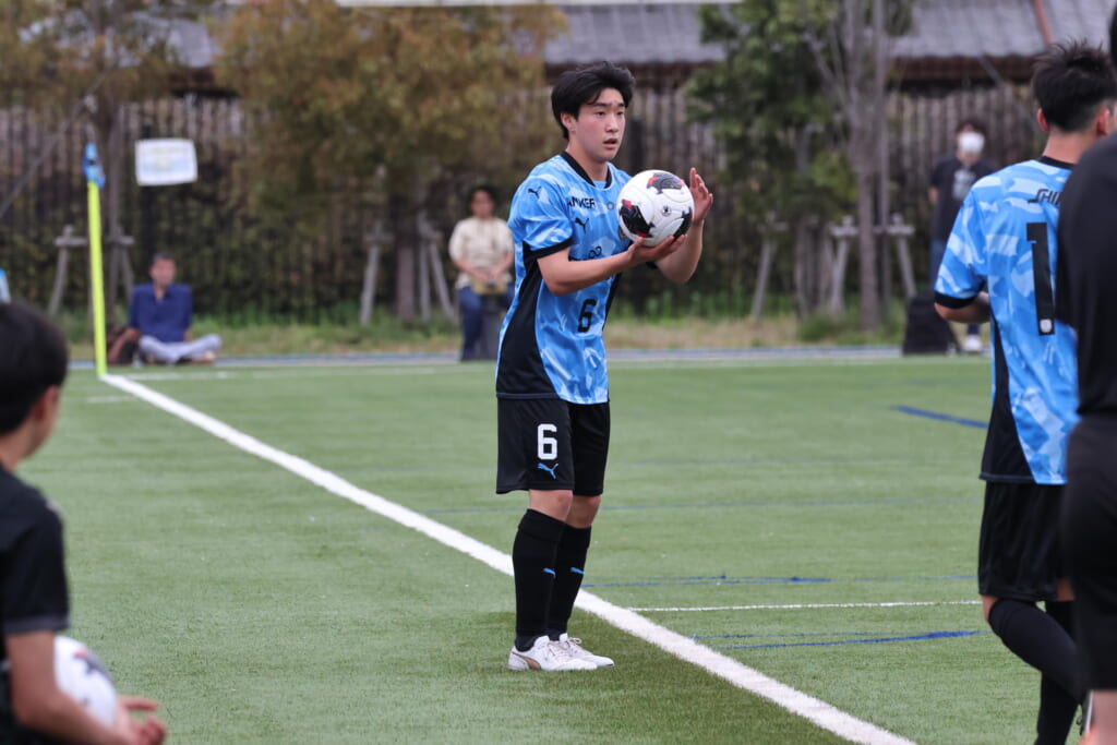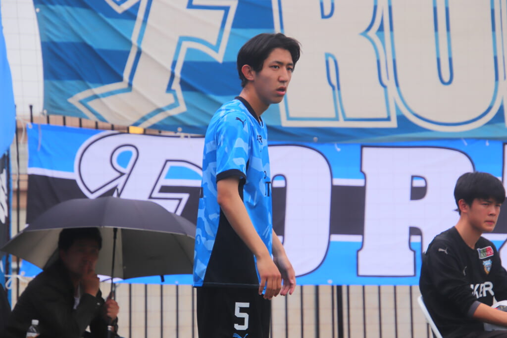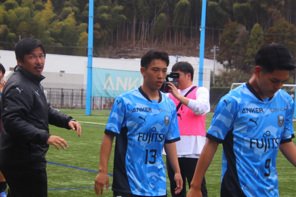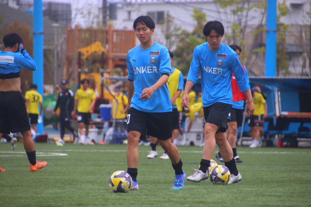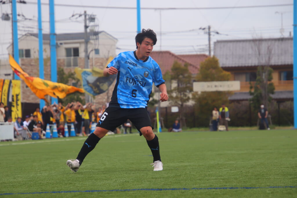 フロンターレは10分、木村に代わり3年生の11廣瀬寧生が入り前線へ。三上が左MFに。