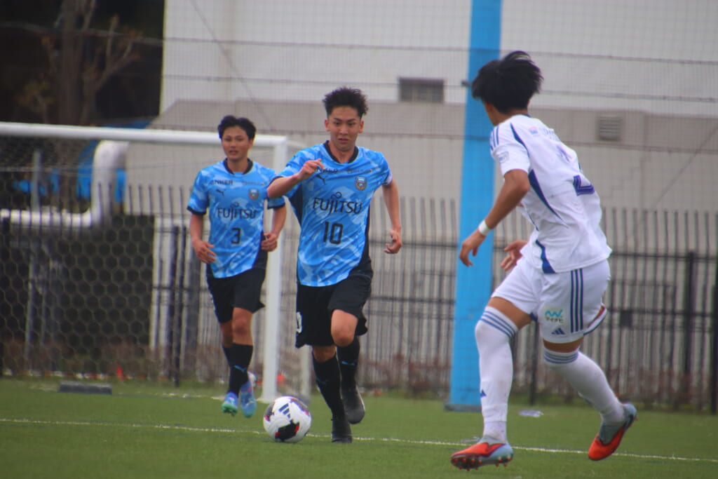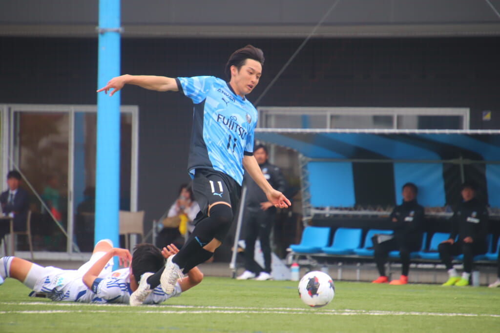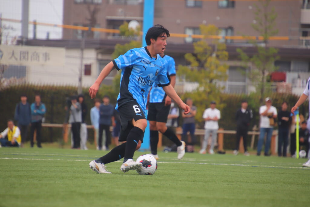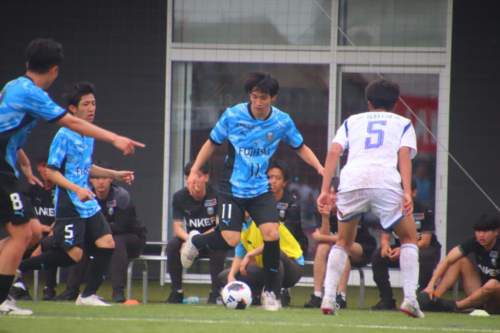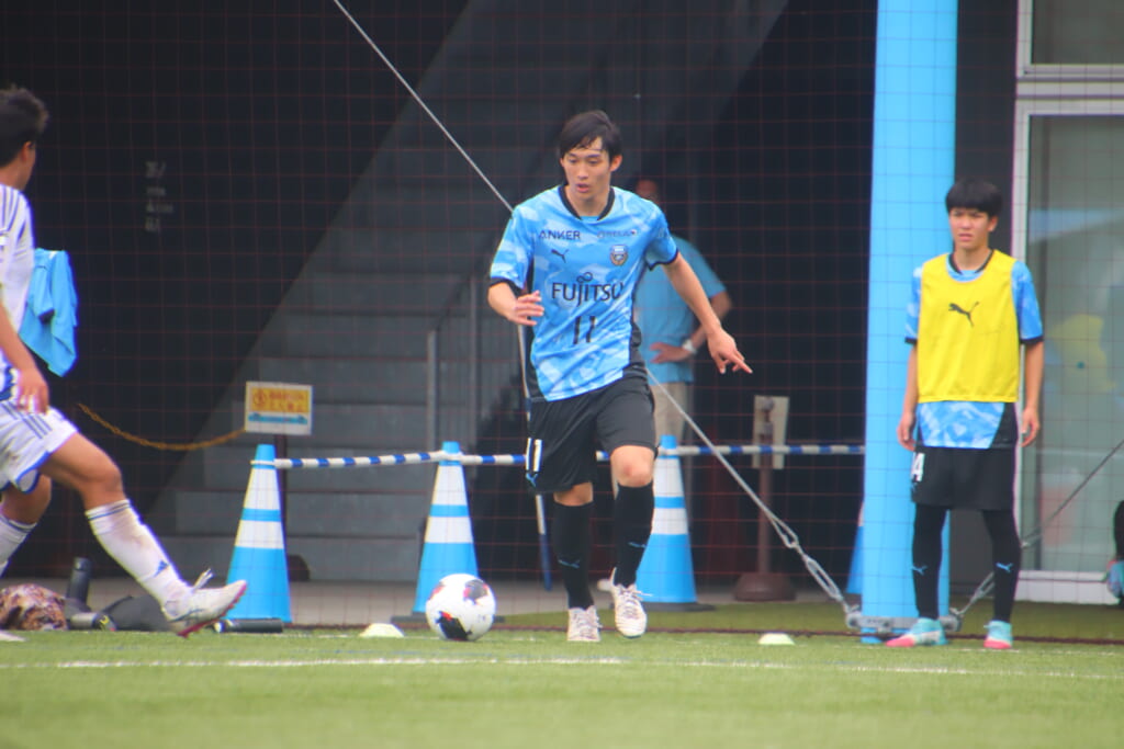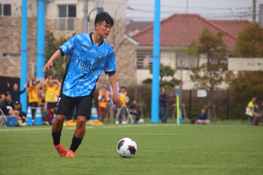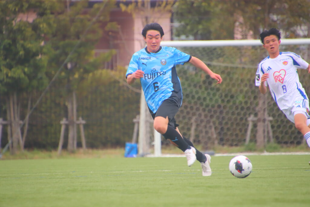 すると32分には、フロンターレ、小田から木下、木下から十河と右サイドでつながり、間で受けた小川尋斗から左サイド、廣瀬へ。