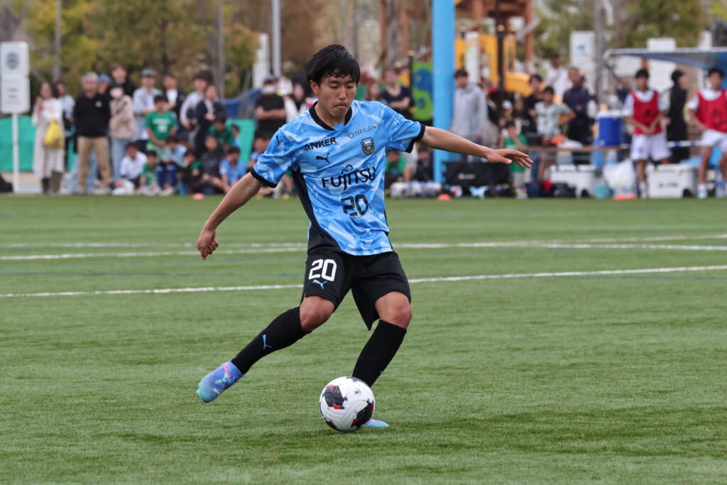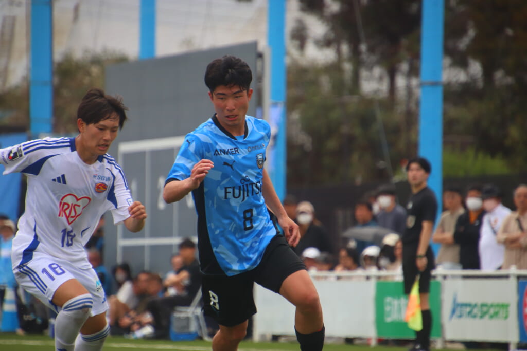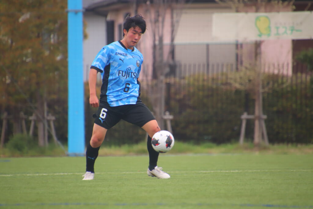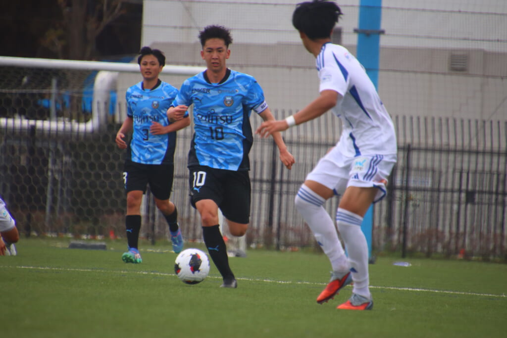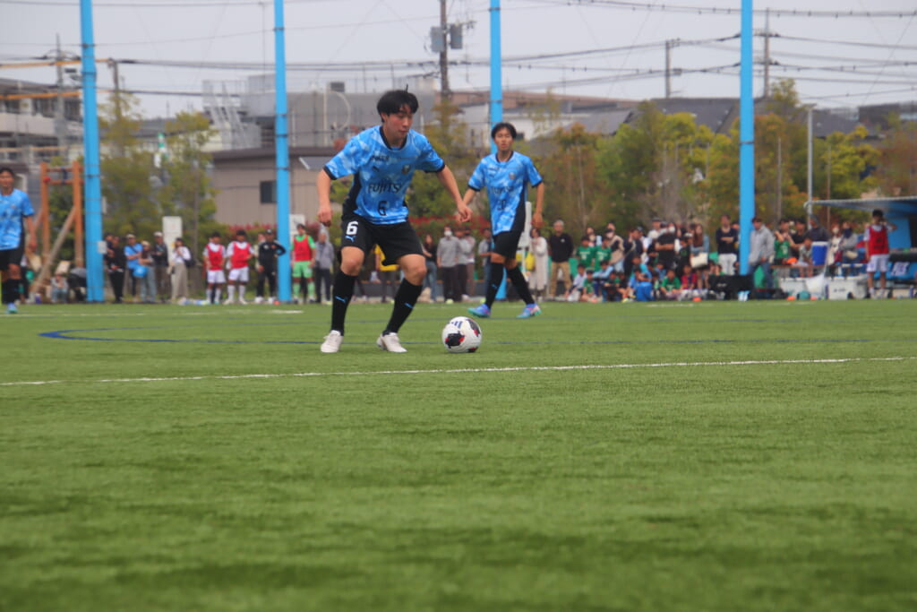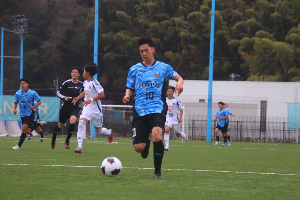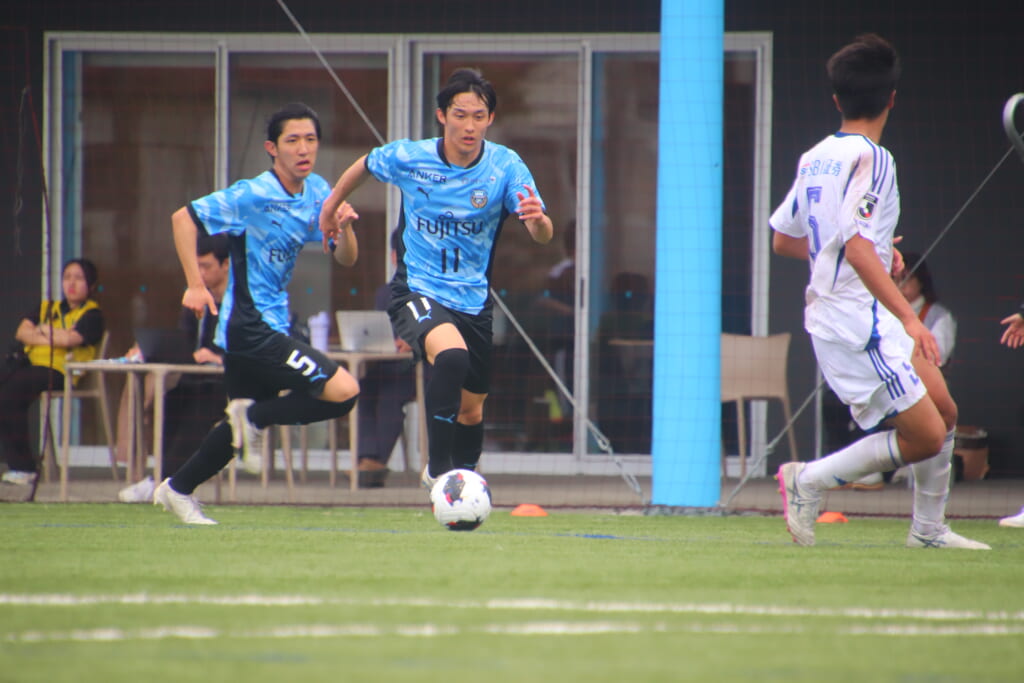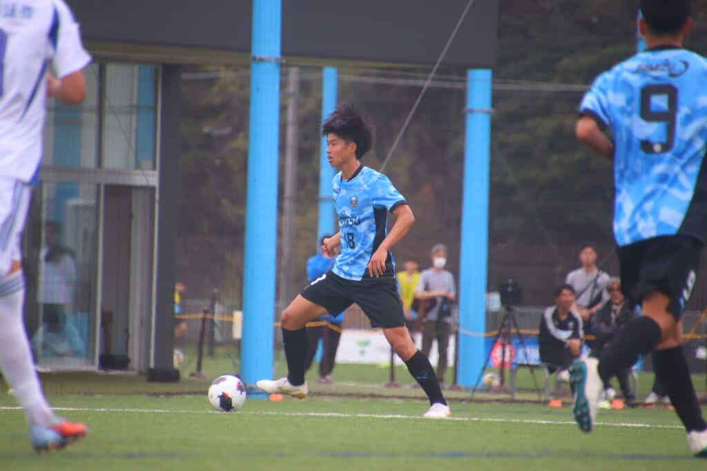 すると32分には、フロンターレ、小田から木下、木下から十河と右サイドでつながり、間で受けた小川尋斗から左サイド、廣瀬へ。
