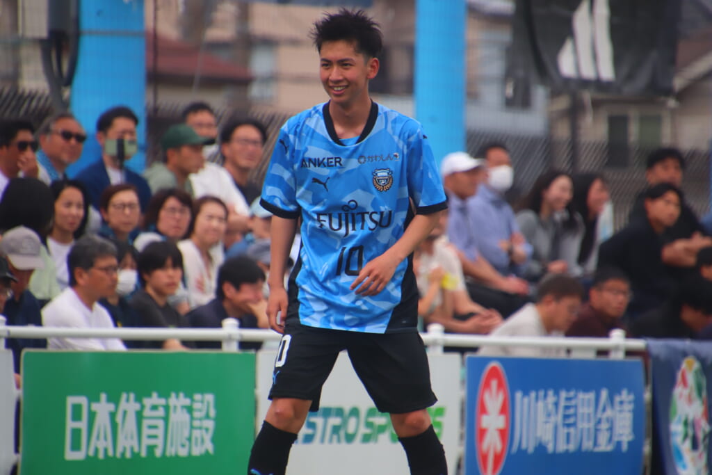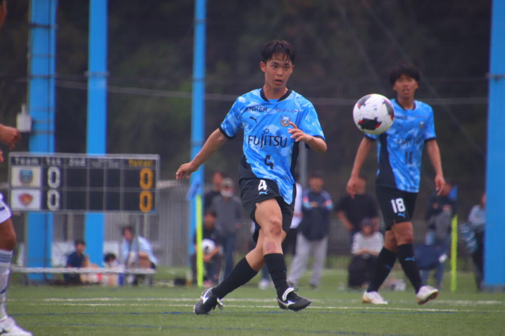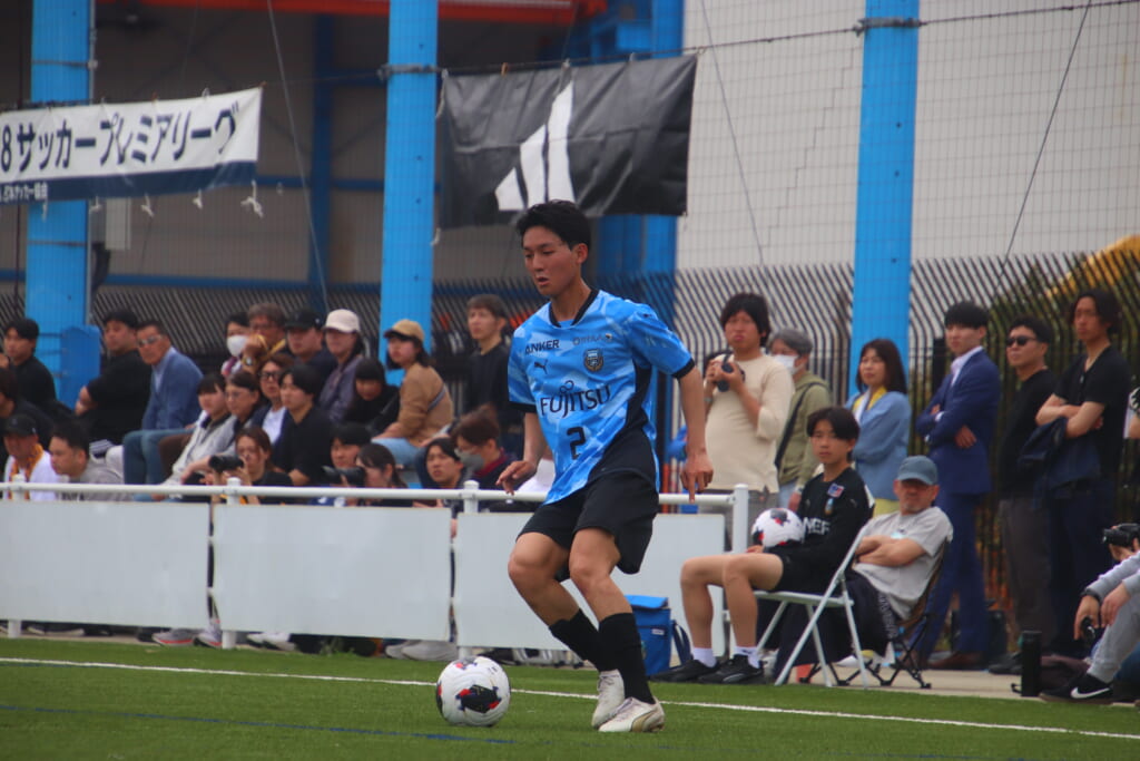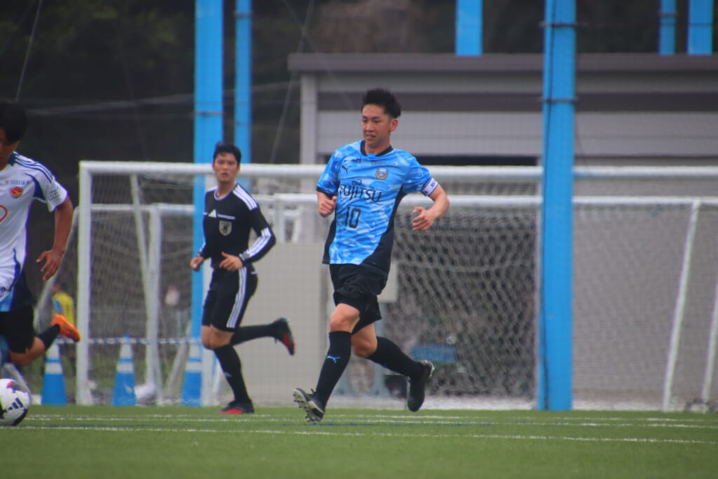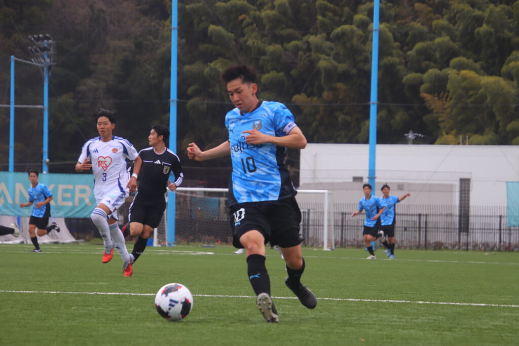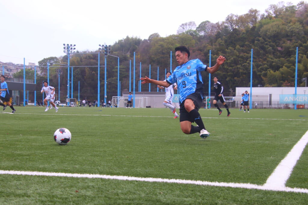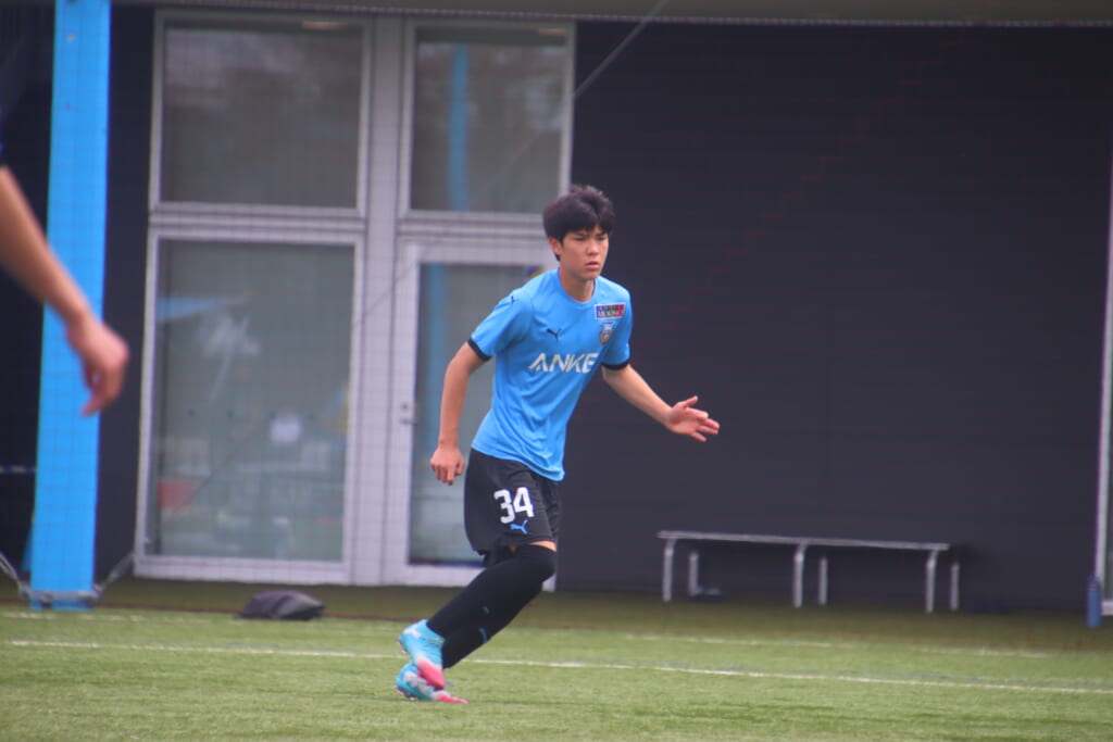 すると32分には、フロンターレ、小田から木下、木下から十河と右サイドでつながり、間で受けた小川尋斗から左サイド、廣瀬へ。