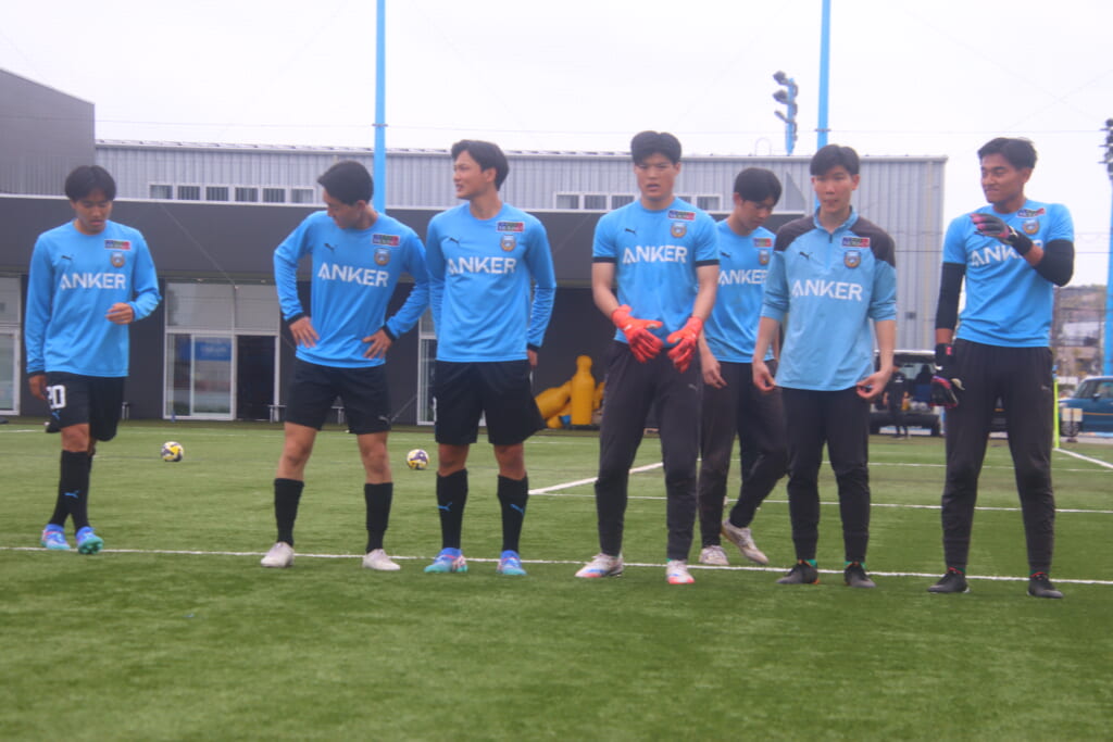 先発は、GK12渡邊航聖、最終ラインは右から3石原滉大、キャプテンの4石山葉琉、15鑓水桜雅、ボランチは28安部嶺尋、27髙久遼成、右に5徳永匡哉、左に24阿部青空、2シャドーに18伊藤暖人、29山下湊司、前線には9佐々木亮。