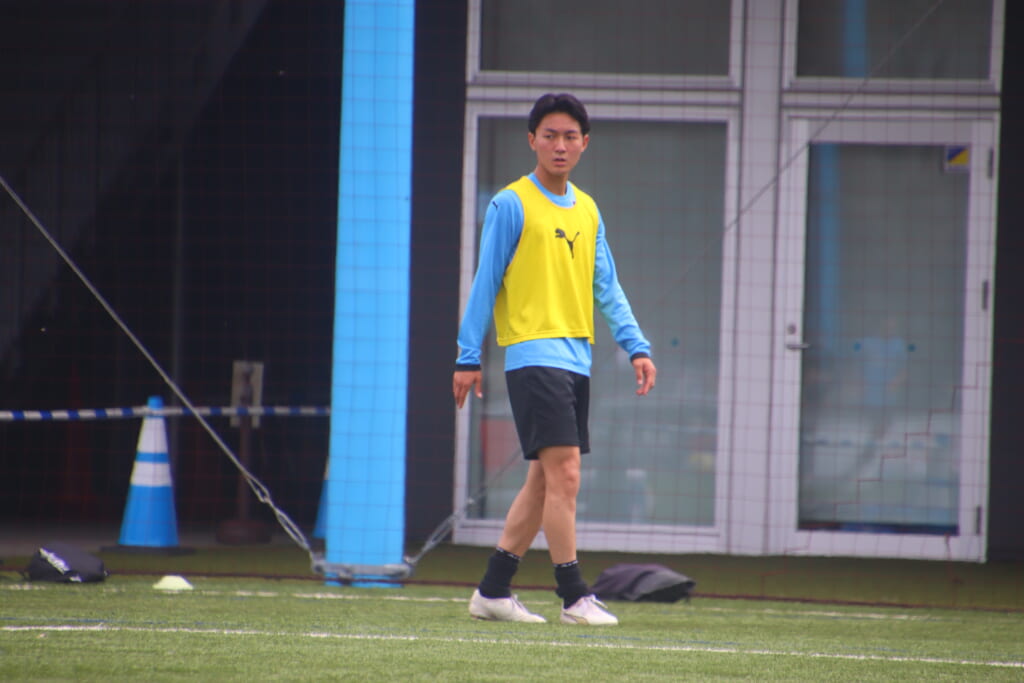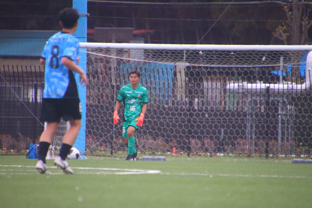 先発は、GK16岡本栞汰、最終ラインは右から7小川翔太、18笹倉拓真、3藤田明日翔、2山川陽平、ボランチは4今廣遥碧、8小川尋斗、右MFキャプテンの10木下勝正、左MF17木村風斗、前線には13三上瑛大、9川村求。