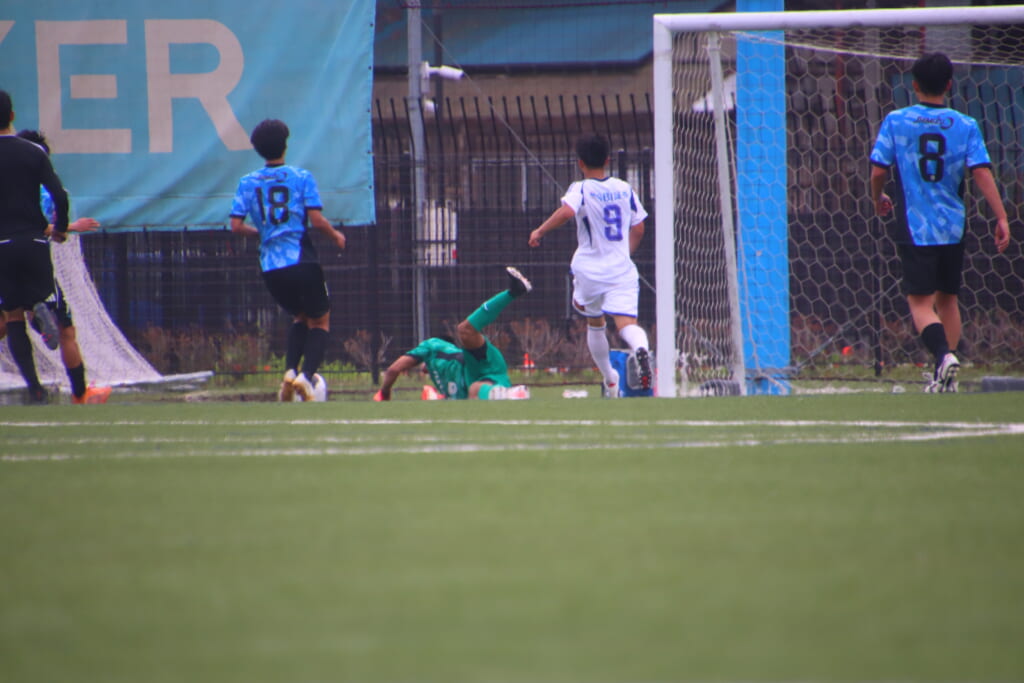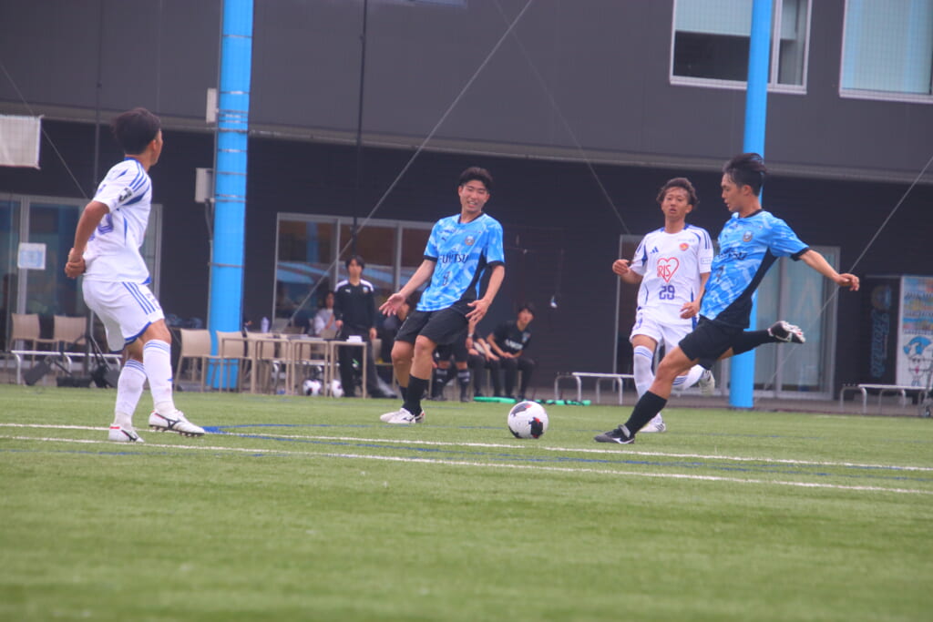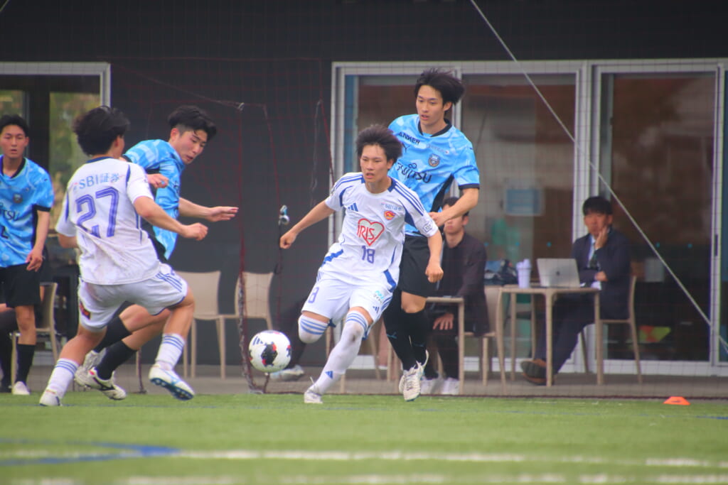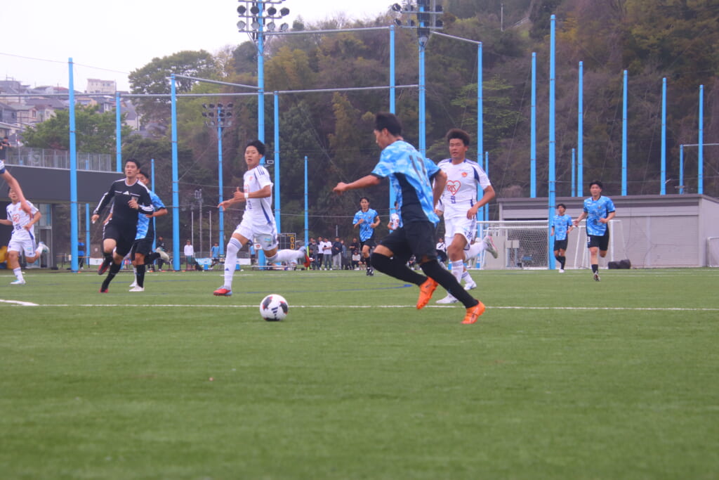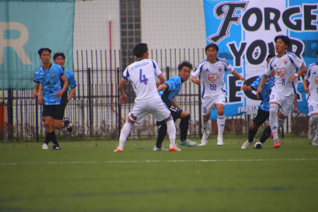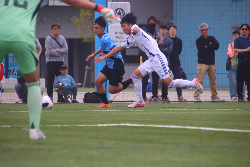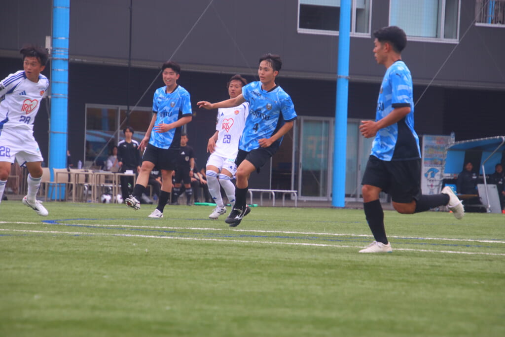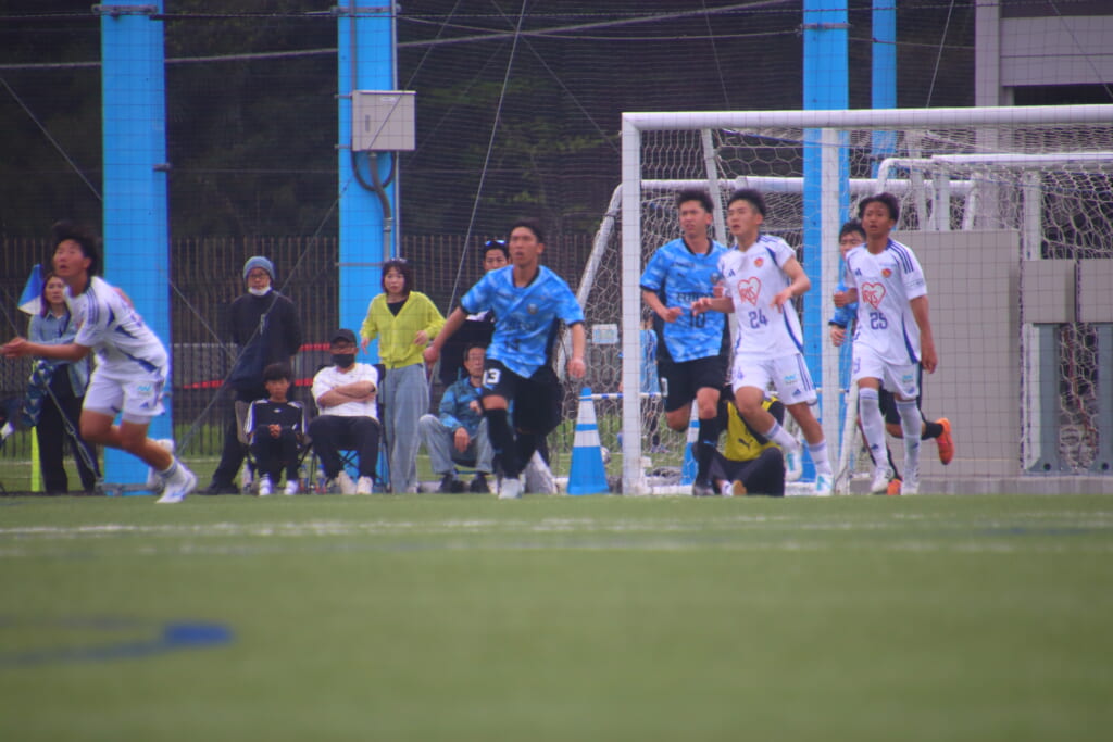 下がり目で三上が受け、そこから左サイド、山川へ。山川のパスを中央で小川尋斗が受け、そのパスに三上が正面左へ。三上のパスに、今廣が正面へ飛び出しますが、さわることはできず。