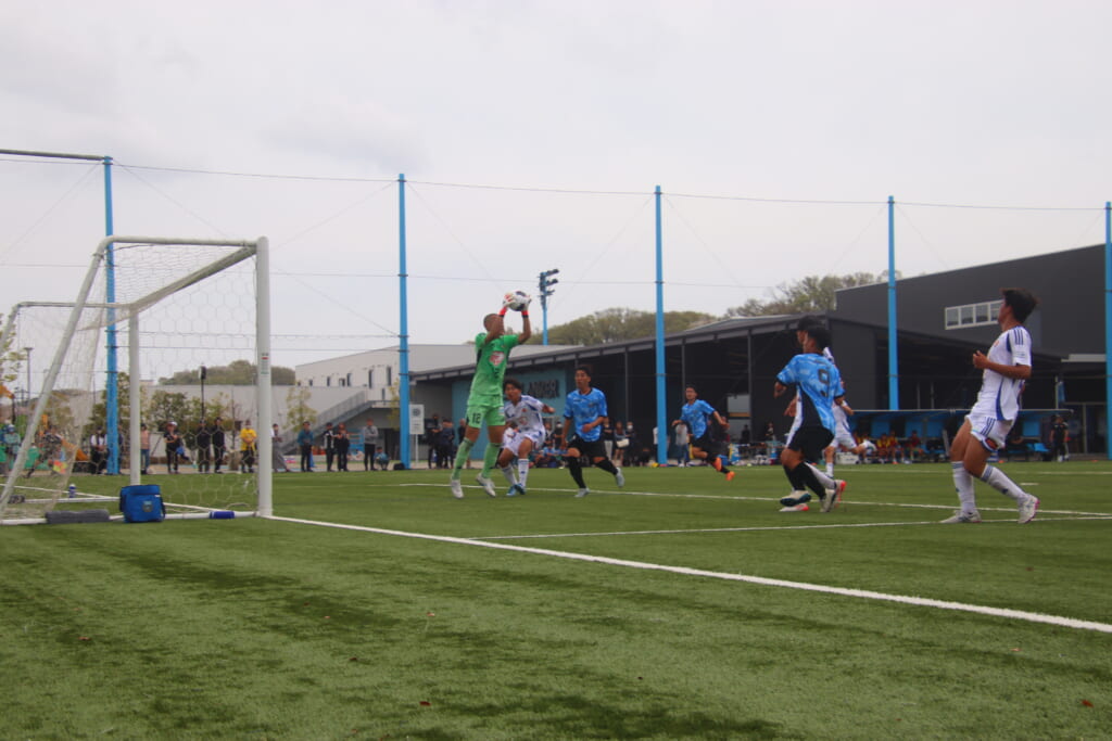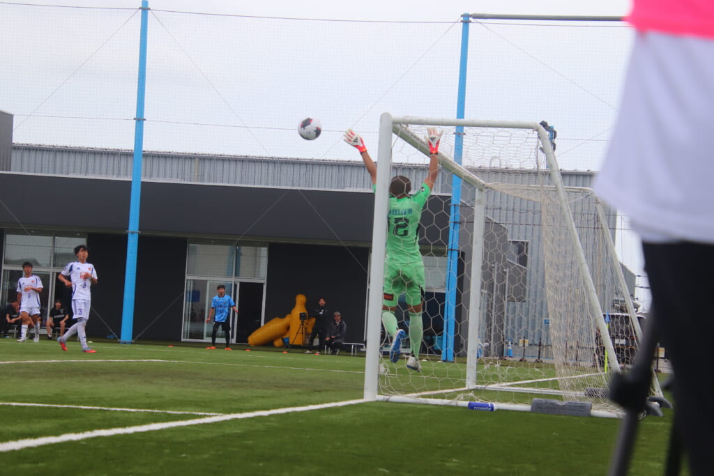 こぼれ球を拾った山下がエリア左へ。決定的な場面でしたが、シュートは岡本がストップ。好守でピンチをしのいでいきます。