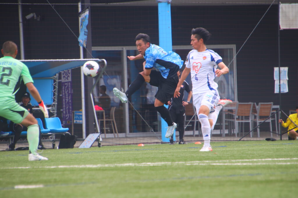 43分には、左サイド、廣瀬のクロスに小川尋斗がヘディングシュート。しかし、GK渡邊がセーブ。