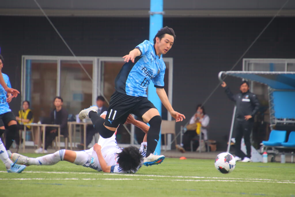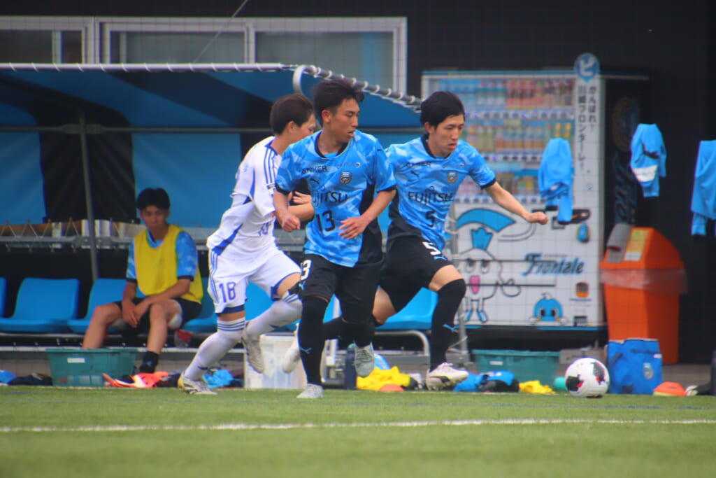 さらに中央間で加藤や小川尋斗が受けるなどして、前に出ていくフロンターレ。