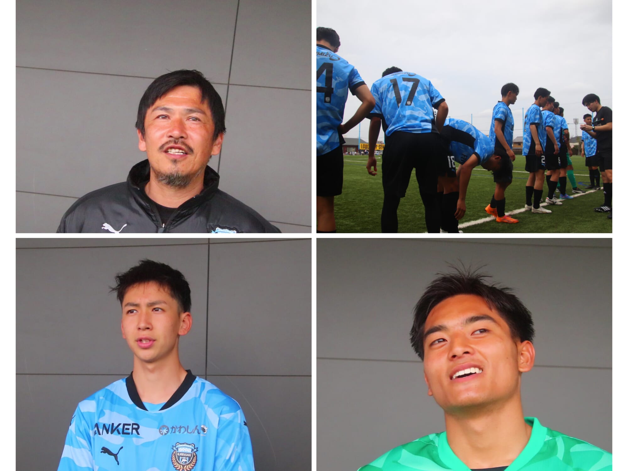 4月5日、Anker フロンタウン生田で行われたプレミアリーグEAST第1節、ベガルタ仙台ユース戦を0-0で終えた川崎フロンターレU-18。試合後に森勇介監督、キャプテンを務めるMF10木下勝正、プレミアリーグ初出場初先発のGK16岡本栞汰の2選手に話を聞きました。