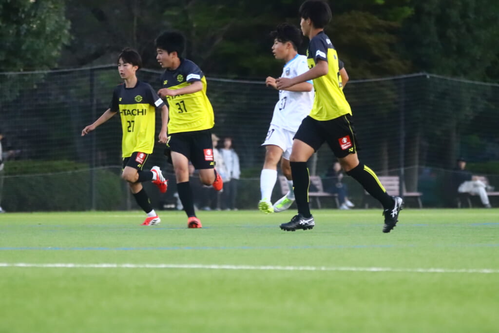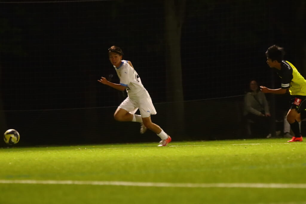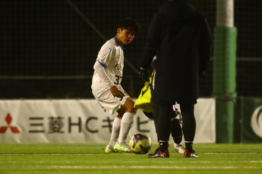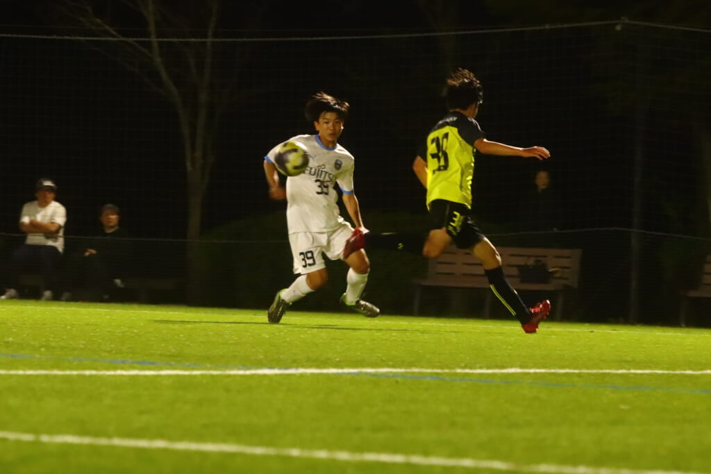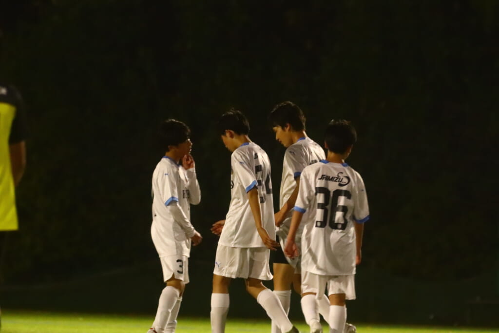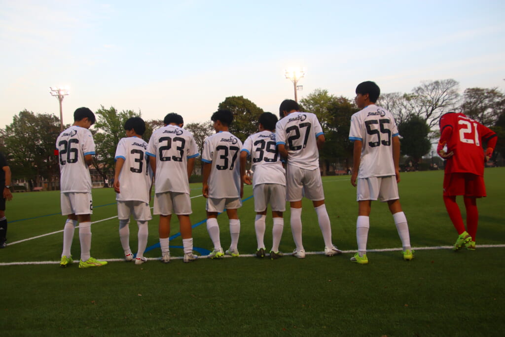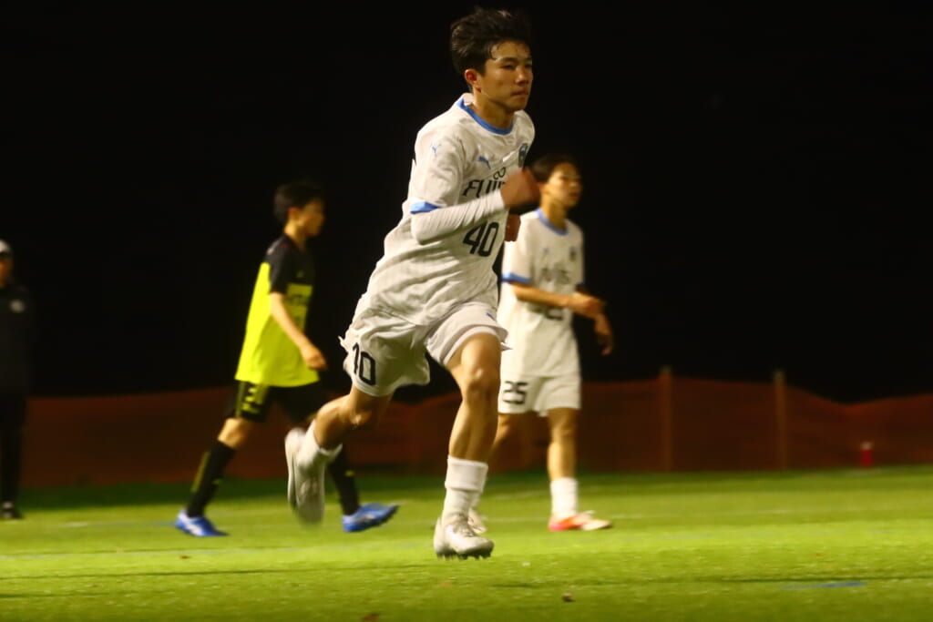 先発は、GK21佐藤惇太、最終ラインは右から38上原快斗、25奥村翔依、35劉明浩、37糸賀亜輝、ボランチは24秋元佑生、27井出翼、右MF36赤井涼南朗、左MFキャプテンの30田中陽生、前線には34浅沼夏都、39水上零仁。