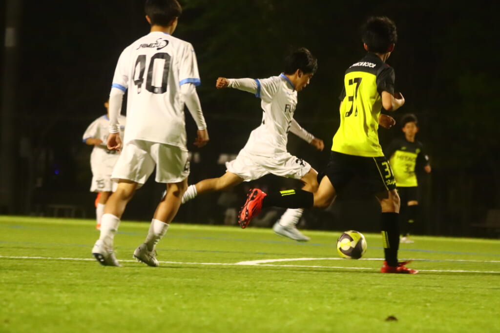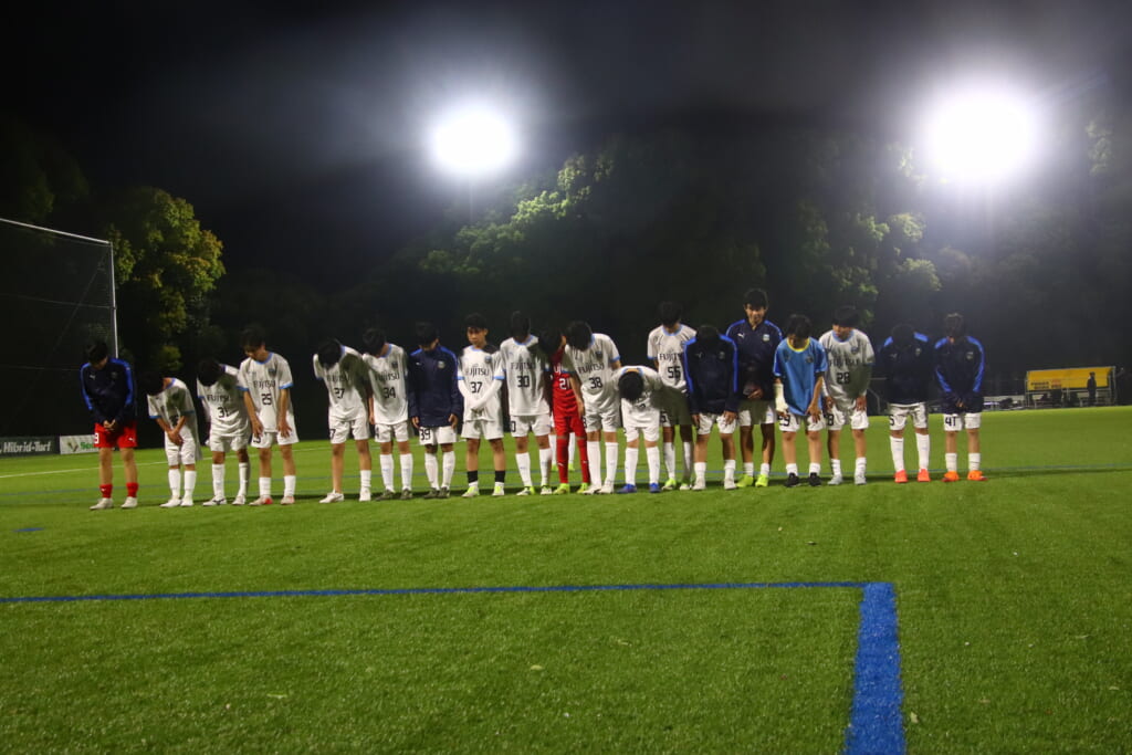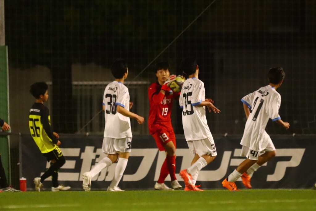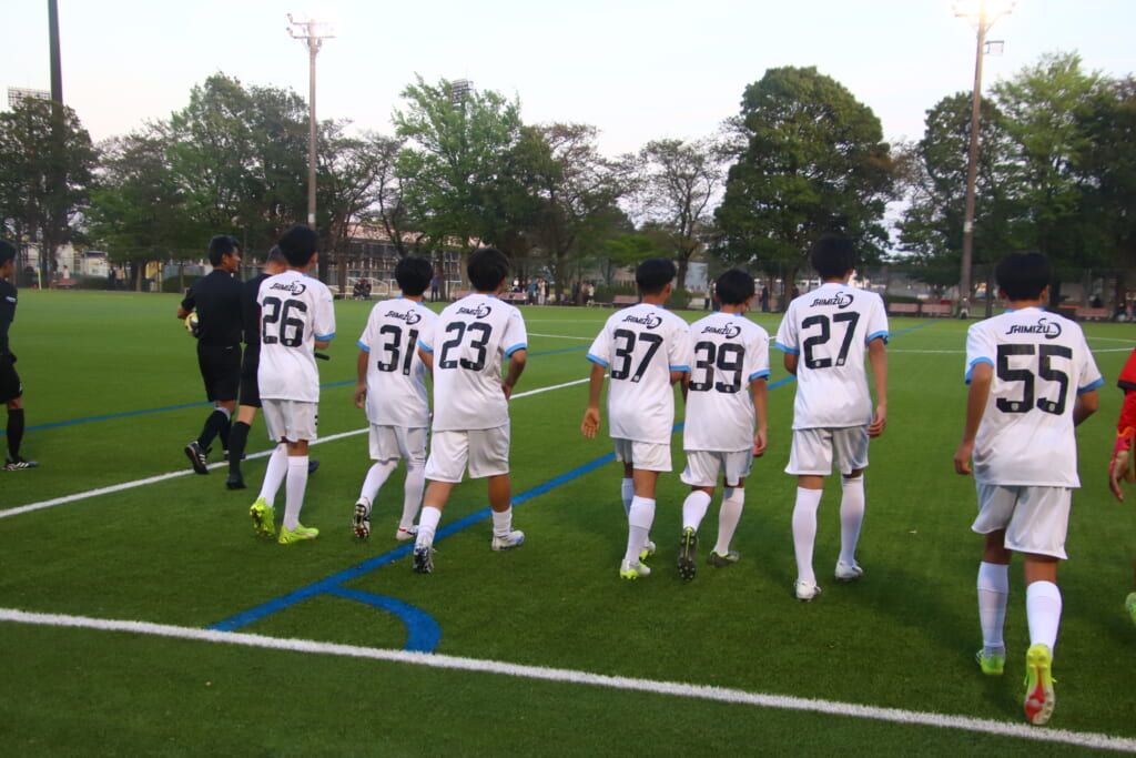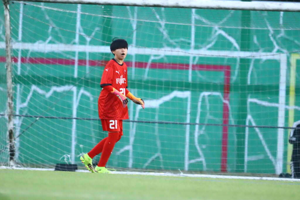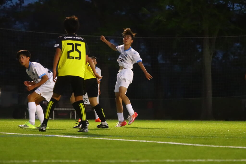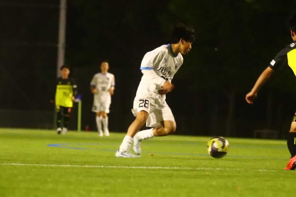先発は、GK21佐藤惇太、最終ラインは右から38上原快斗、25奥村翔依、35劉明浩、37糸賀亜輝、ボランチは24秋元佑生、27井出翼、右MF36赤井涼南朗、左MFキャプテンの30田中陽生、前線には34浅沼夏都、39水上零仁。