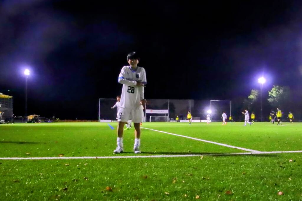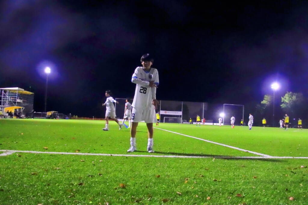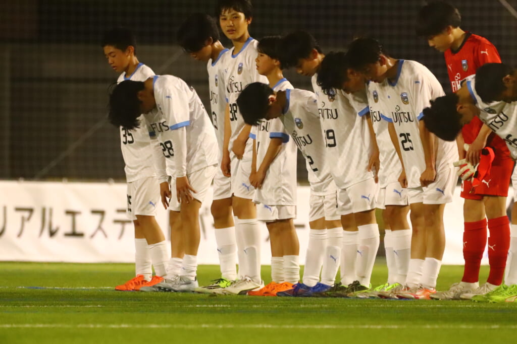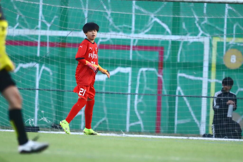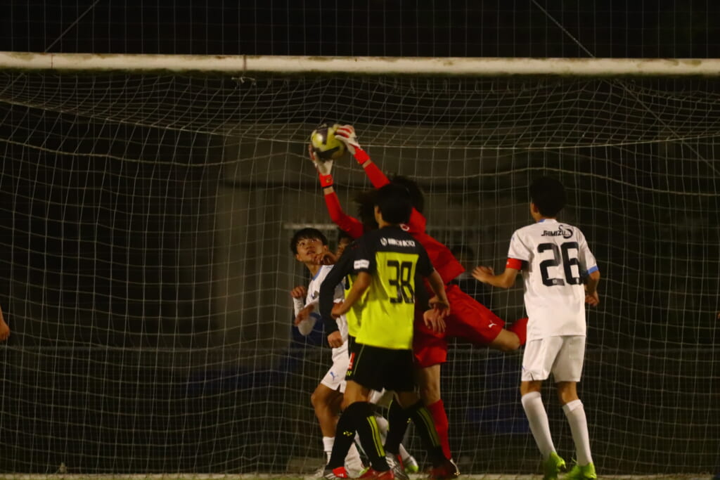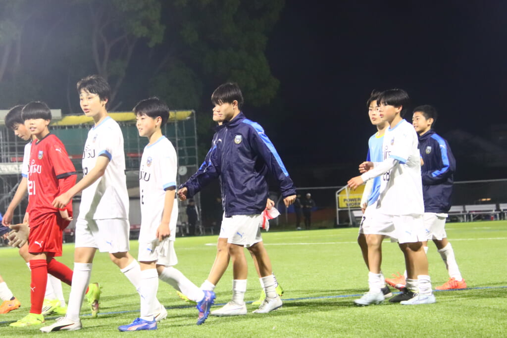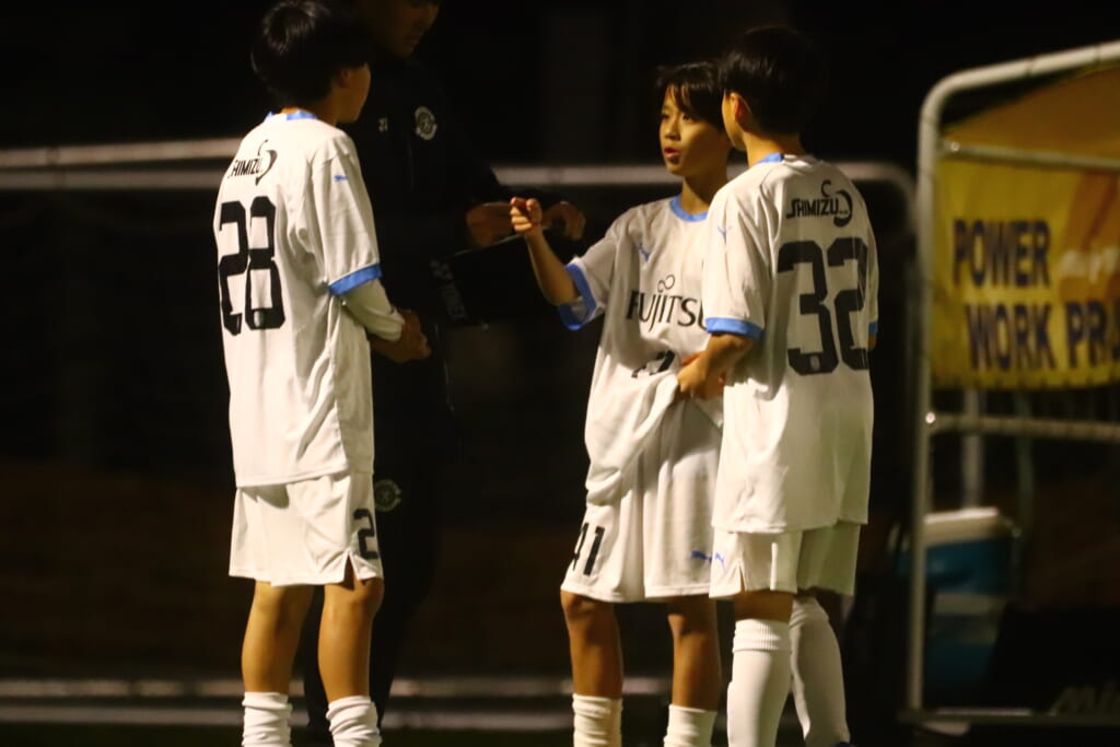 先発は、GK21佐藤惇太、最終ラインは右から38上原快斗、25奥村翔依、35劉明浩、37糸賀亜輝、ボランチは24秋元佑生、27井出翼、右MF36赤井涼南朗、左MFキャプテンの30田中陽生、前線には34浅沼夏都、39水上零仁。