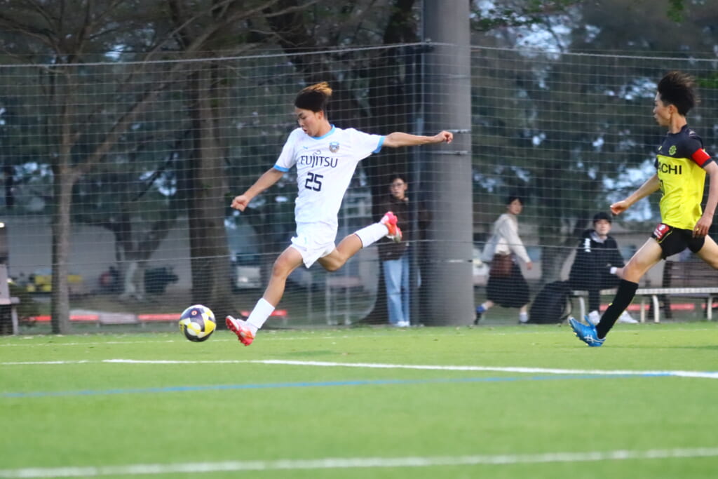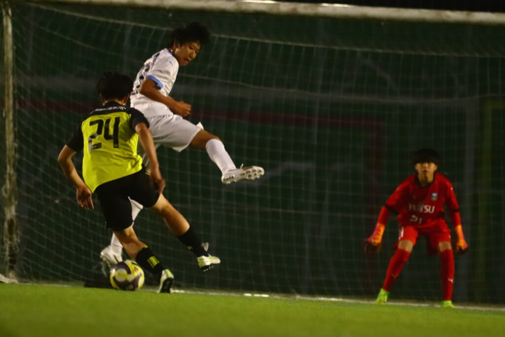 4分には、星のプレスからマイボールに。神宮司が右サイドから正面へ持ち込み、左足でシュート。これがゴールへ決まり、1-0。