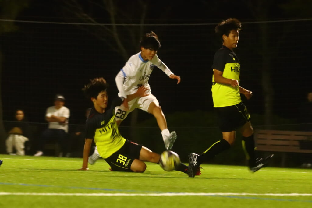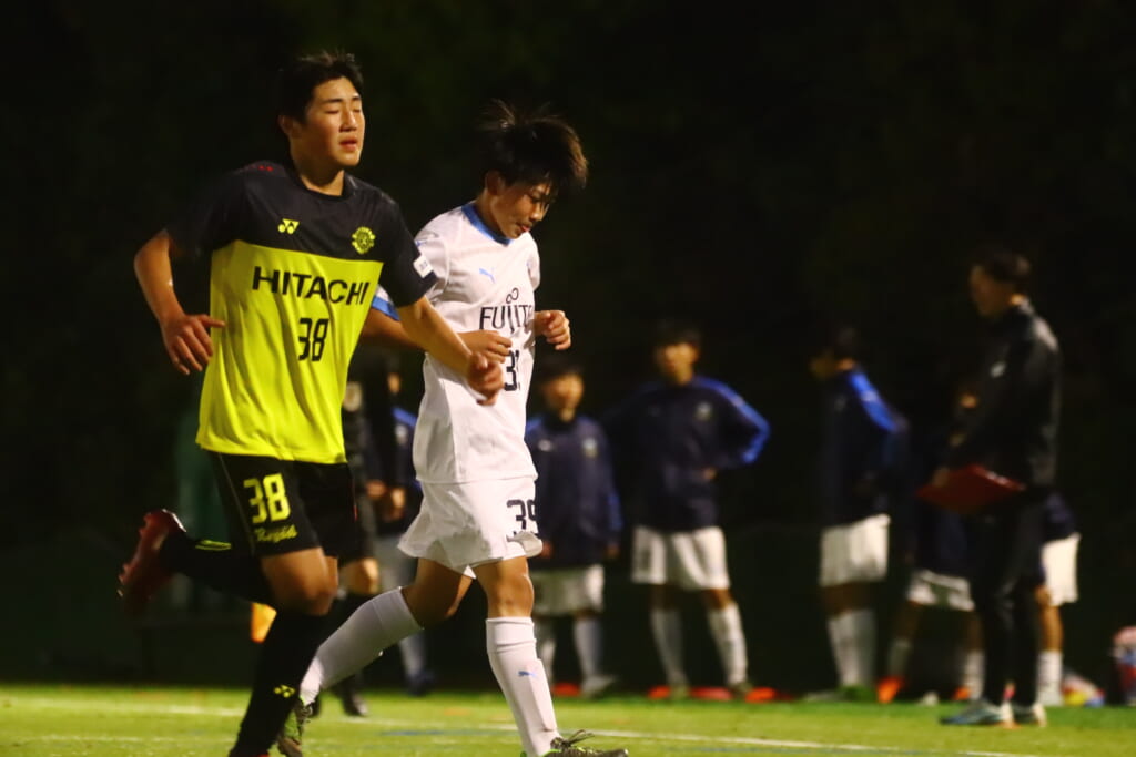 さらにフロンターレ生田は、佐野がうまく間で受け、高い位置への仕掛け。レイソルがカットしたところ、再びマイボールにし、中央で渡邉、徳武とつながり、徳武は浮き球のパスを出していきますが、シュートにはつながらず。