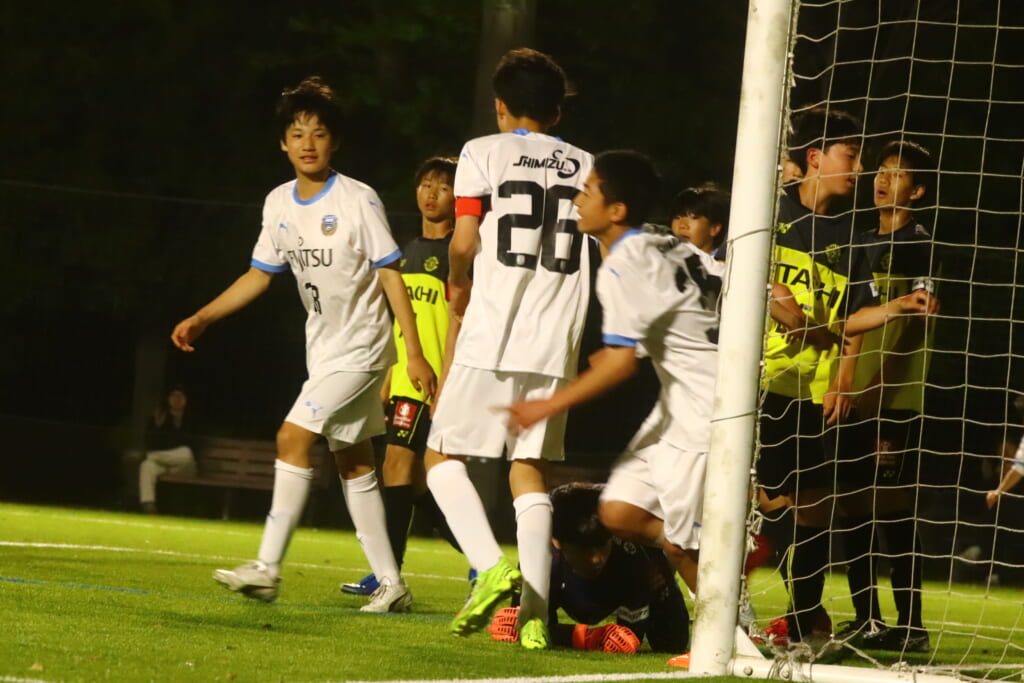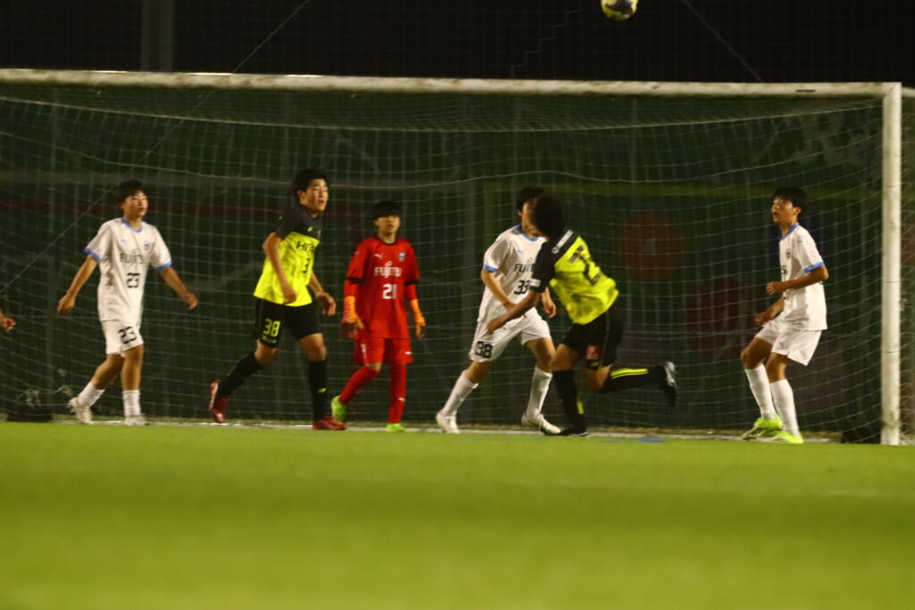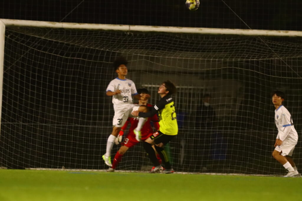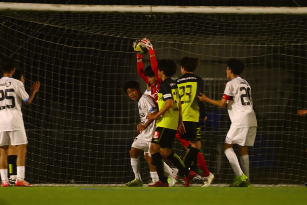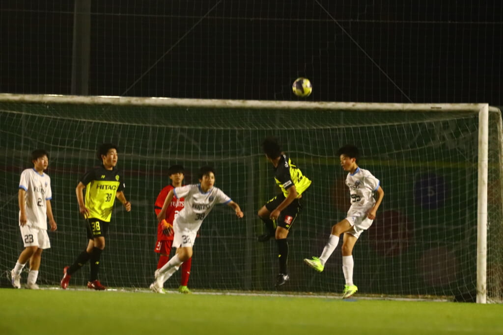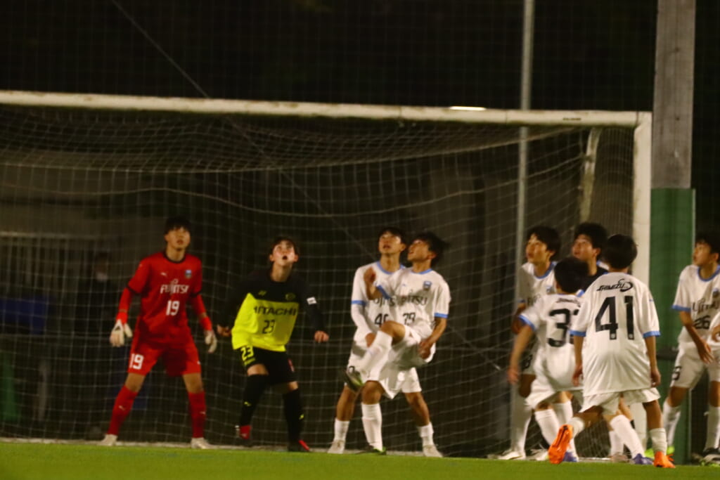 レイソルの左コーナーキックとなり、レイソルはショートコーナーを選択。セカンドボールも拾い、フロンターレ生田のエリア近くでプレーする時間をつくりますが、フロンターレ生田は粘り強くそれをしのいでいきます。
