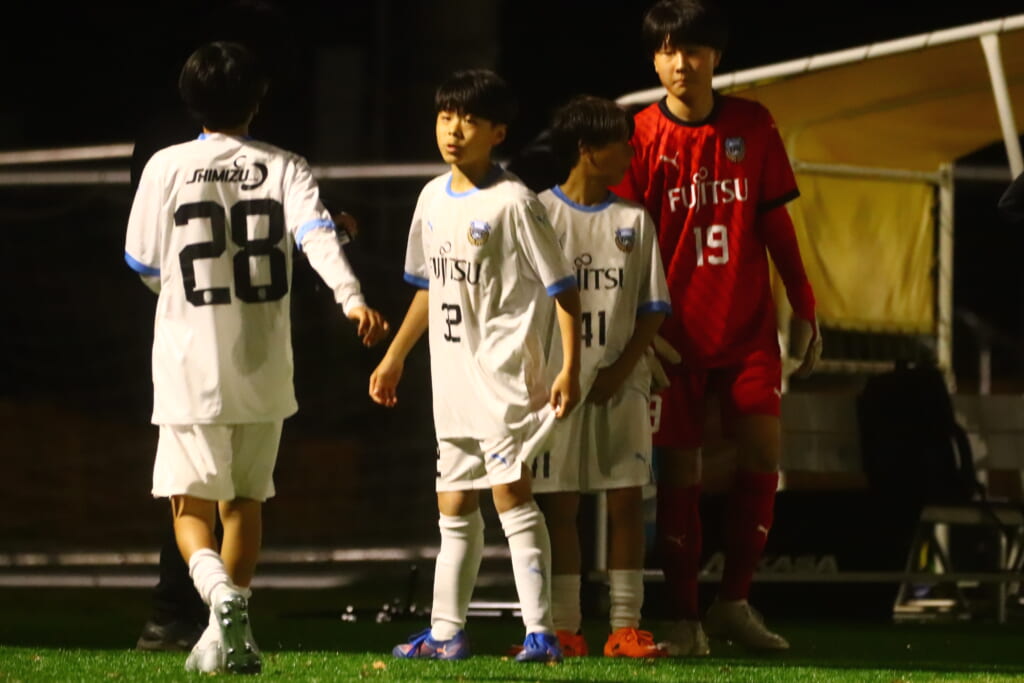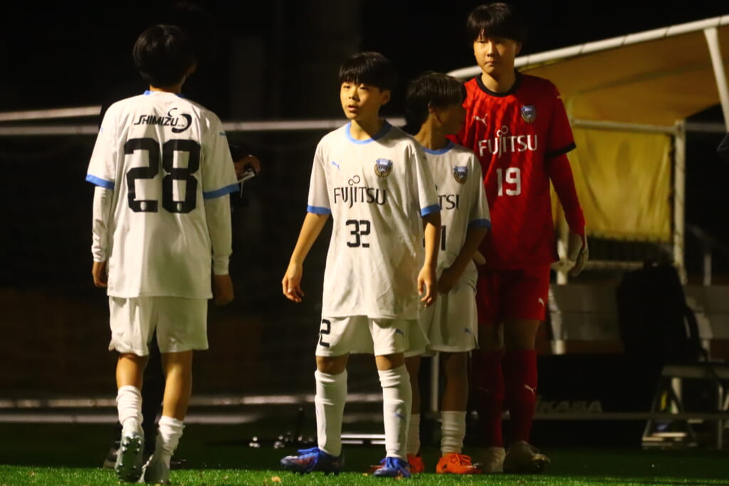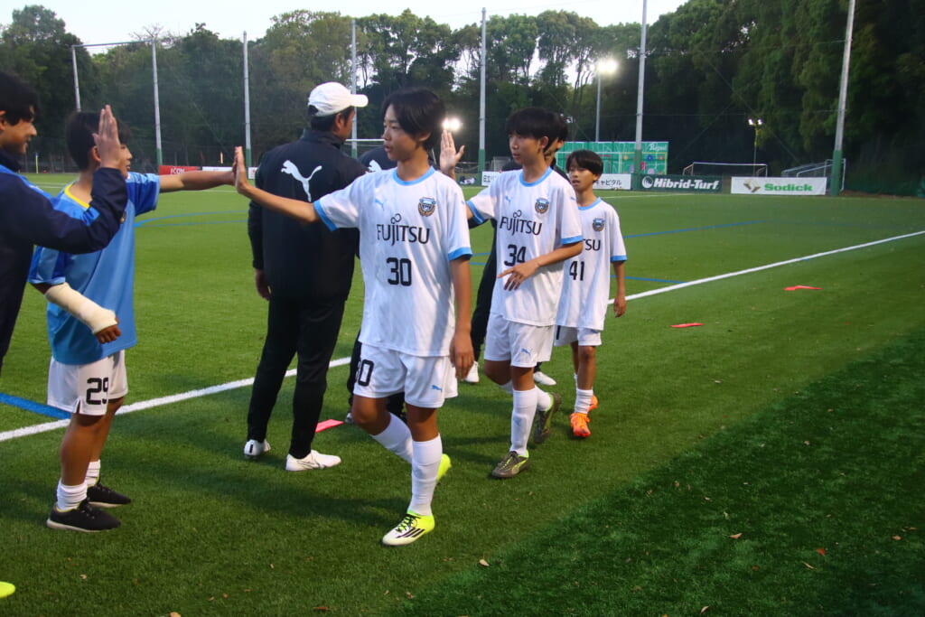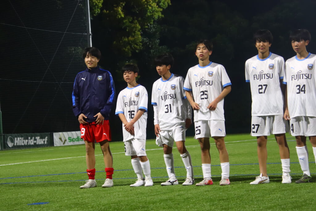 後半フロンターレ生田は、吉川、中森、徳武、小坂、青柳が下がり、19中内晴士、32安永唯人、28神宮司武生、関東ユース(U-15)サッカーリーグで途中出場した40田口陽音、1年生の41新堀葵。
