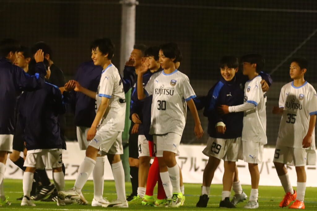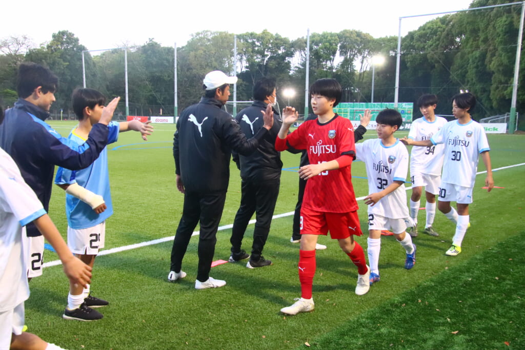 先制点はフロンターレ生田へ。大きな先制点にピッチの選手はもちろんのこと、ピッチ脇で見守っていた選手たちも歓喜の声をあげます。