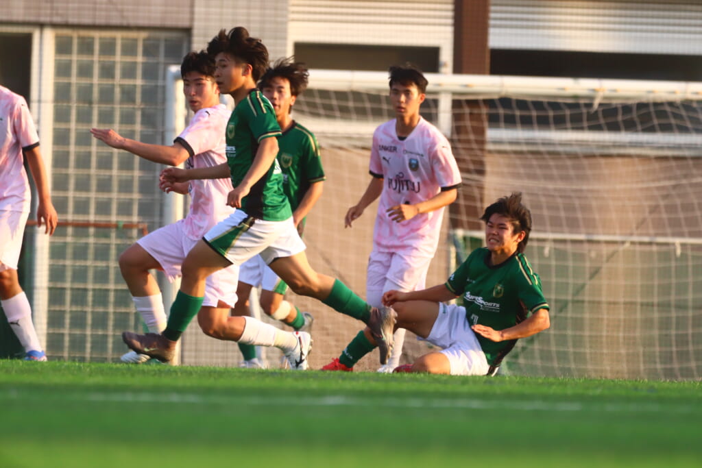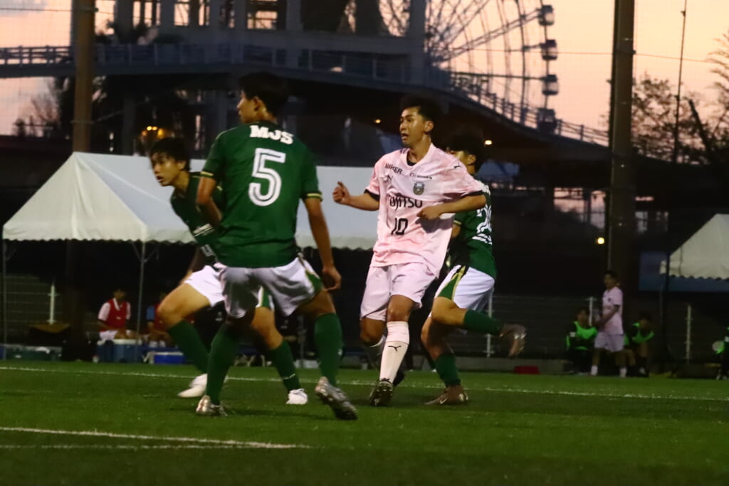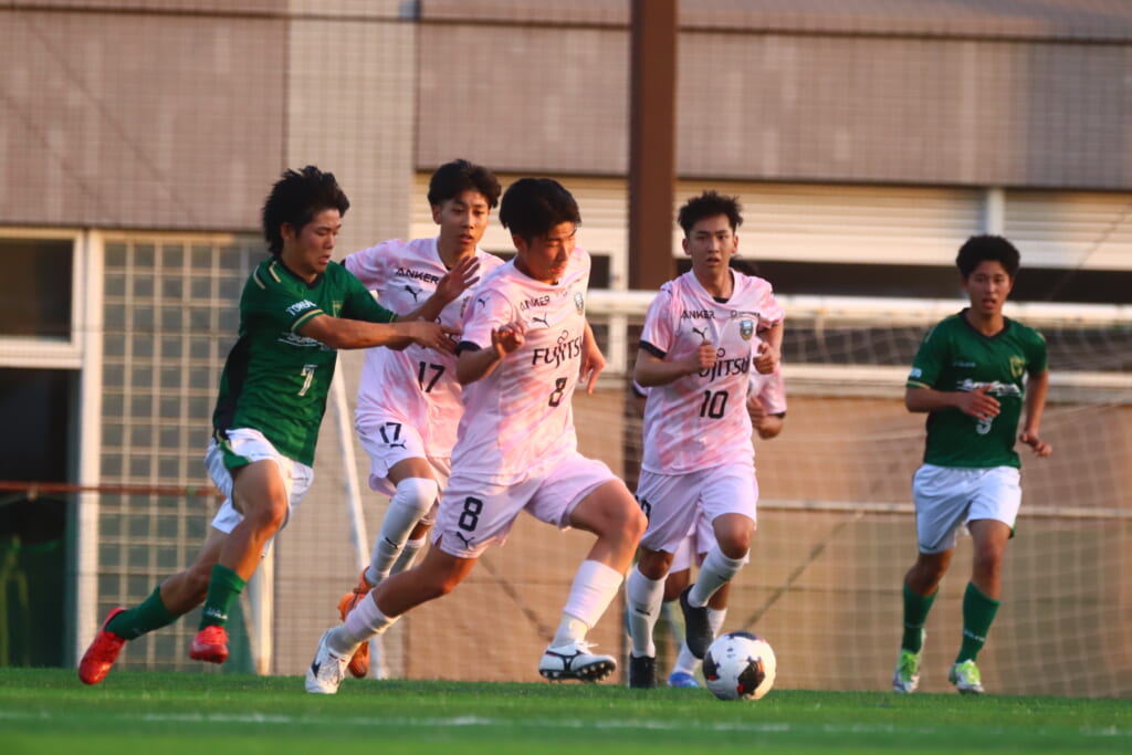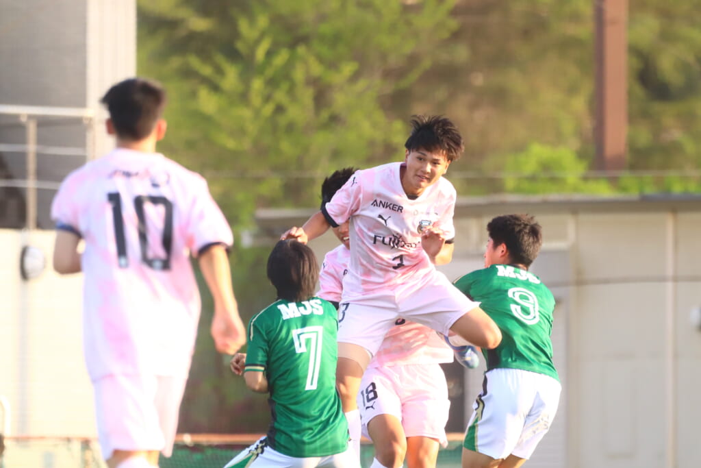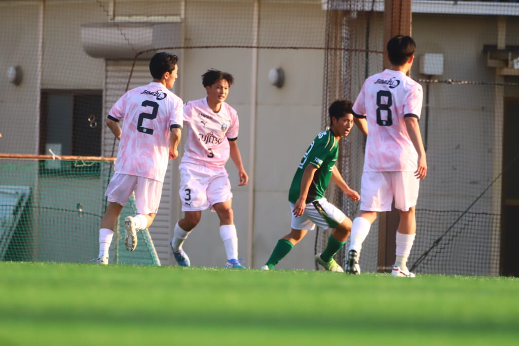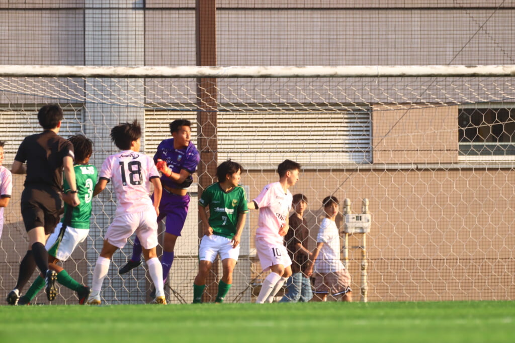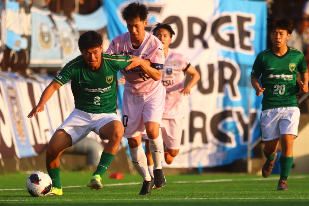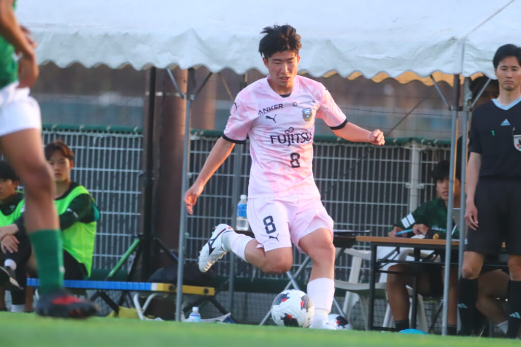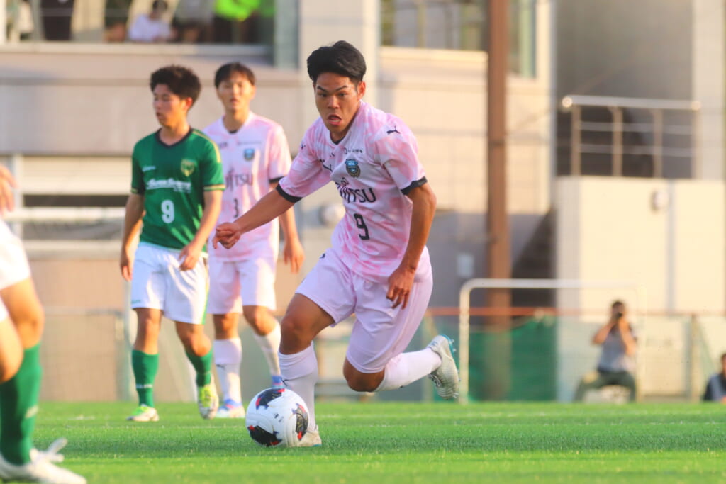 左サイドへ展開し、木下晴天や広瀬、原田がかかわって高い位置でつながり、フロンターレの陣内でプレーする時間をつくっていきますが、フロンターレもコンパクトに粘り強く対応。セカンドボールを拾った小川尋斗が左サイド、高い位置へ。攻撃へ持ち込もうとしていきます。