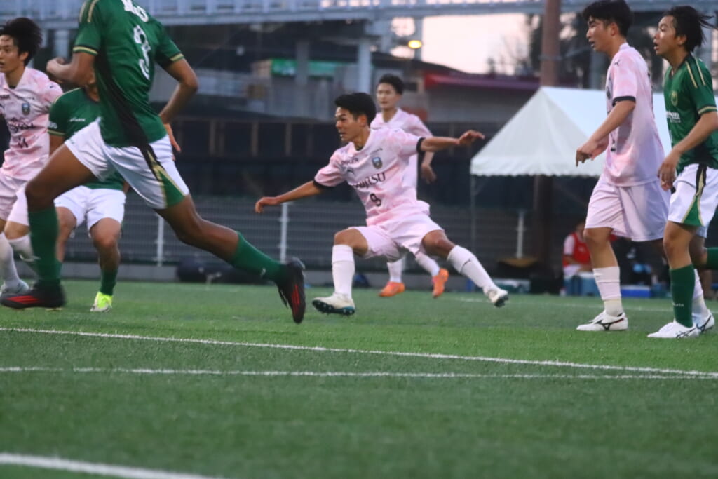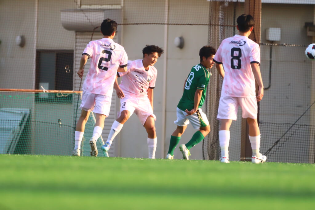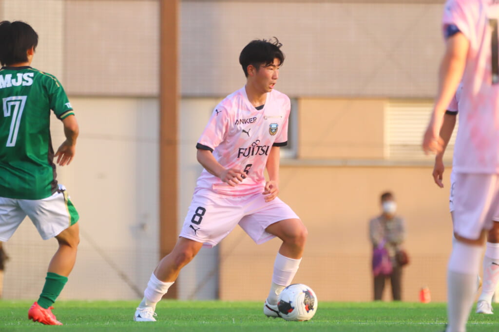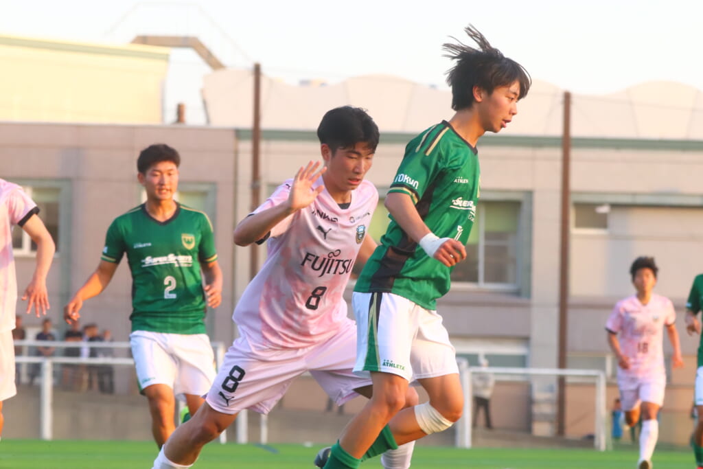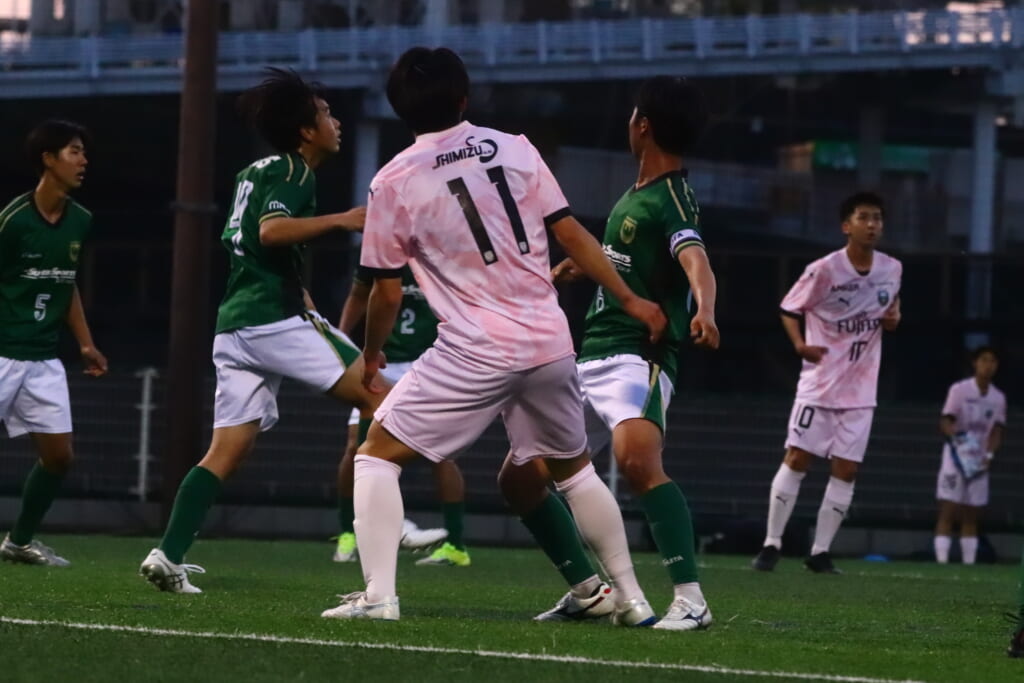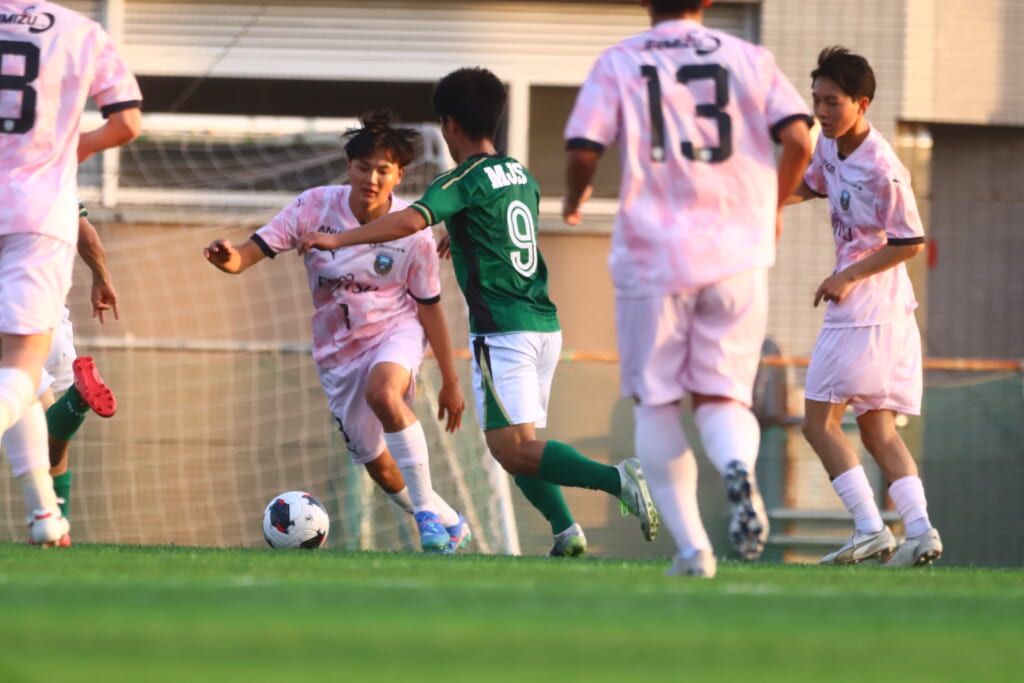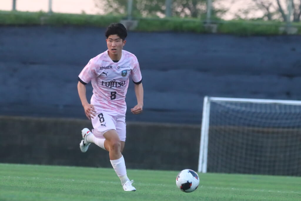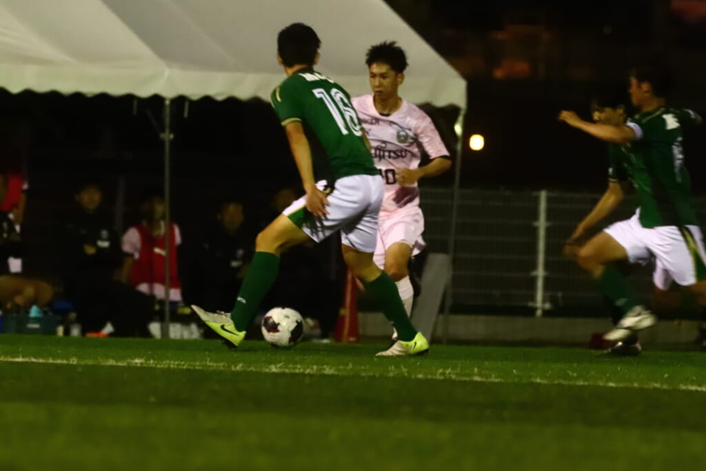 左サイドへ展開し、木下晴天や広瀬、原田がかかわって高い位置でつながり、フロンターレの陣内でプレーする時間をつくっていきますが、フロンターレもコンパクトに粘り強く対応。セカンドボールを拾った小川尋斗が左サイド、高い位置へ。攻撃へ持ち込もうとしていきます。