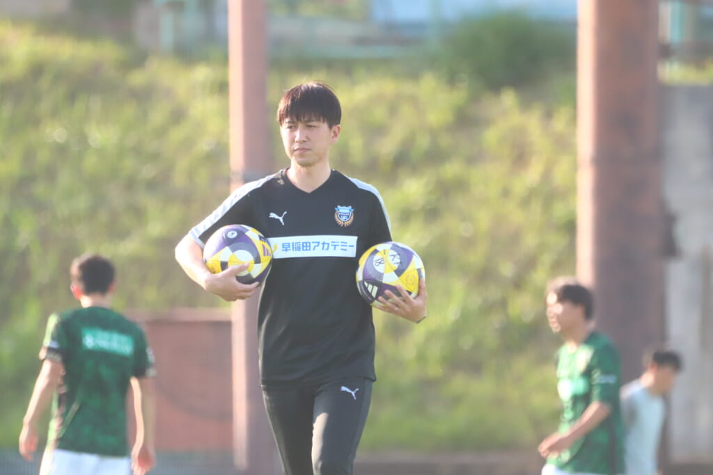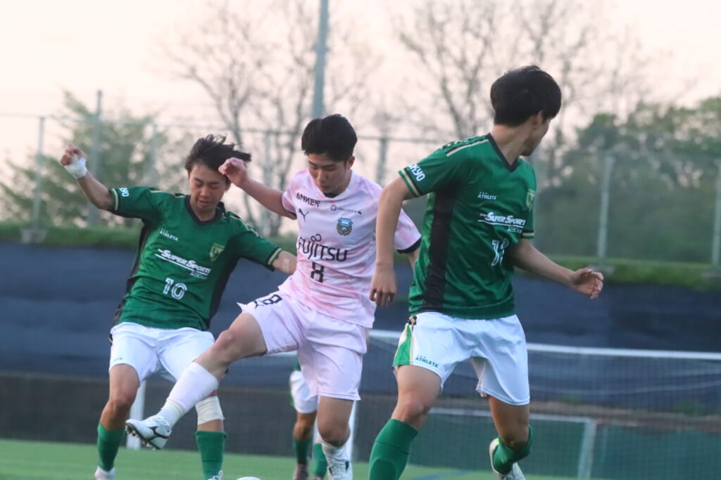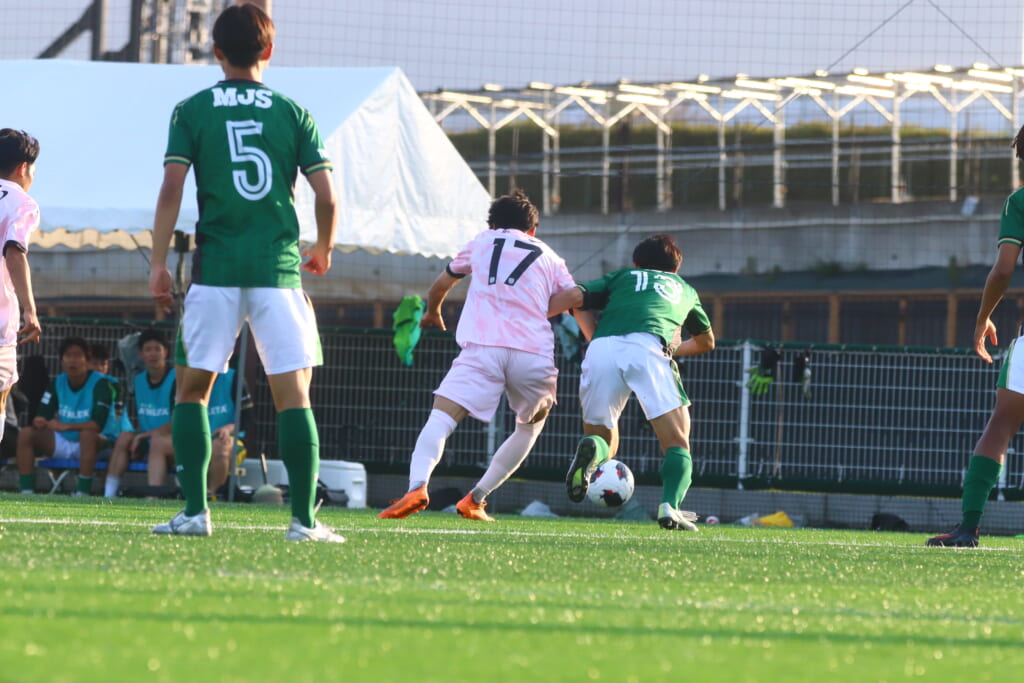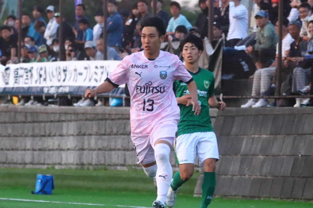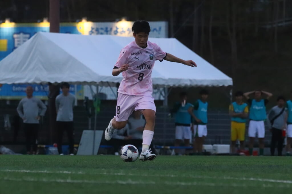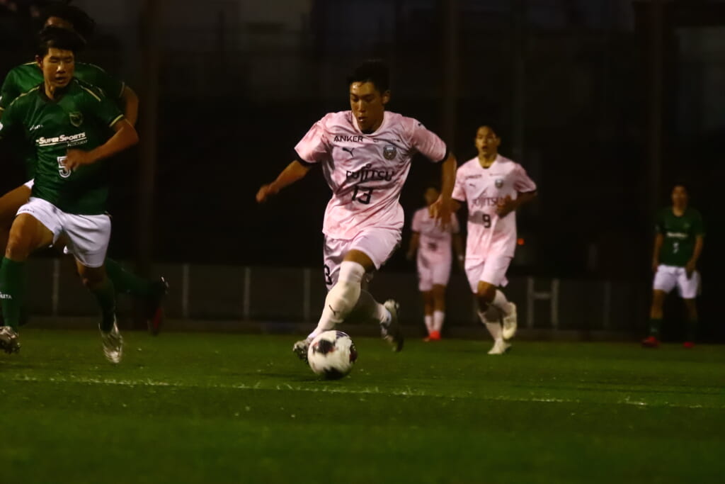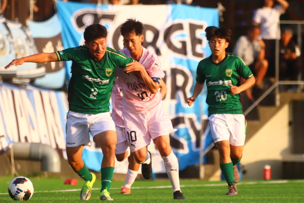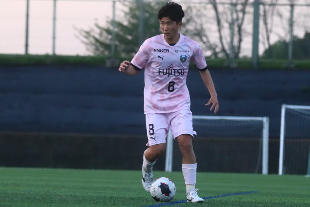 左サイドへ展開し、木下晴天や広瀬、原田がかかわって高い位置でつながり、フロンターレの陣内でプレーする時間をつくっていきますが、フロンターレもコンパクトに粘り強く対応。セカンドボールを拾った小川尋斗が左サイド、高い位置へ。攻撃へ持ち込もうとしていきます。