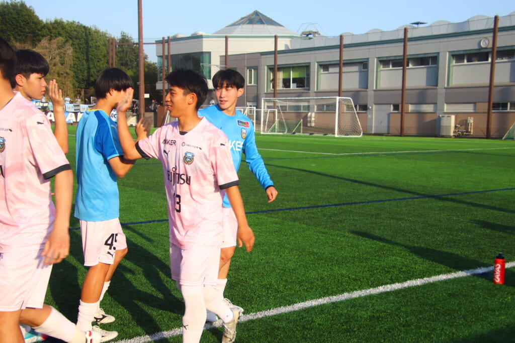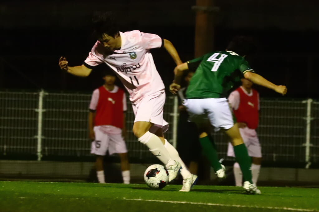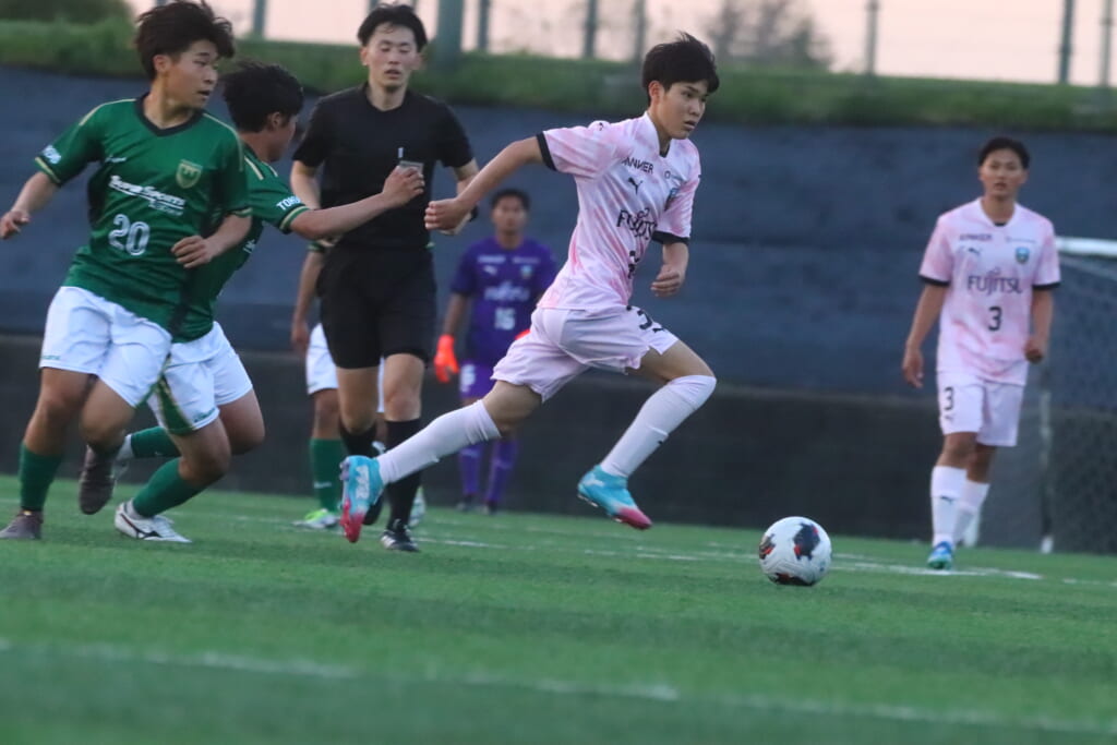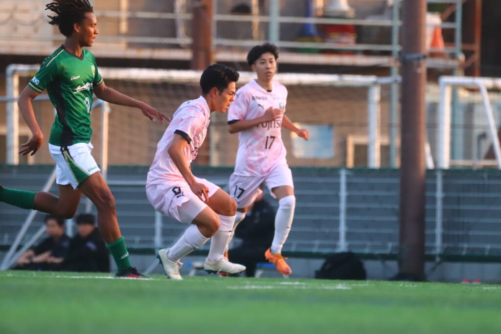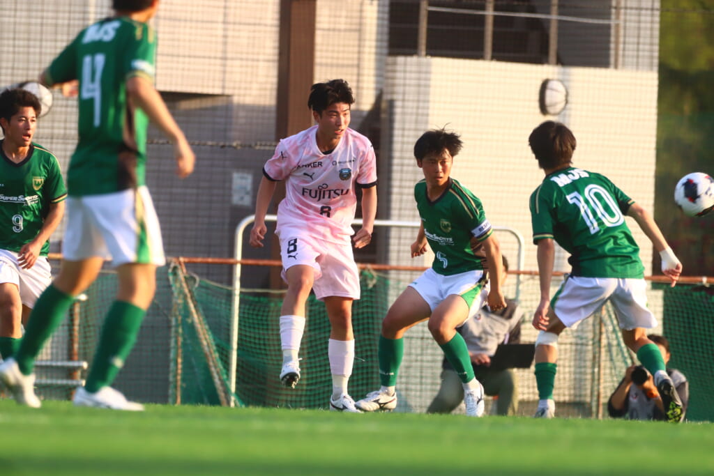 昌平高校も技術の高い選手が多く、ボールを握る力があるなか、ピッチでフロンターレらしいサッカーを展開。