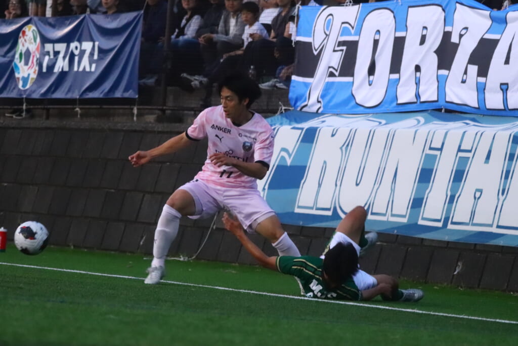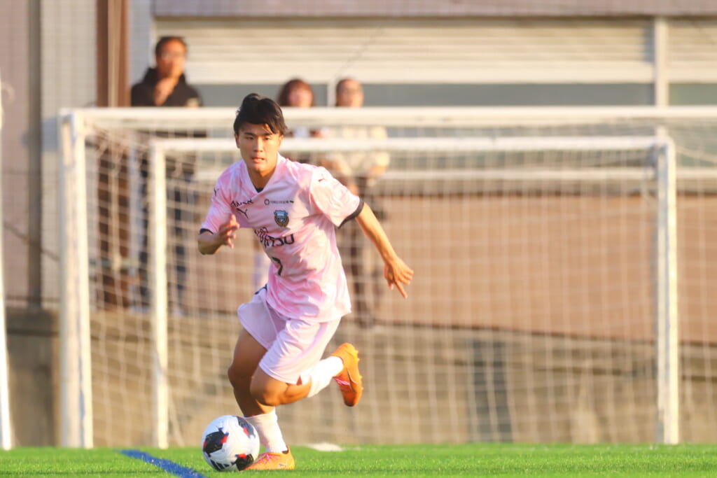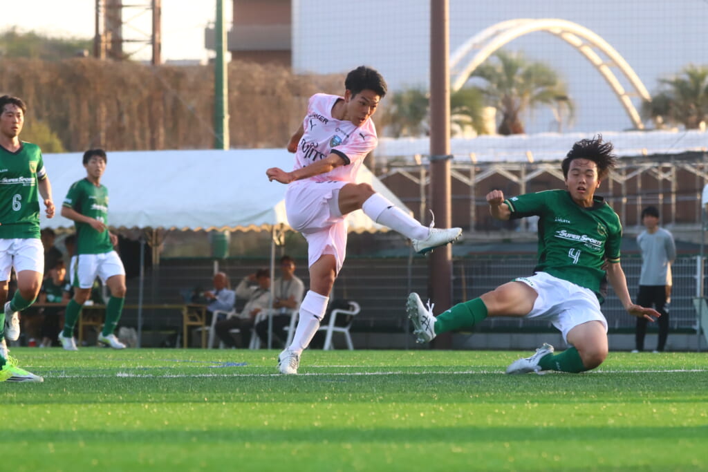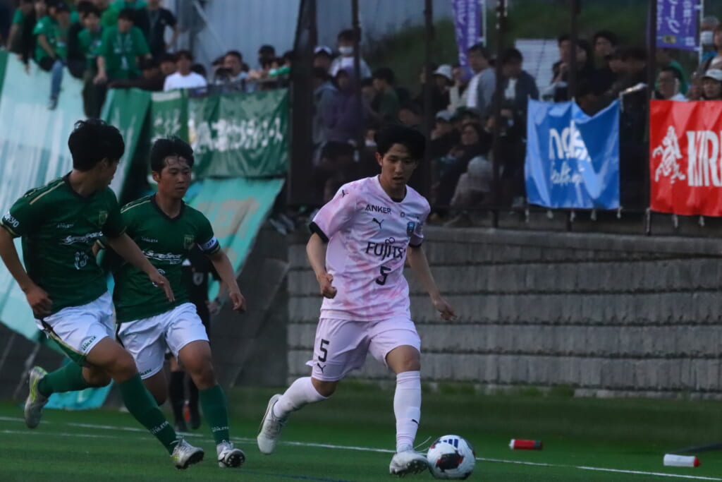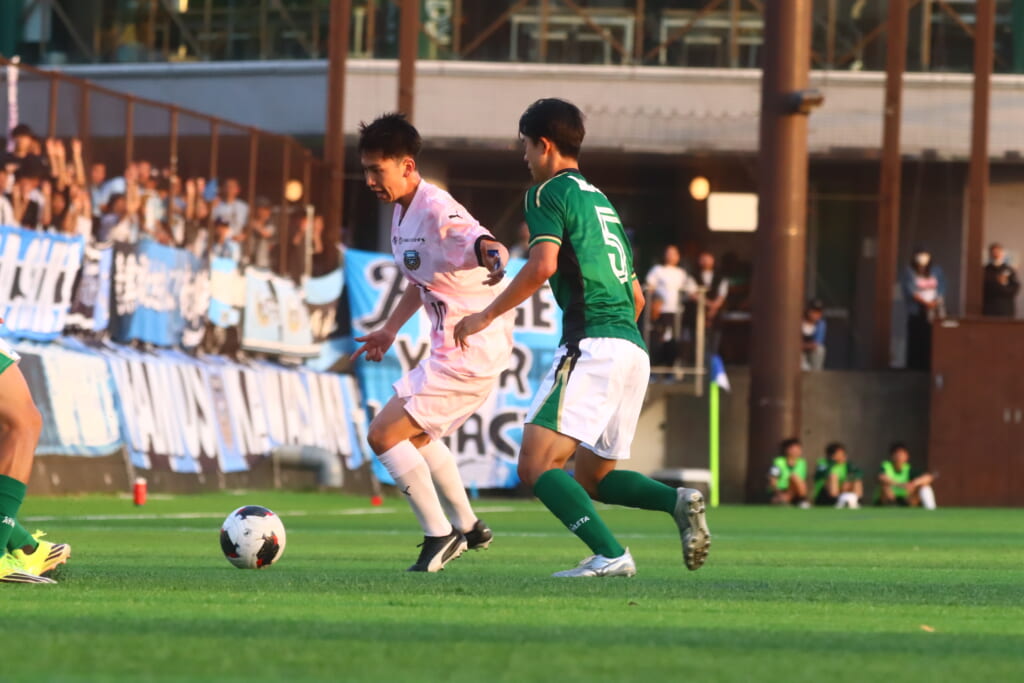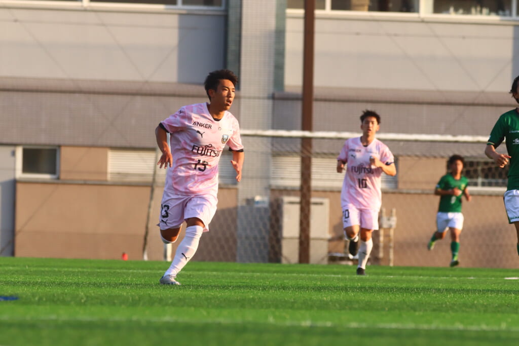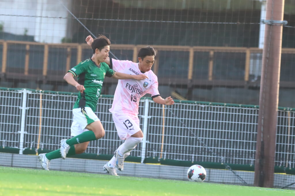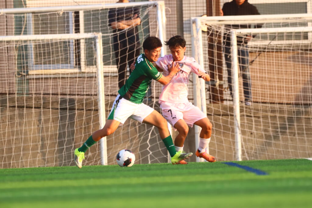 さらに右サイドで粘り強く中山が前に持ち込み、そのパスに古賀がエリア外右へ。しかし、フロンターレは小川尋斗、さらに山川が対応。