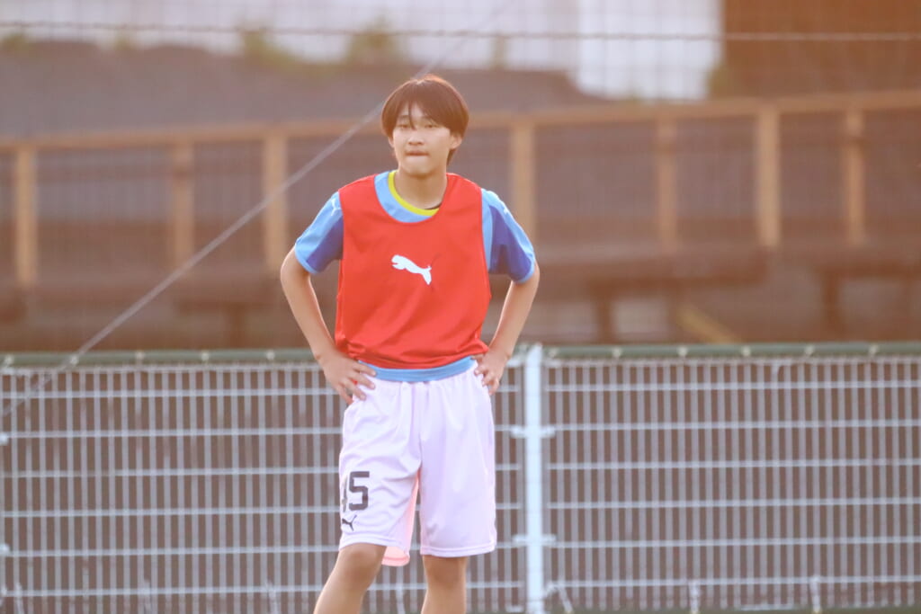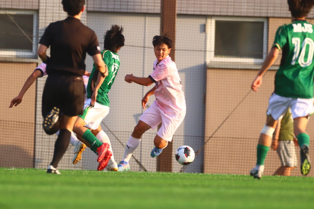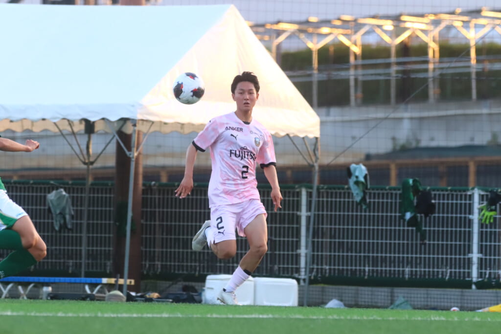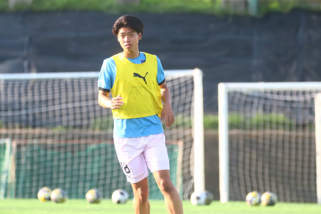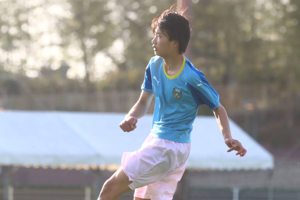 飲水タイムをはさみ、下がり目で受けた川村から三上とつながり、高い位置へ持ち込もうとするフロンターレに対し、出足の良さを見せ、ボールをカット。