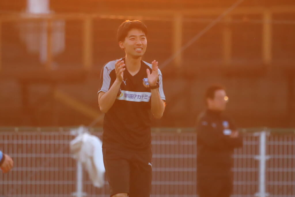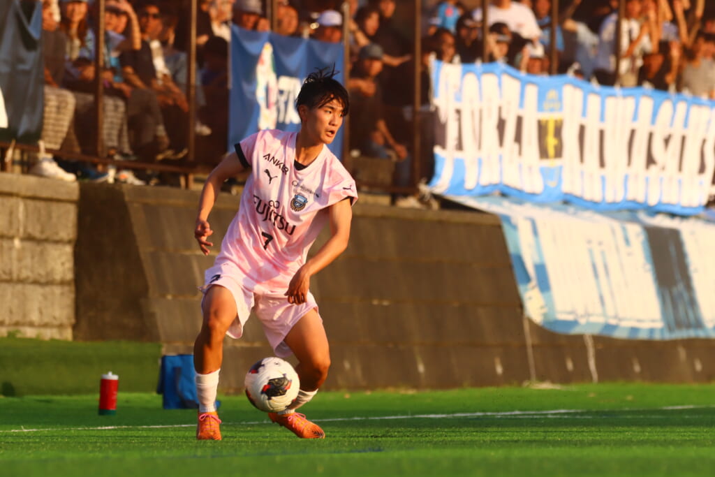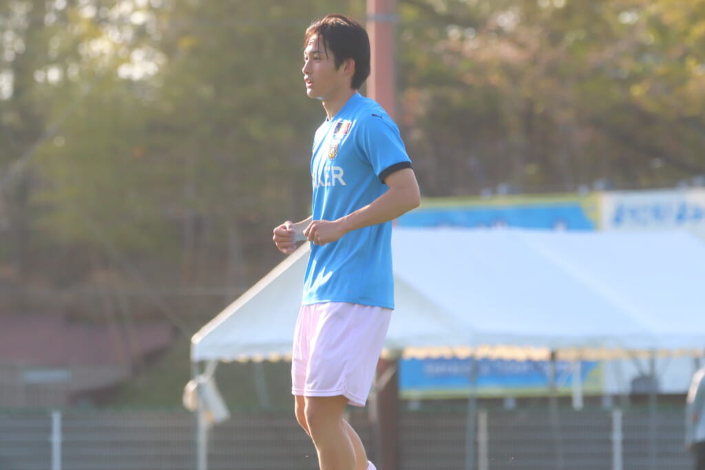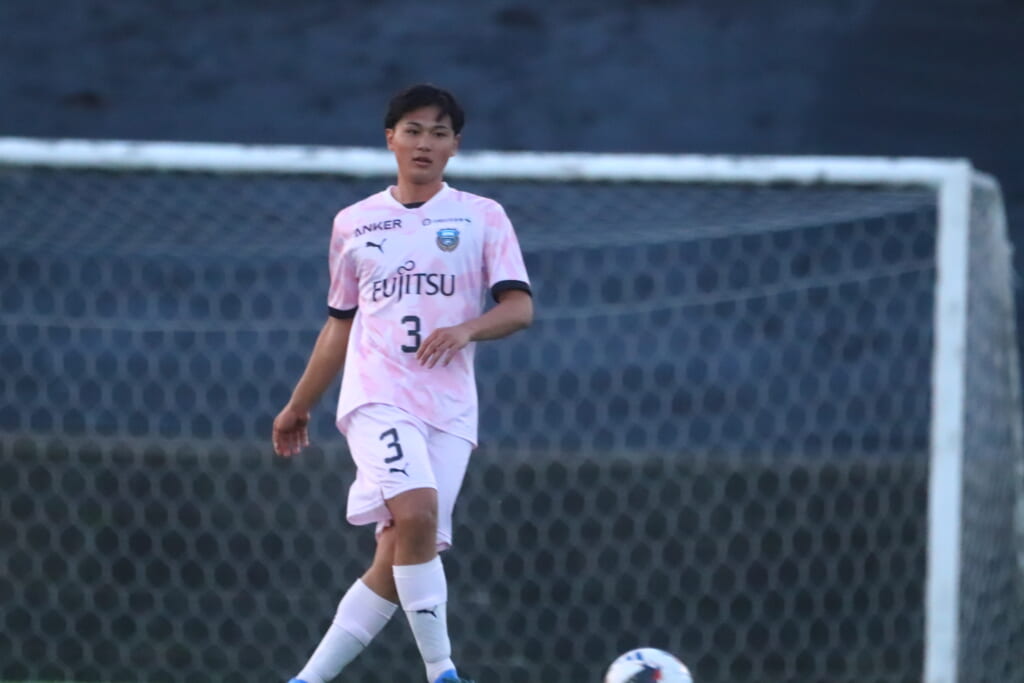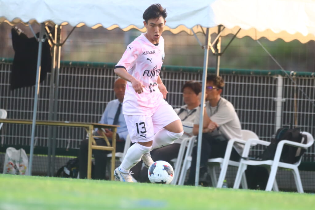 飲水タイムをはさみ、下がり目で受けた川村から三上とつながり、高い位置へ持ち込もうとするフロンターレに対し、出足の良さを見せ、ボールをカット。