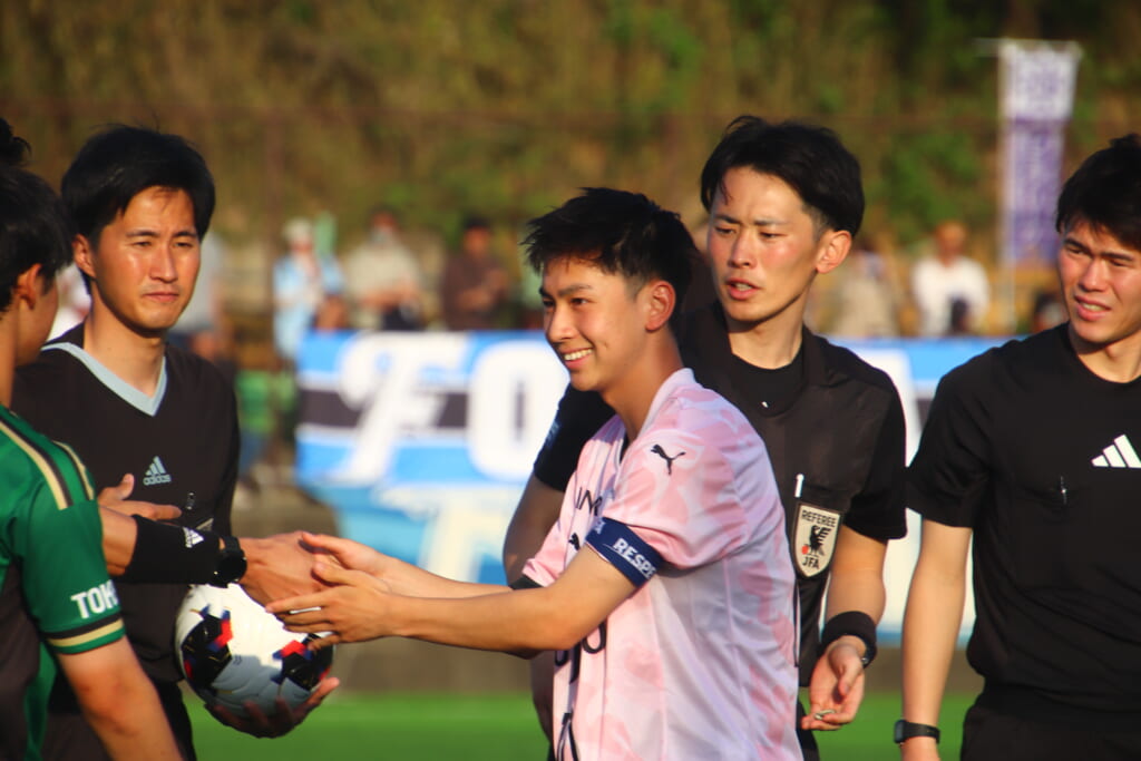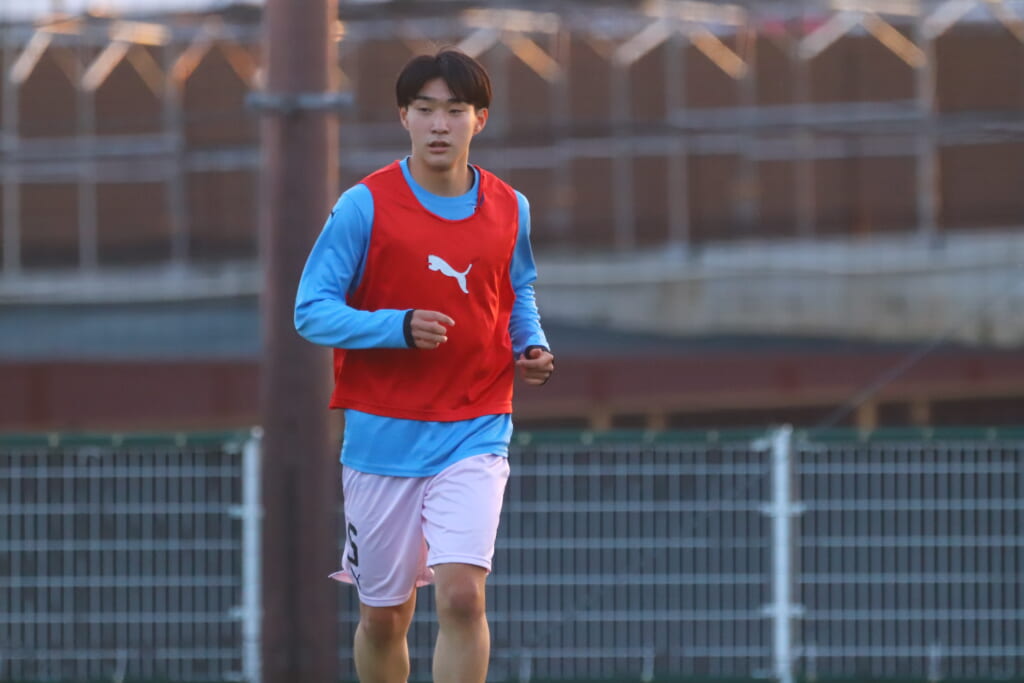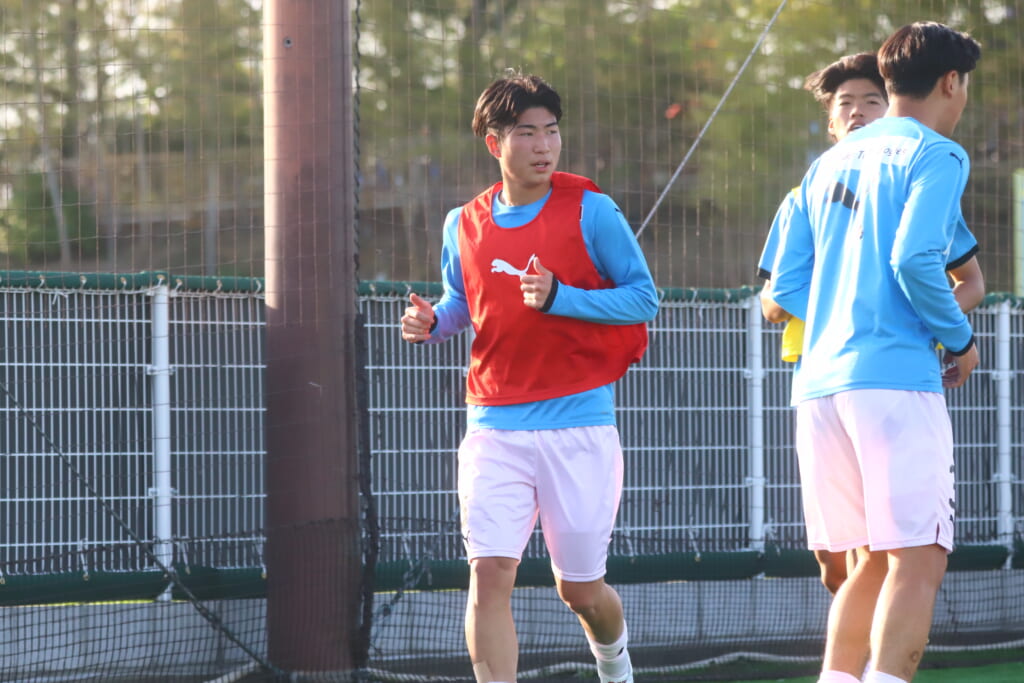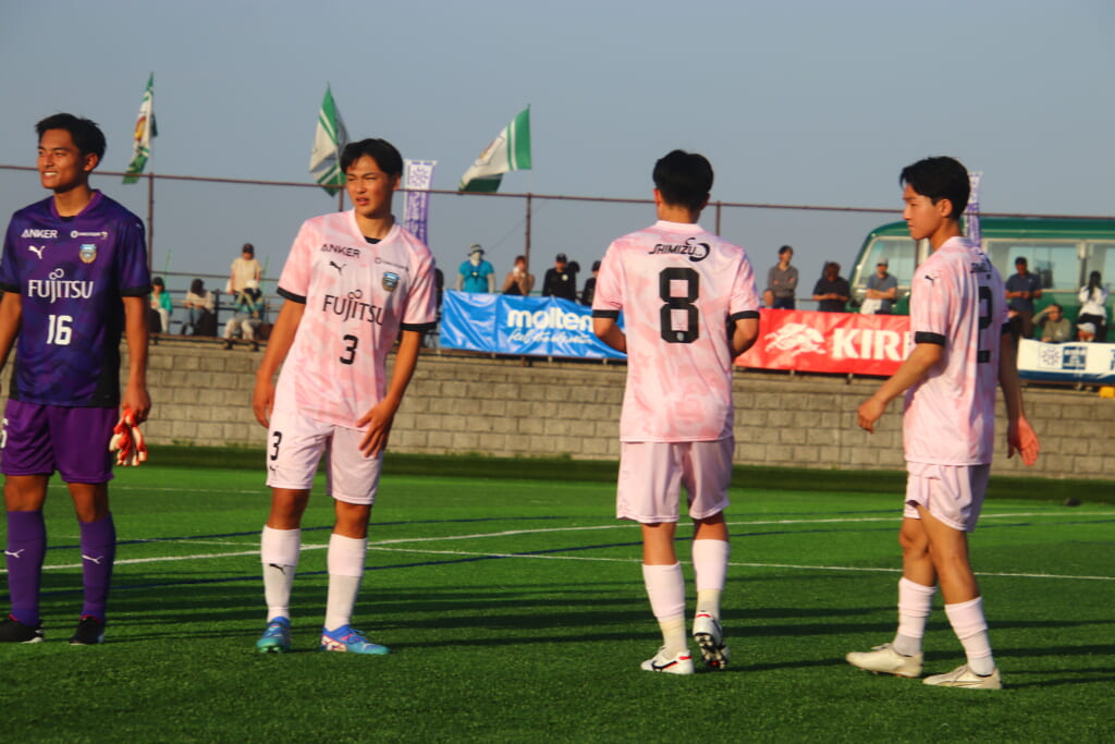 先発は、GK16岡本栞汰、最終ラインは右から7小川翔太、18笹倉拓真、3藤田明日翔、2山川陽平、ボランチは4今廣遥碧、8小川尋斗、右MFキャプテンの10木下勝正、左MF17木村風斗、前線には13三上瑛大、9川村求。