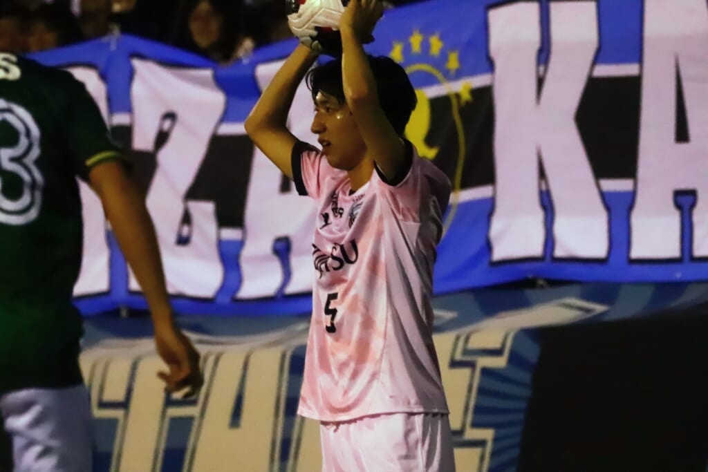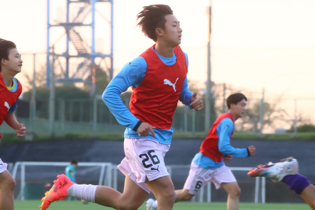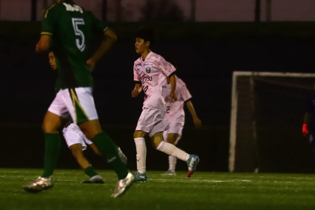 先発は、GK12名和優太朗、最終ラインは右から3カマラシェックセザール、5渡邉春来、4川本悠祐、ボランチはキャプテンの6下吉洸平、10広瀬怜音、右に13中山太輝、左に2原田爽潤、2シャドーに20若月蓮、7木下晴天、前線には9古賀大雅。