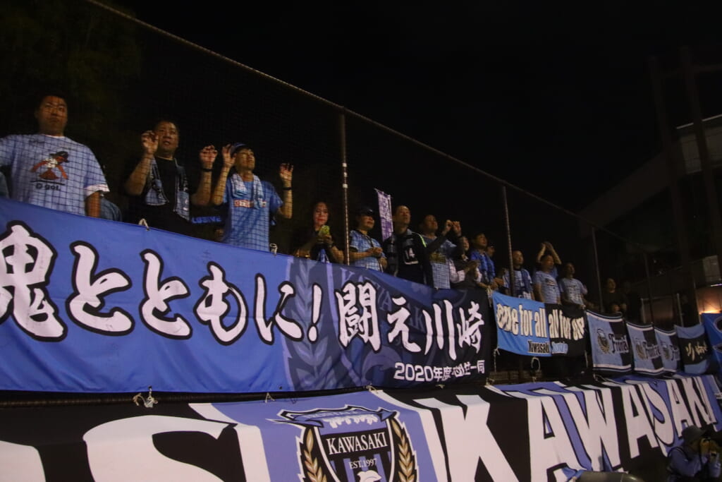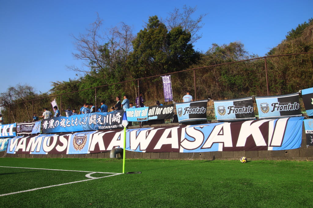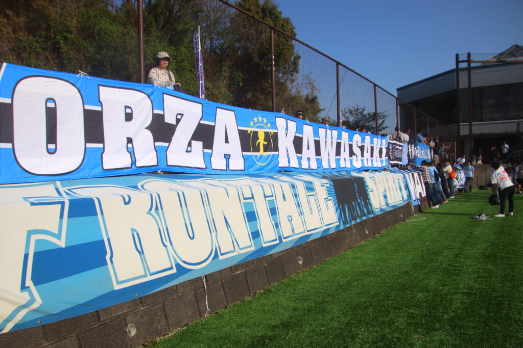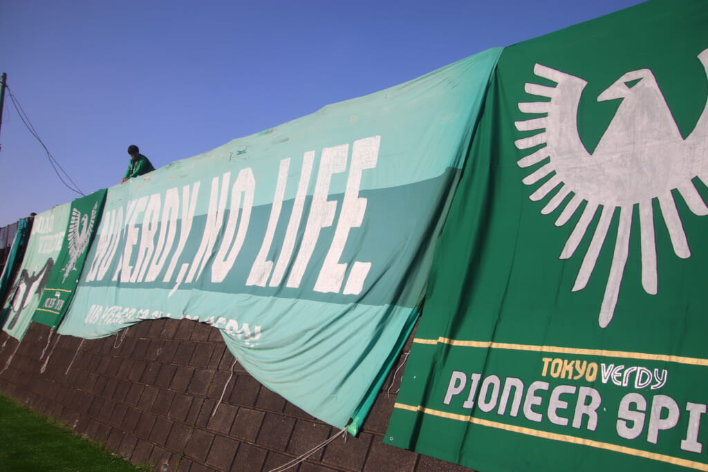 フロンターレは青。ヴェルディは緑。それぞれのチームカラーの幕を出し、チャントやコールで選手たちを励ます。