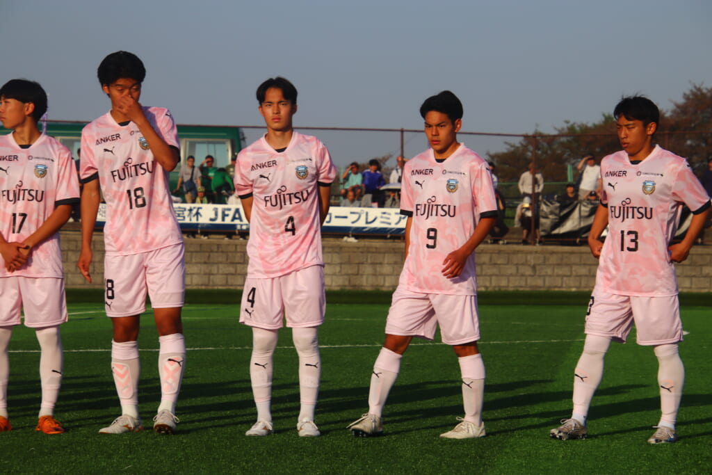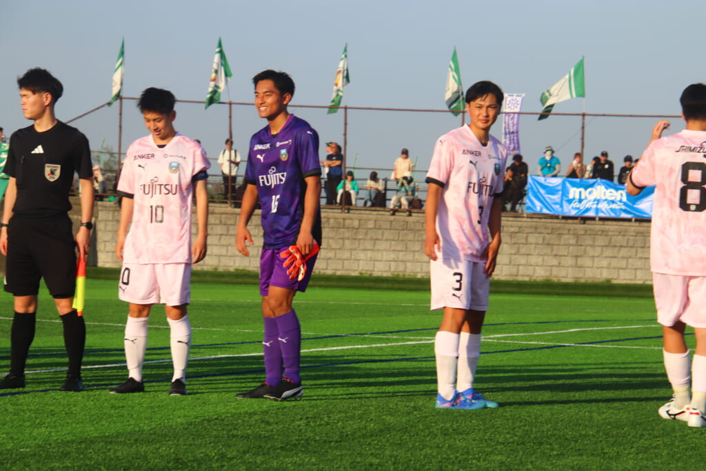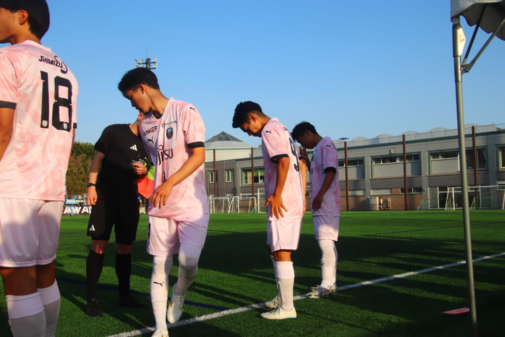 フロンターレの先発:16岡本栞汰 7小川翔太 18笹倉拓真 3藤田明日翔 2山川陽平 4今廣遥碧 8小川尋斗 10木下勝正(c) 17木村風斗 13三上瑛大 9川村求