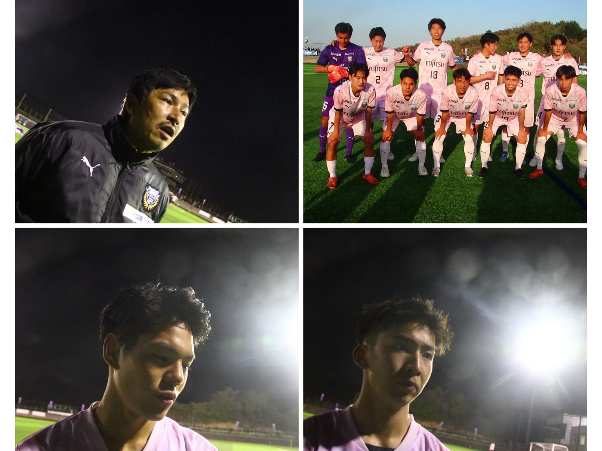 試合後に森勇介監督と、同点ゴールを決めたFW9川村求、一時勝ち越しとなるゴールを決めたキャプテンのMF10木下勝正に話を聞きました。