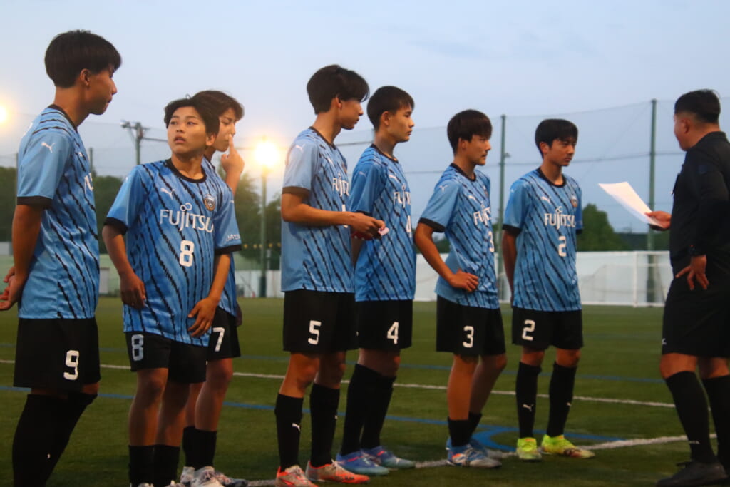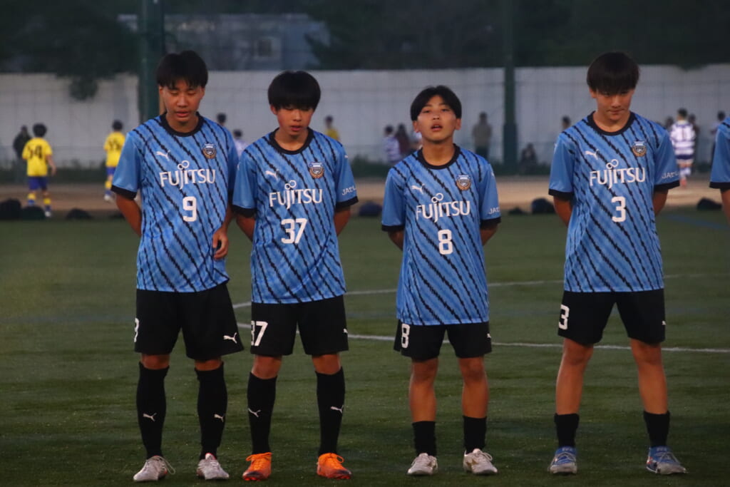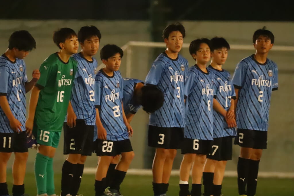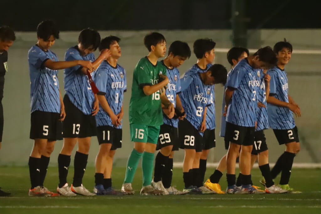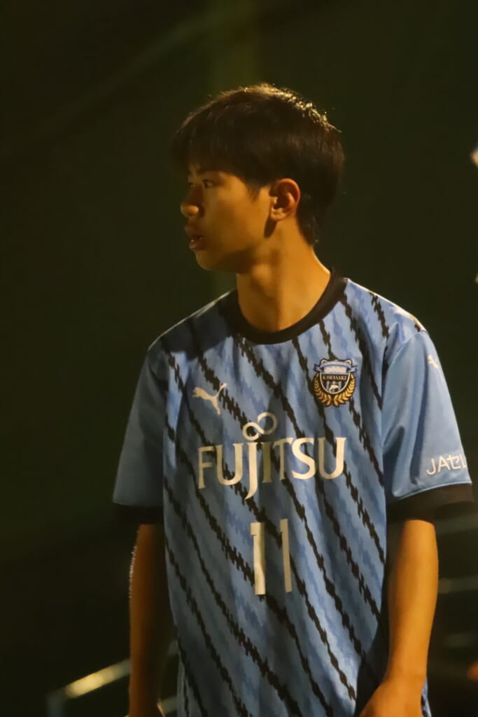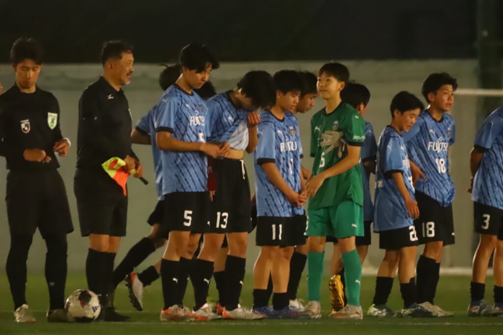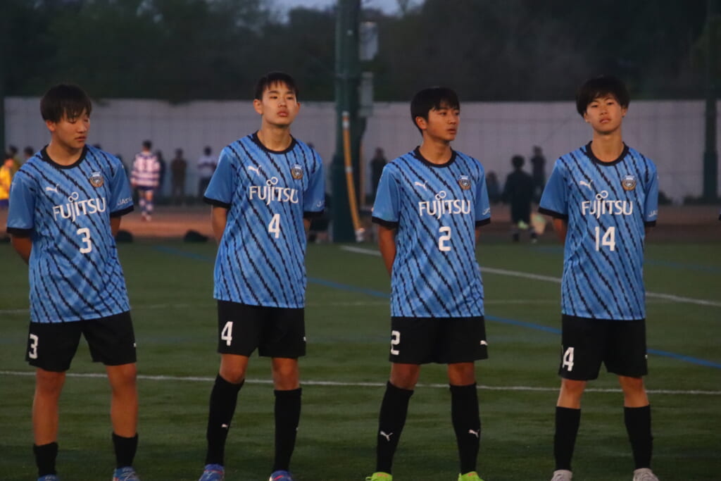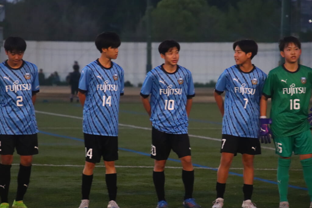 フロンターレ等々力の先発:16酒寄壮 2久村航大 5渡部朝陽(c) 4西川諒 3梶優翔 14時松隼跳 7我妻光 10大寺楓真 8永田怜大 37岩田陸叶 9荻原光惺
