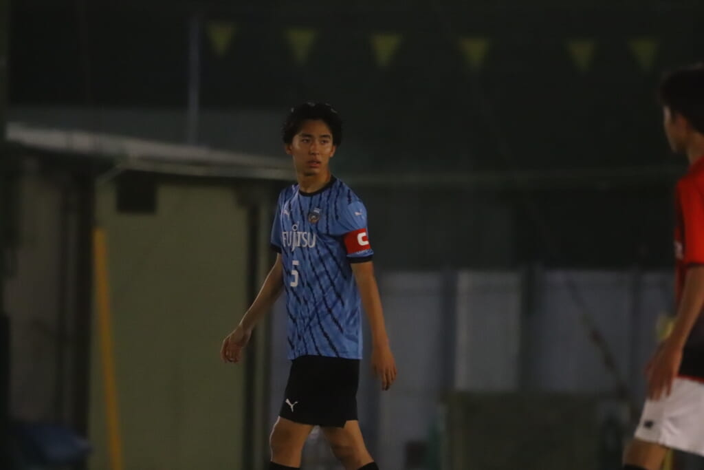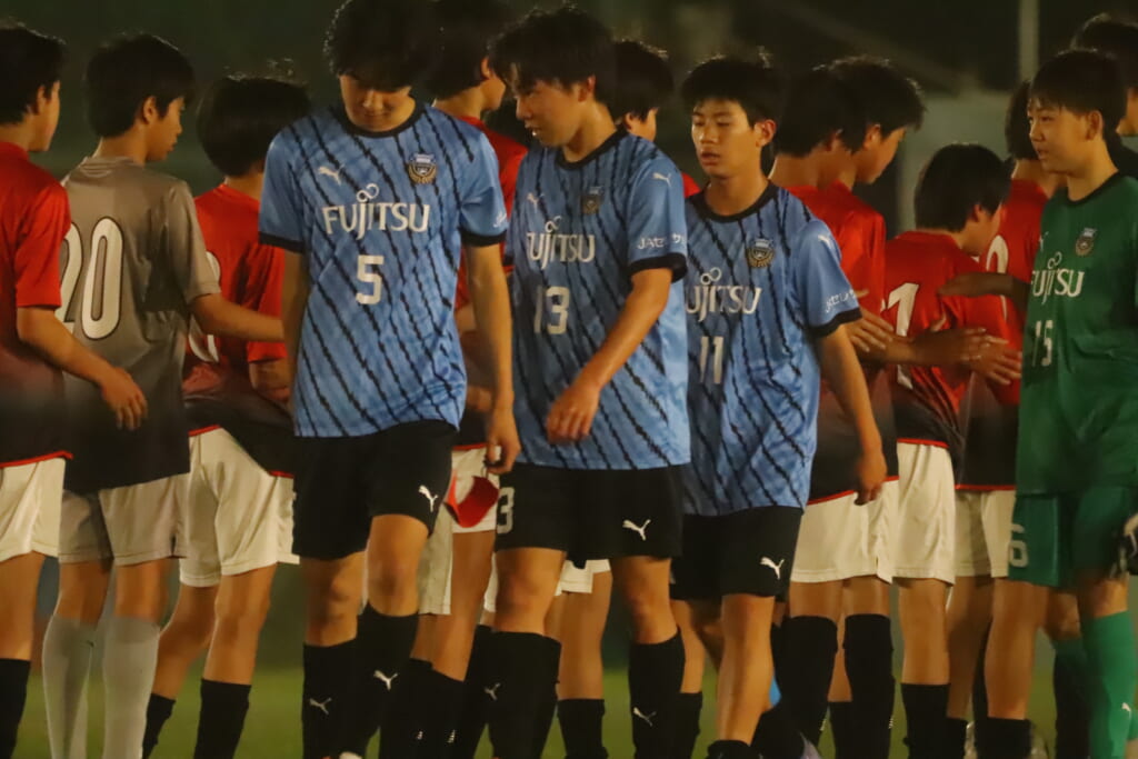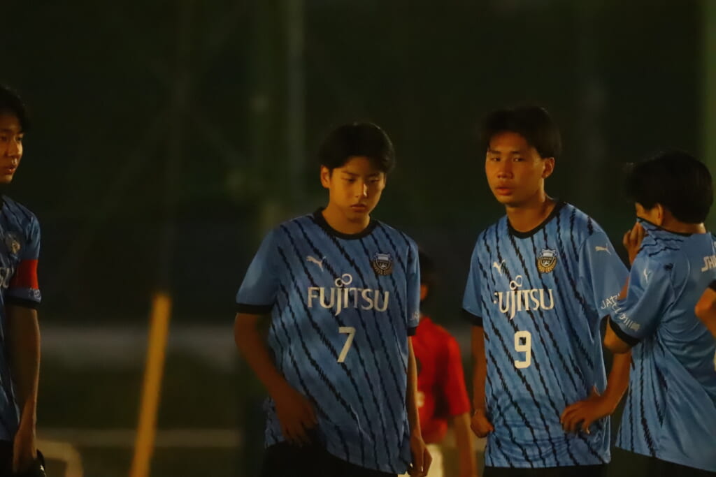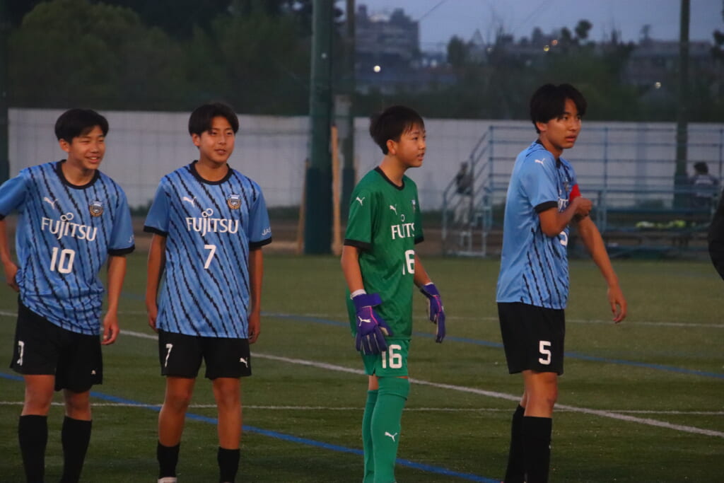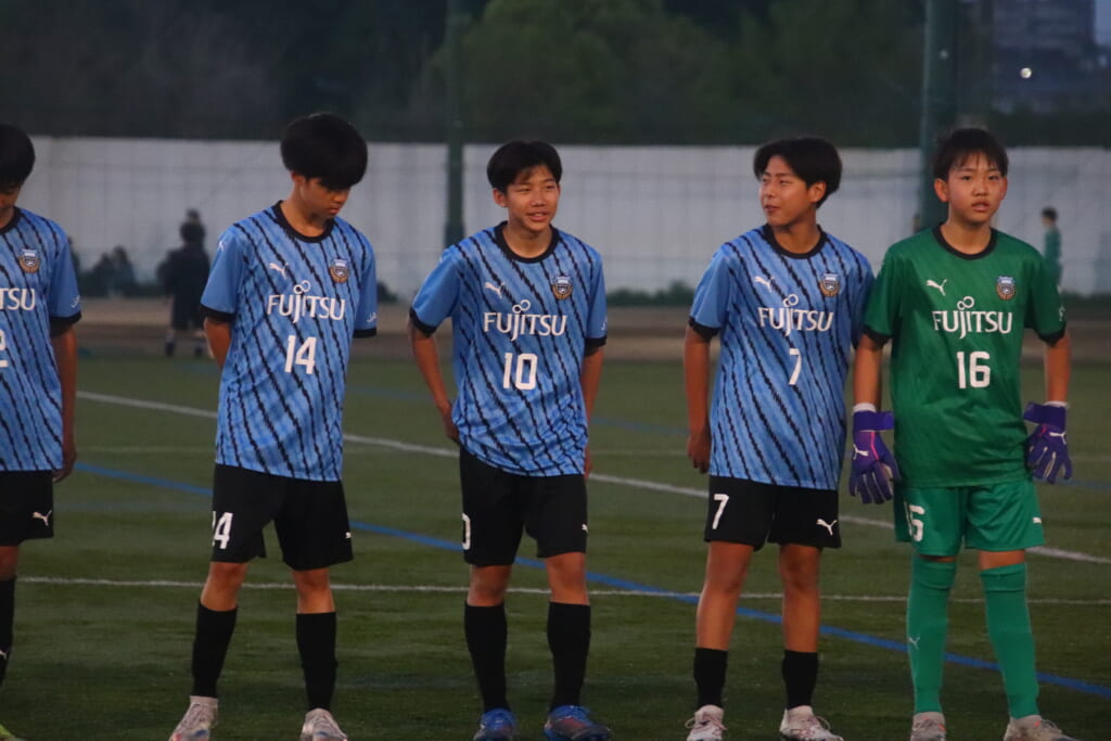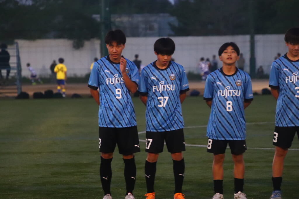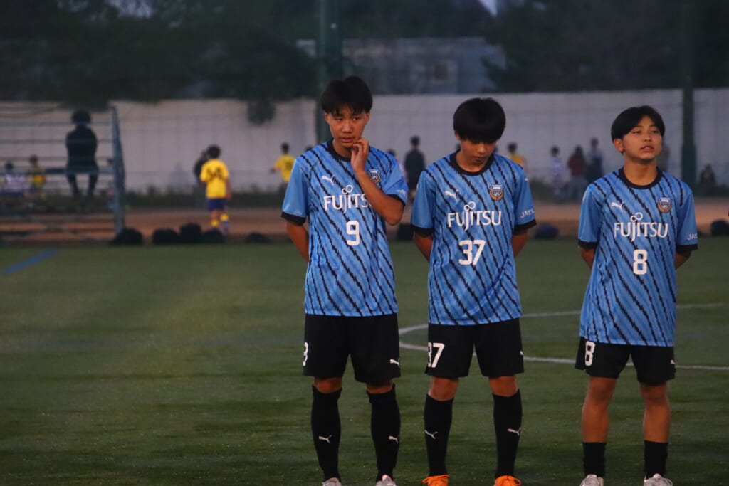 フロンターレ等々力の先発:16酒寄壮 2久村航大 5渡部朝陽(c) 4西川諒 3梶優翔 14時松隼跳 7我妻光 10大寺楓真 8永田怜大 37岩田陸叶 9荻原光惺