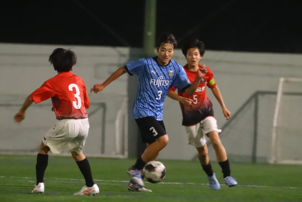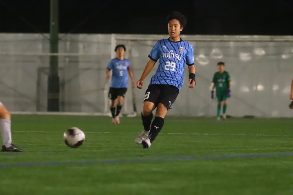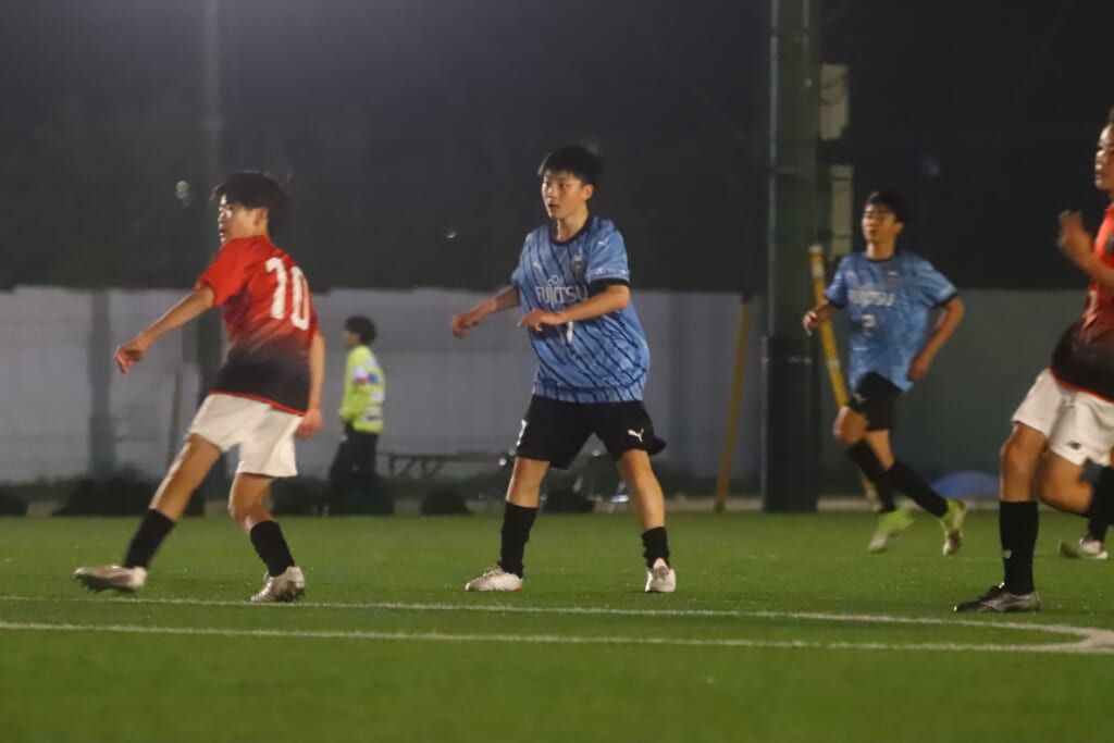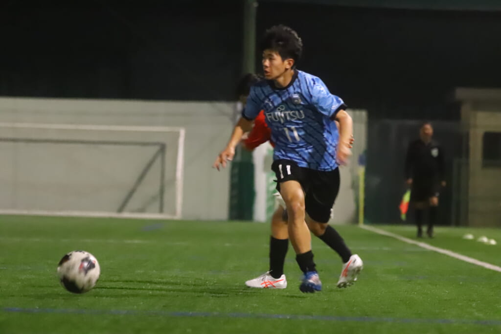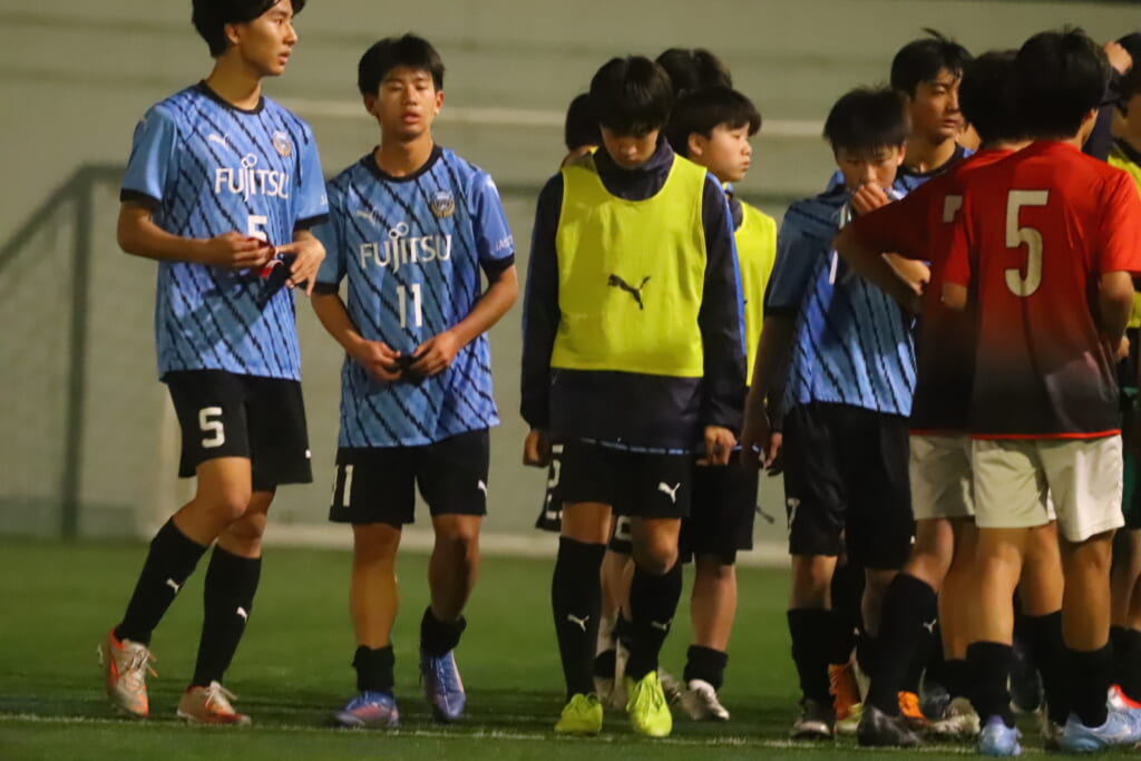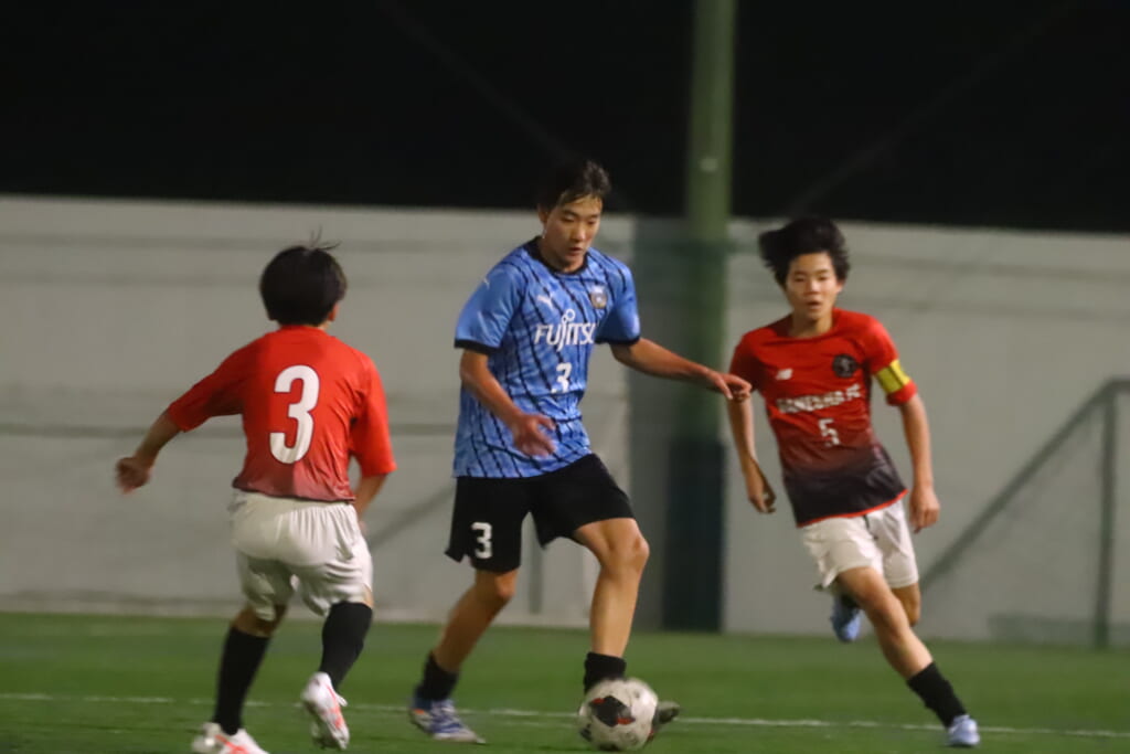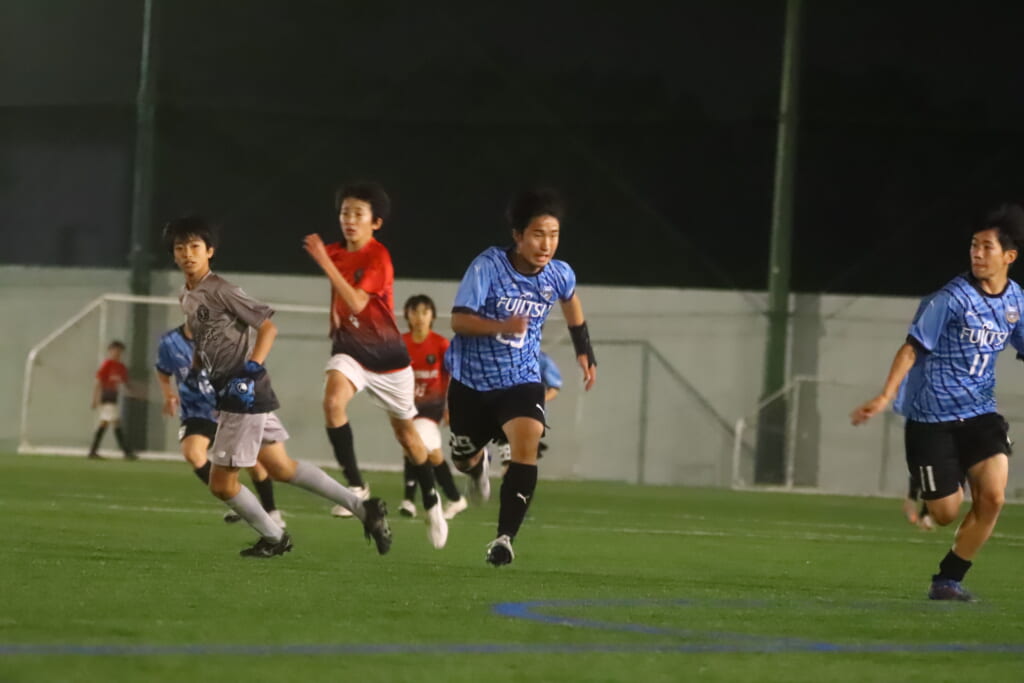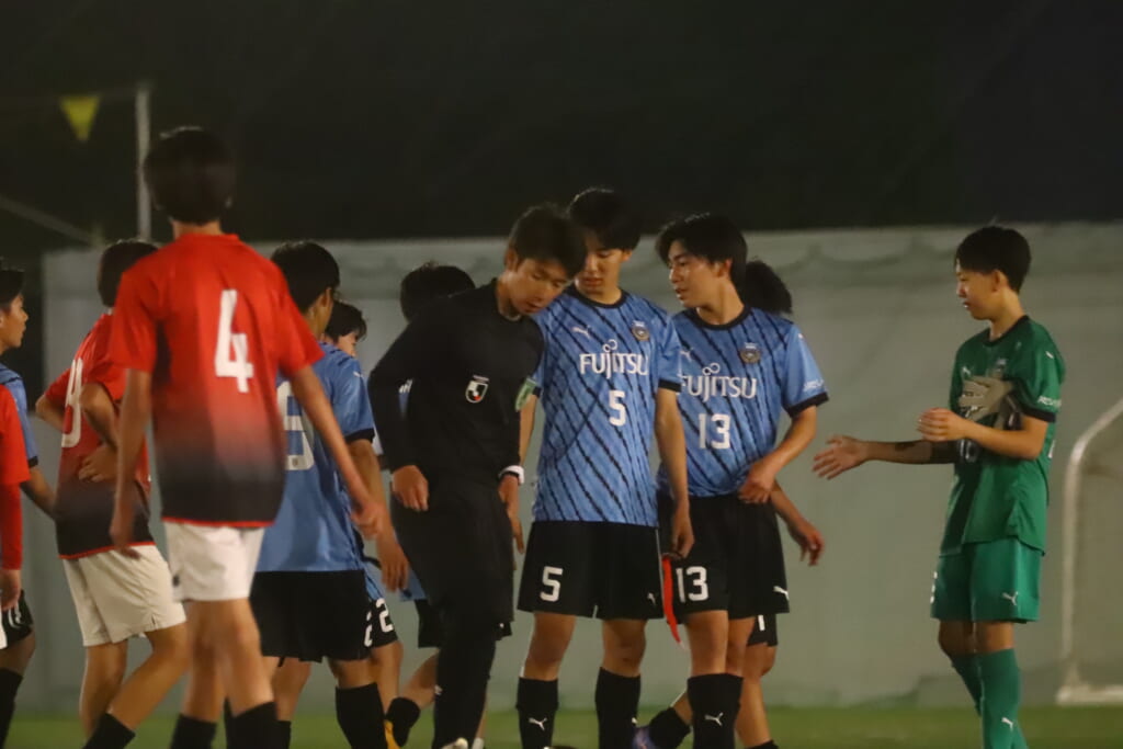 フロンターレ等々力の先発:16酒寄壮 2久村航大 5渡部朝陽(c) 4西川諒 3梶優翔 14時松隼跳 7我妻光 10大寺楓真 8永田怜大 37岩田陸叶 9荻原光惺