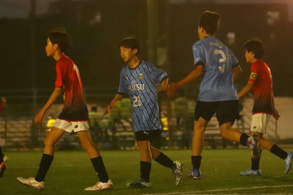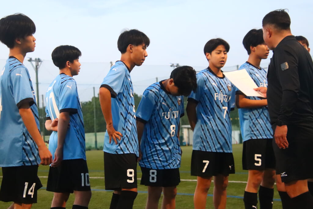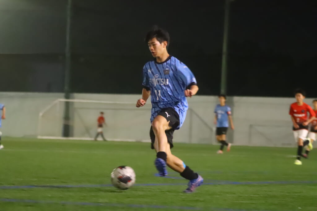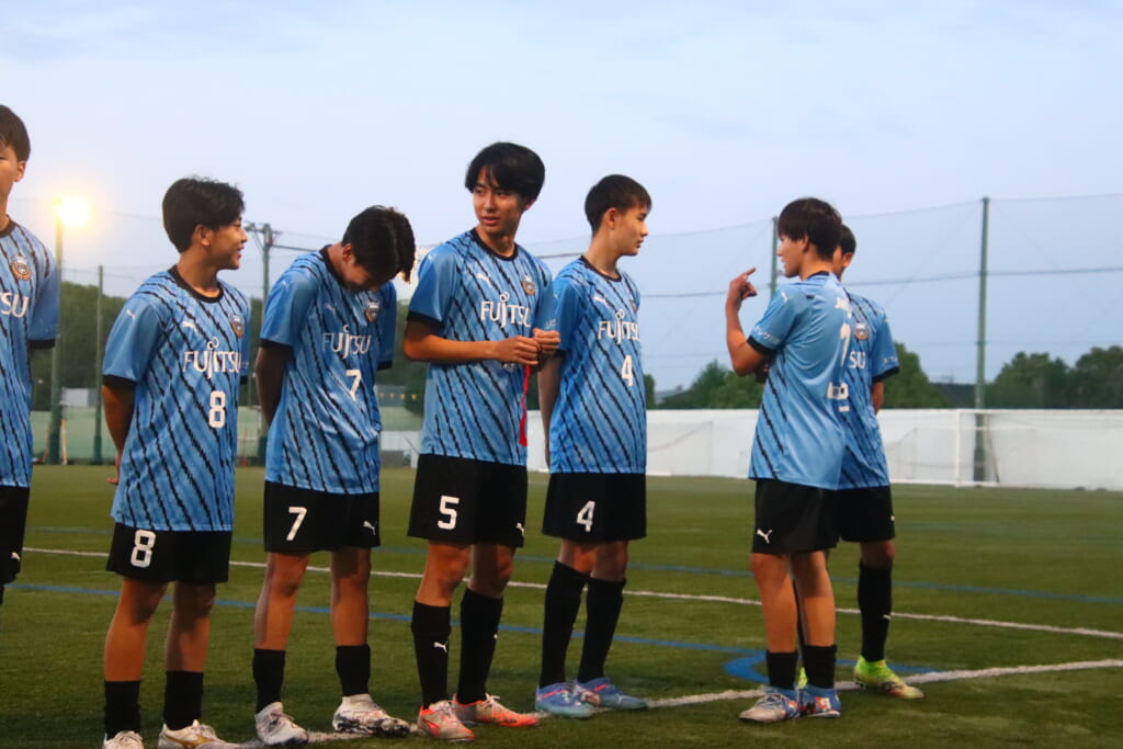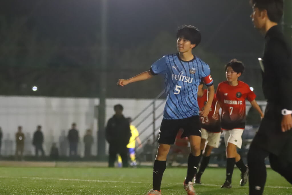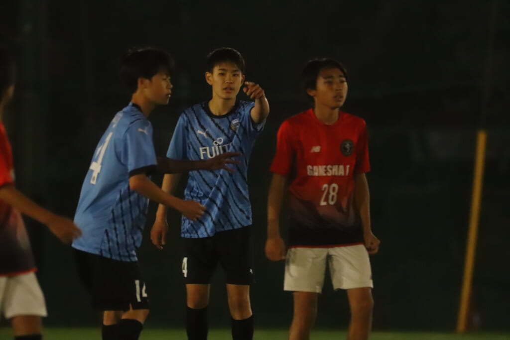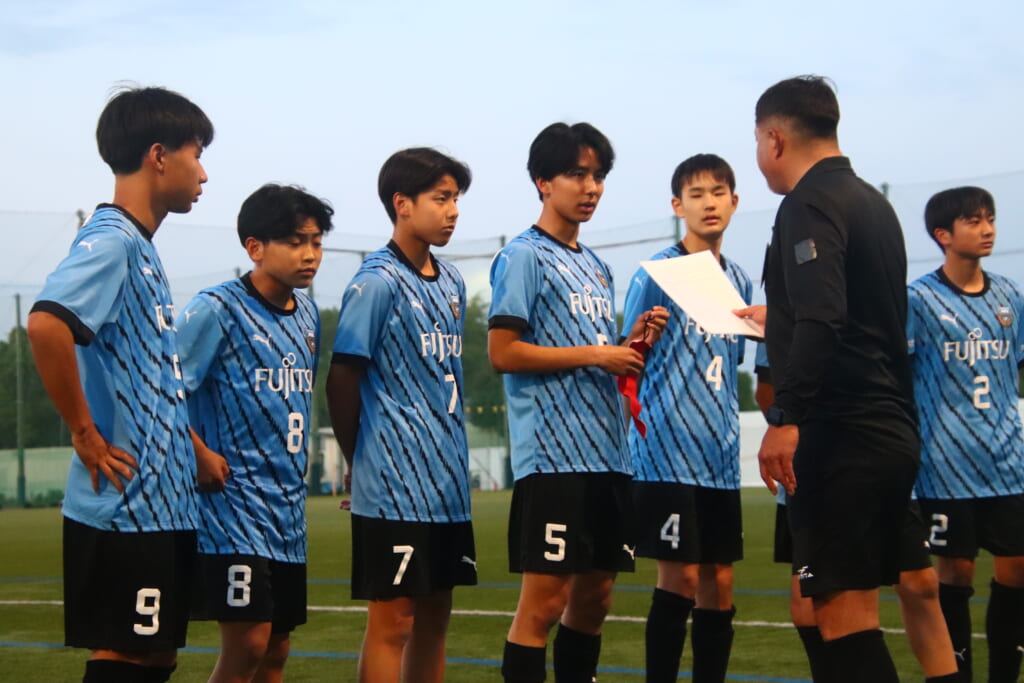 フロンターレ等々力の先発:16酒寄壮 2久村航大 5渡部朝陽(c) 4西川諒 3梶優翔 14時松隼跳 7我妻光 10大寺楓真 8永田怜大 37岩田陸叶 9荻原光惺