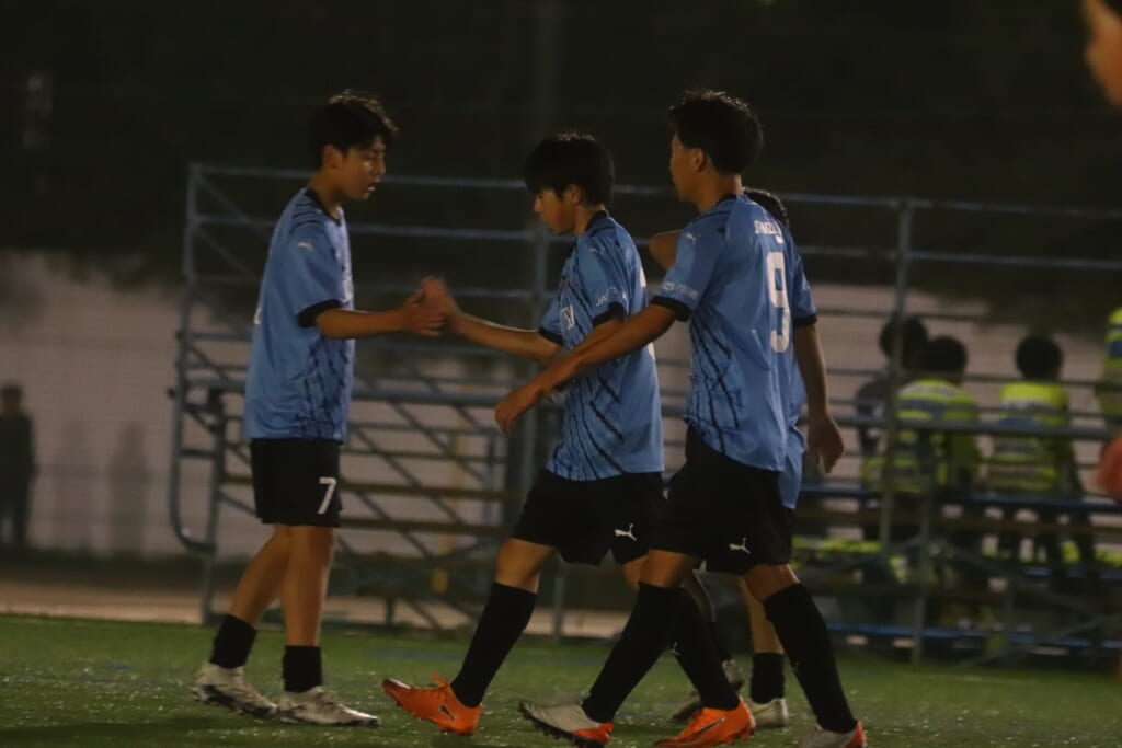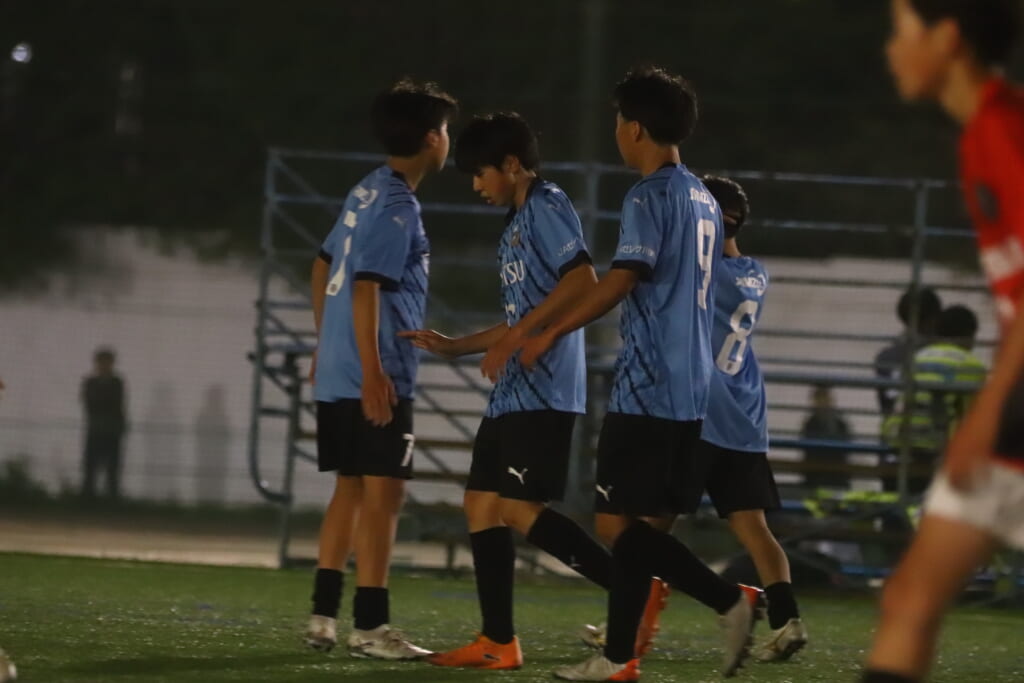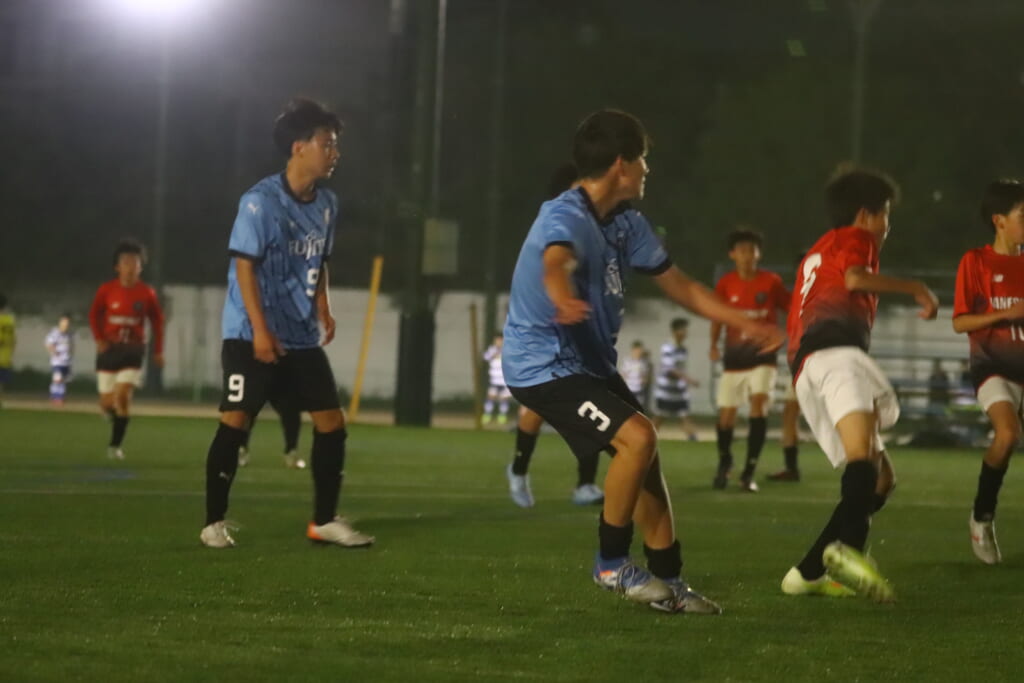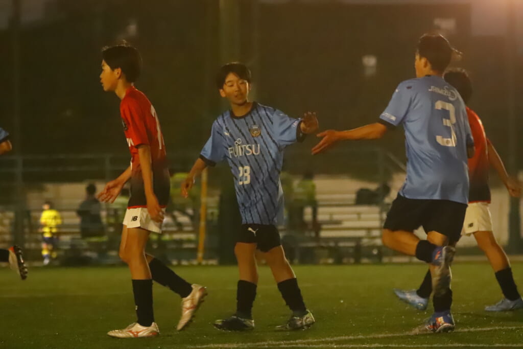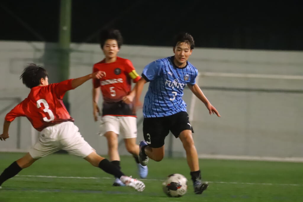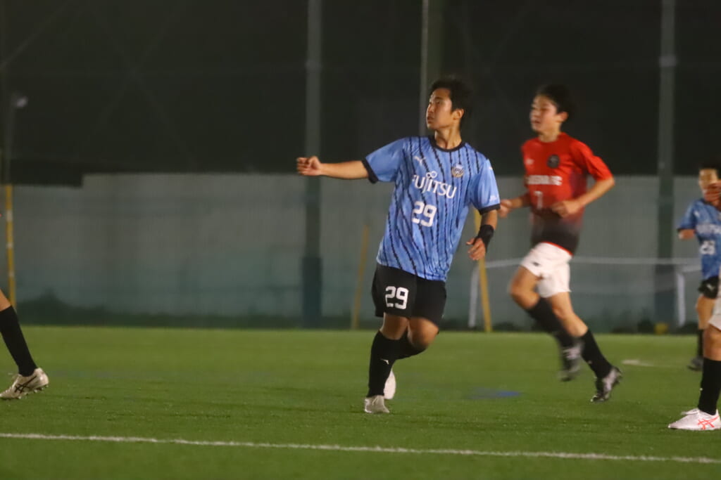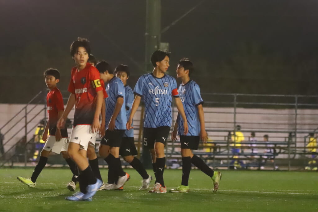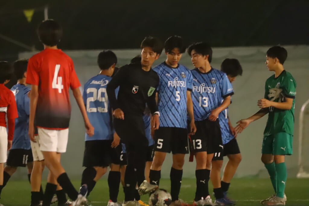フロンターレ等々力の先発:16酒寄壮 2久村航大 5渡部朝陽(c) 4西川諒 3梶優翔 14時松隼跳 7我妻光 10大寺楓真 8永田怜大 37岩田陸叶 9荻原光惺