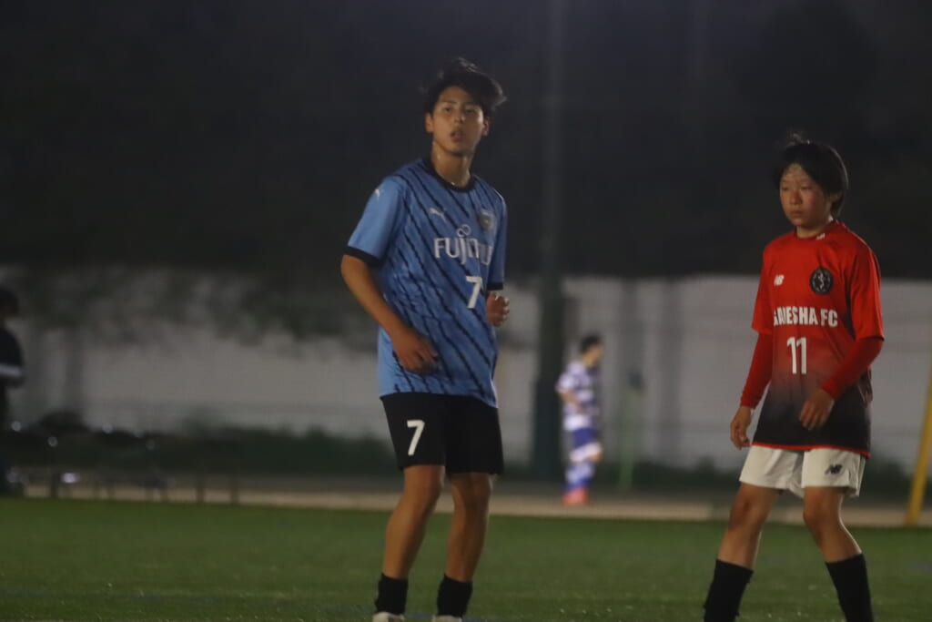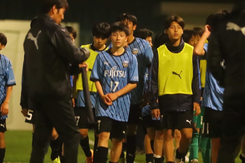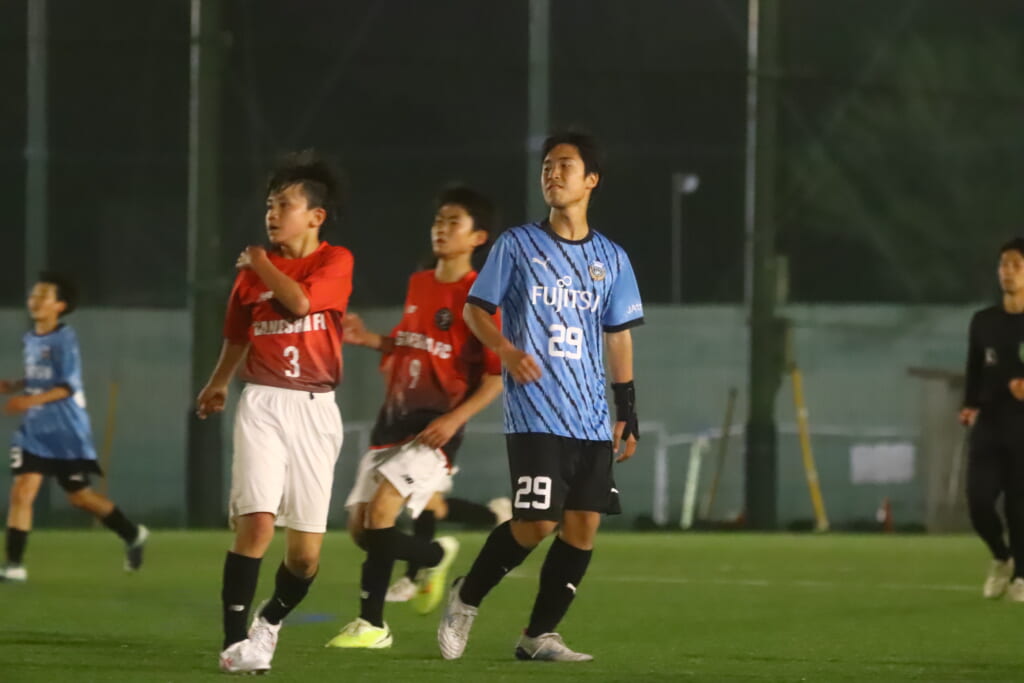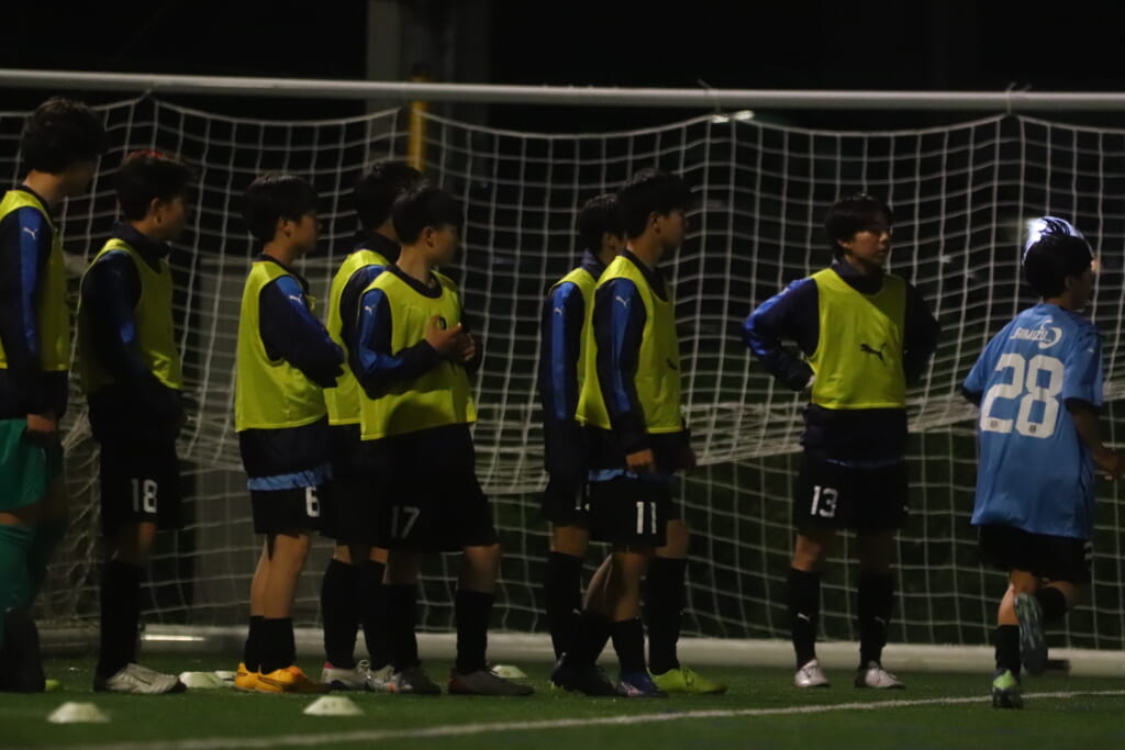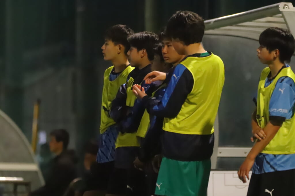 後半、フロンターレ等々力は我妻、時松、永田、荻原が下がり、13川上琉偉、6熊谷颯良、17長岡幸之介、18渋谷昇汰。