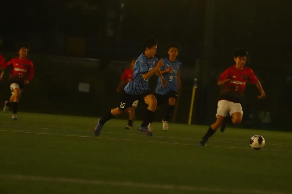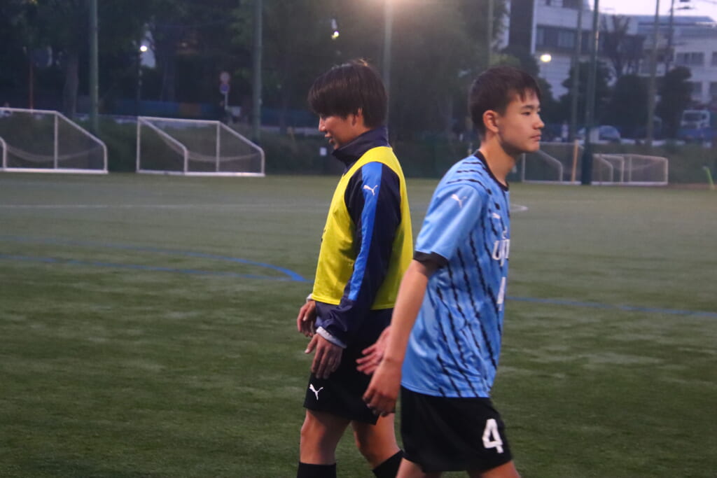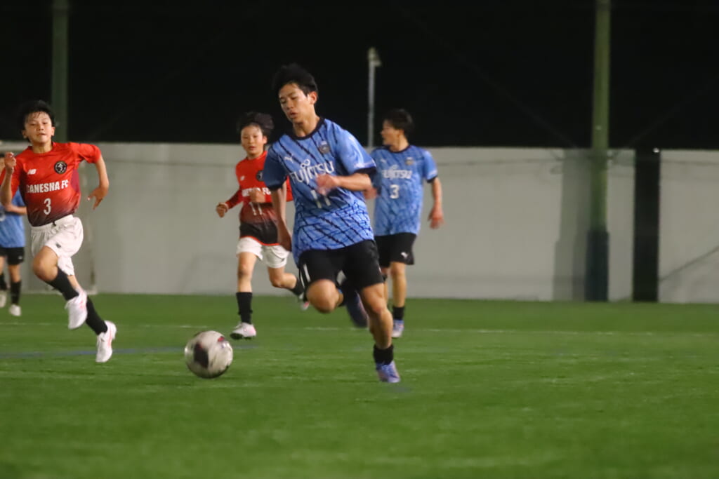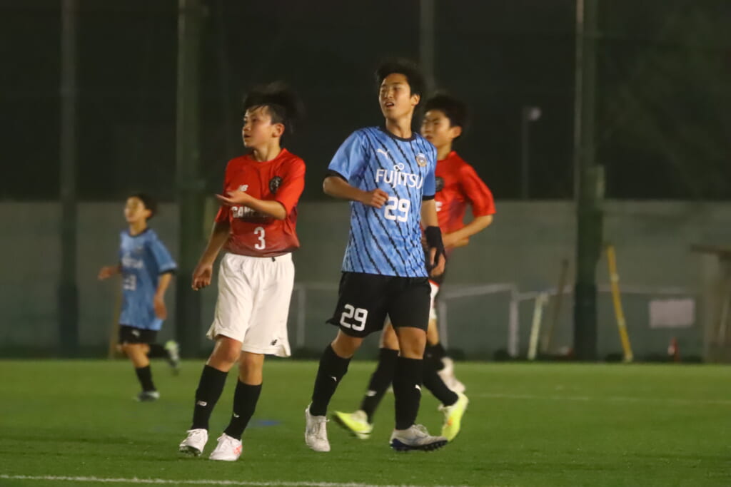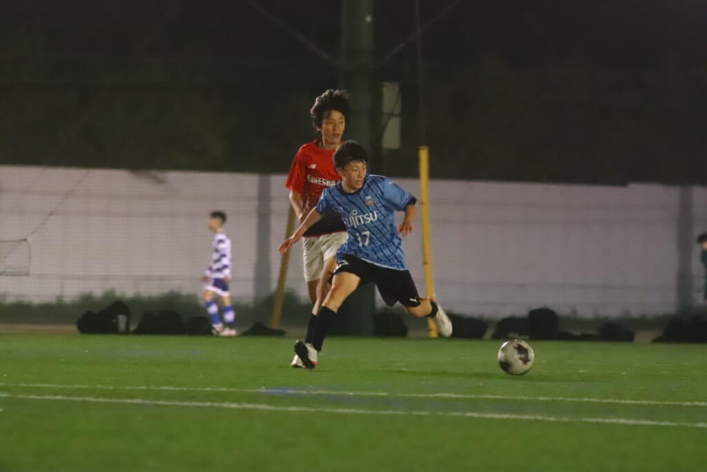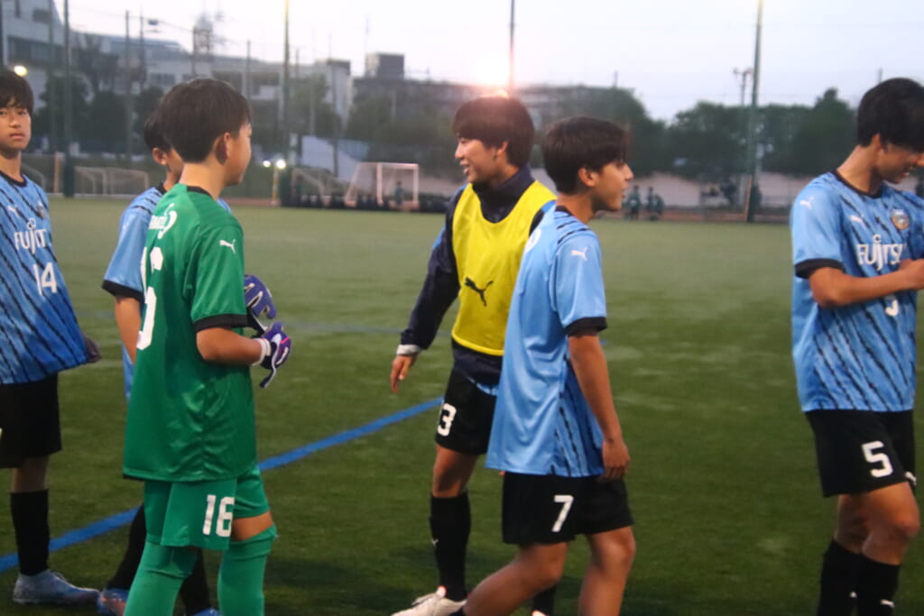 後半、フロンターレ等々力は我妻、時松、永田、荻原が下がり、13川上琉偉、6熊谷颯良、17長岡幸之介、18渋谷昇汰。